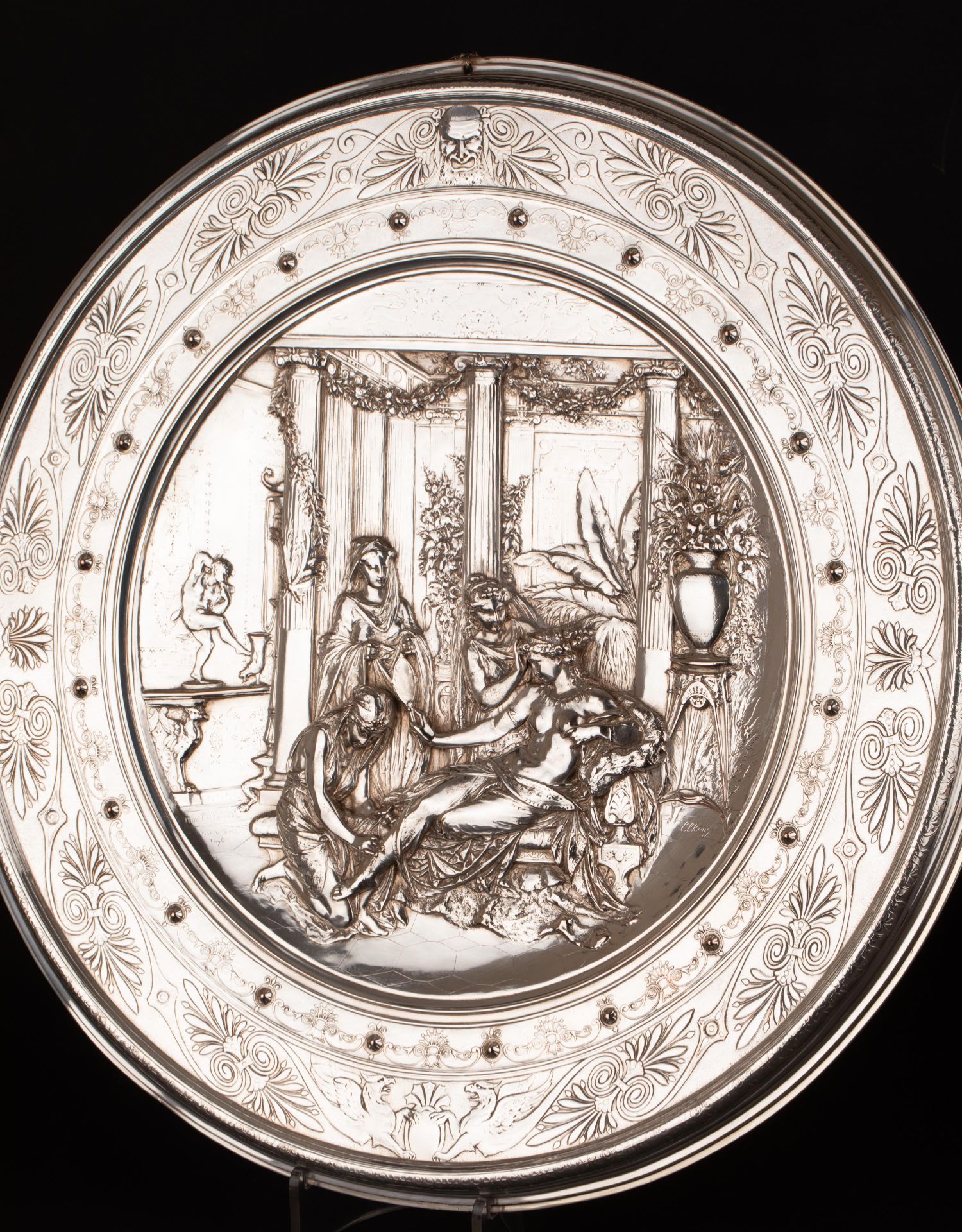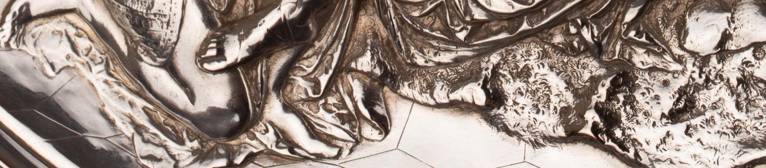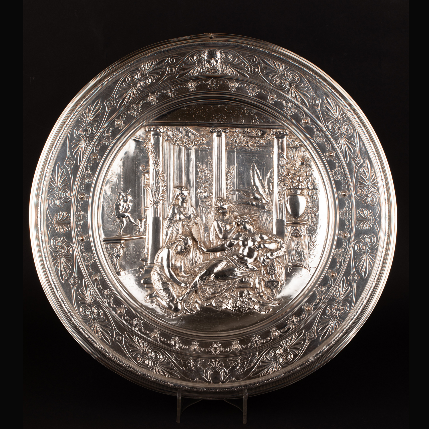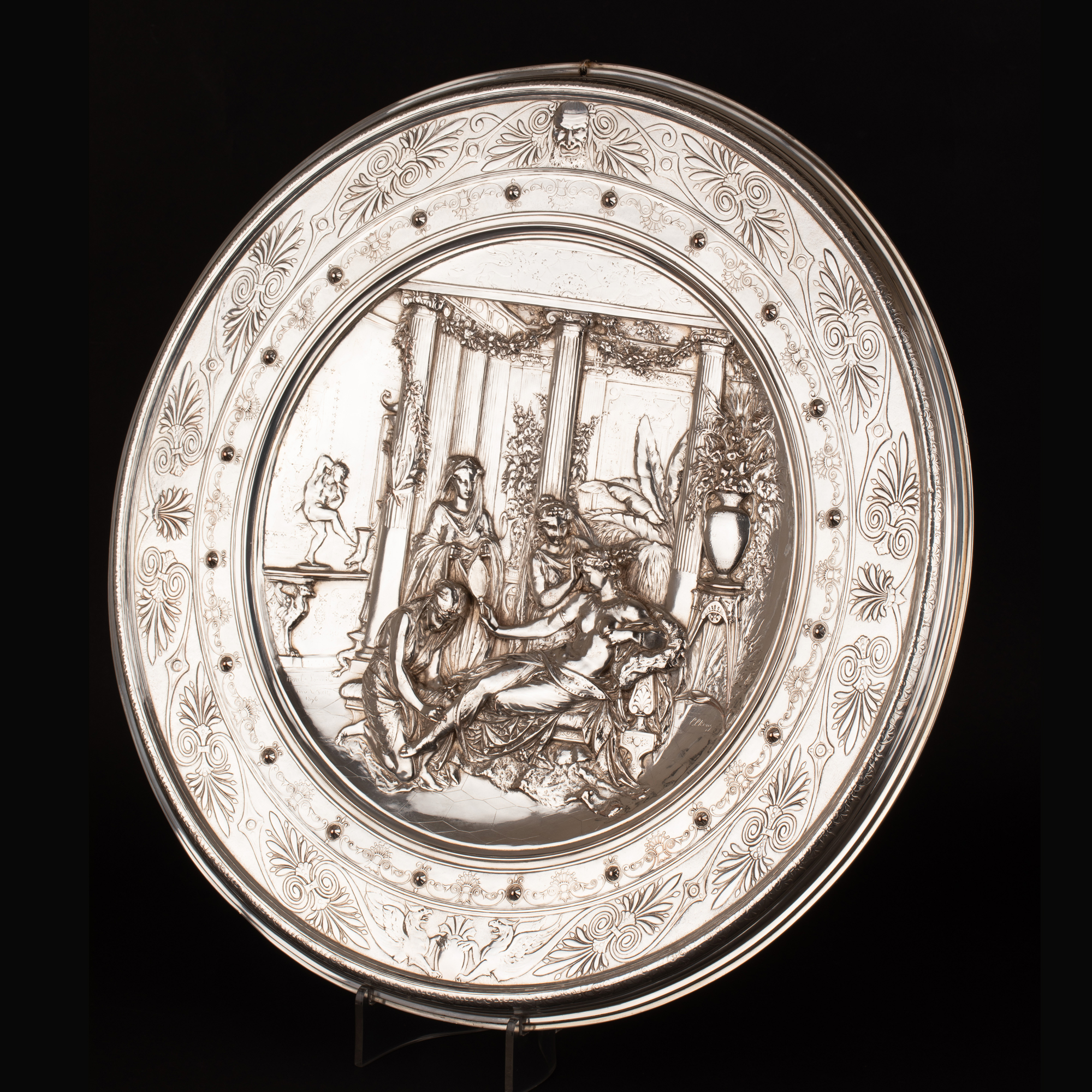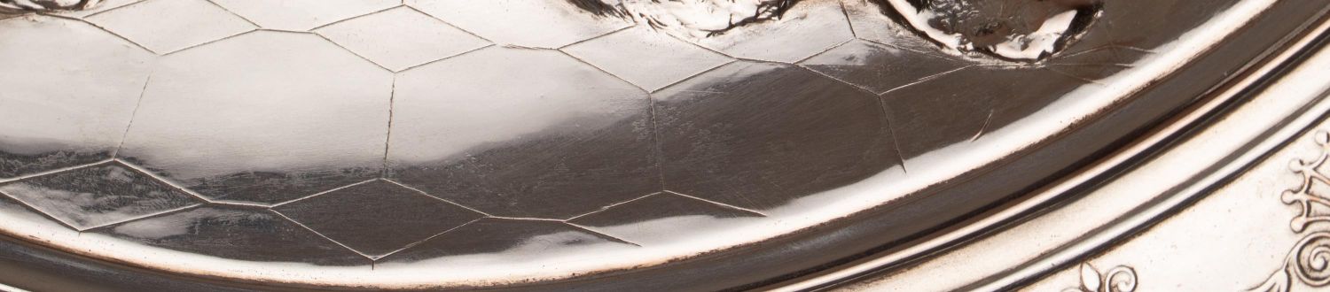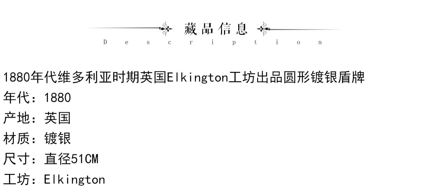 独角鹿西洋古董维多利亚时期英国Elkington工坊圆形镀银盾牌