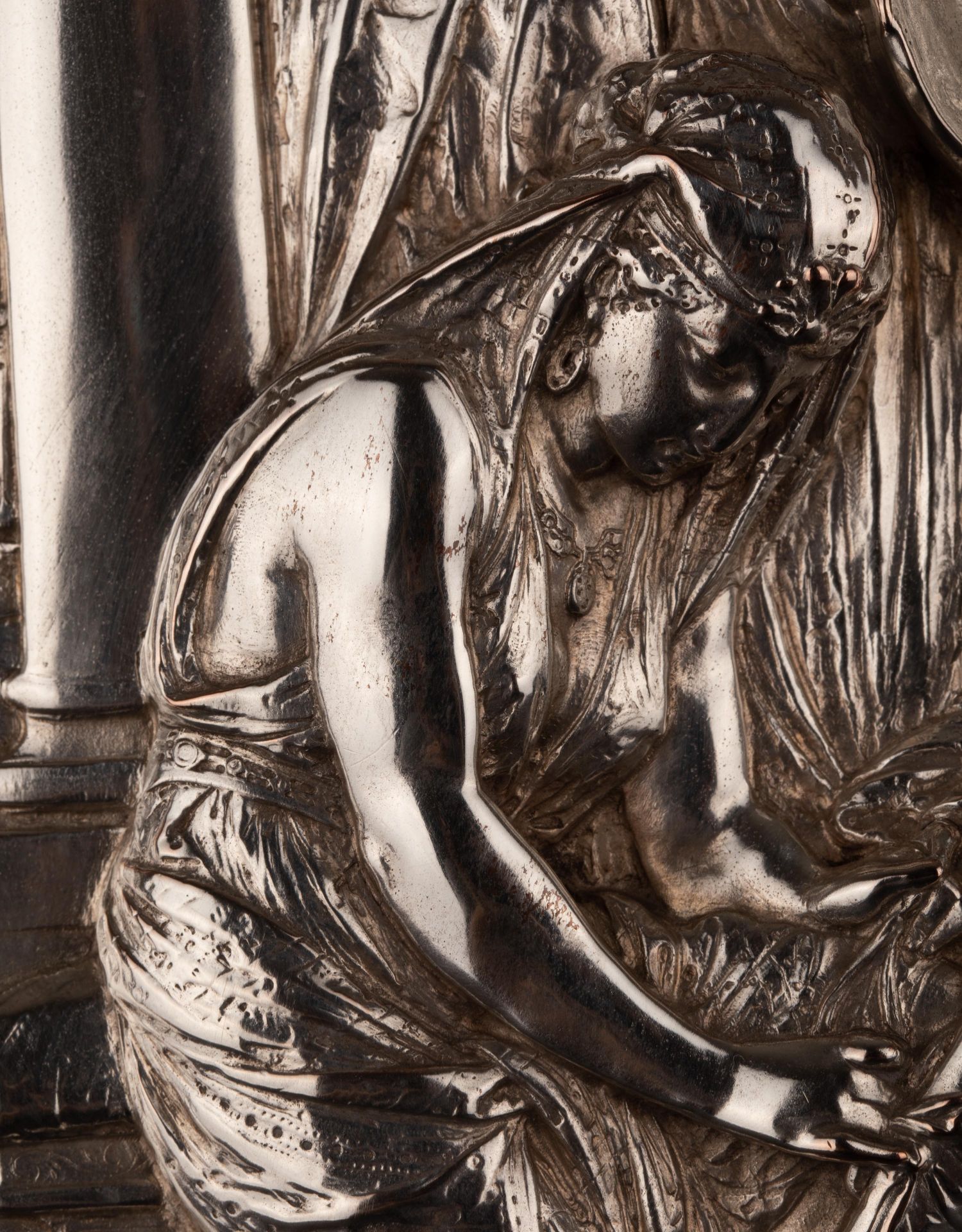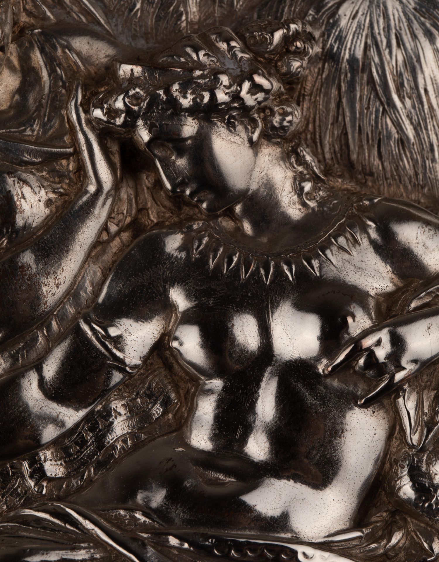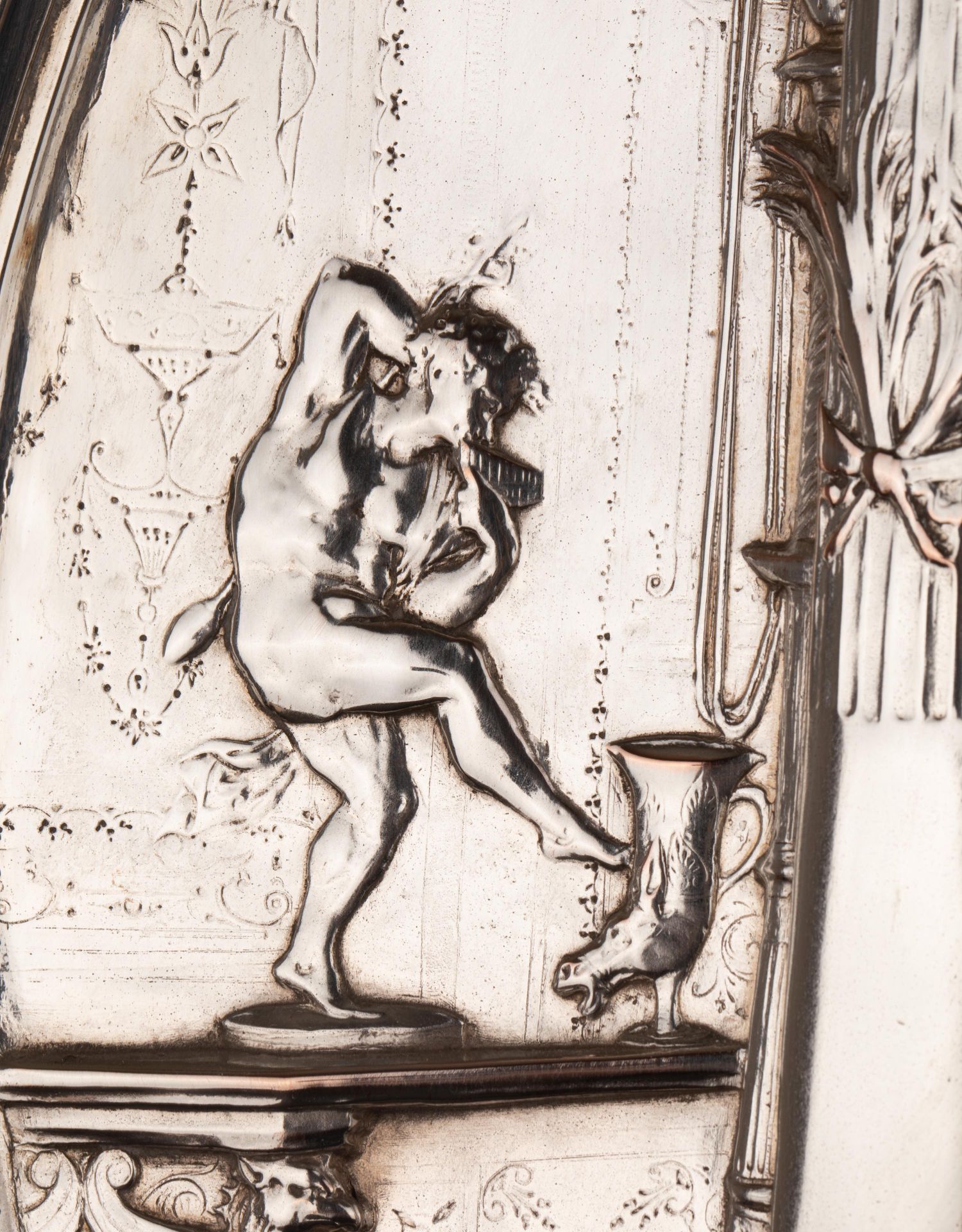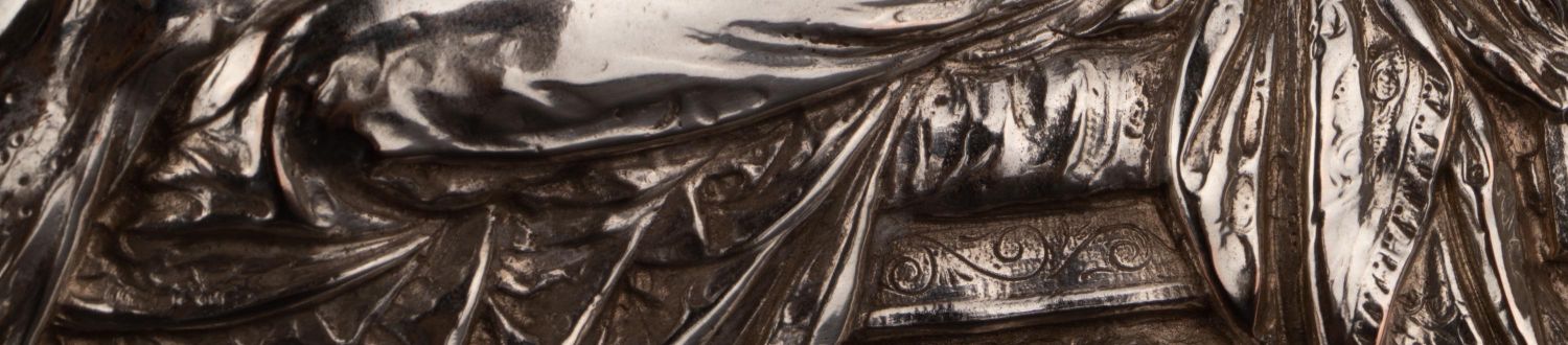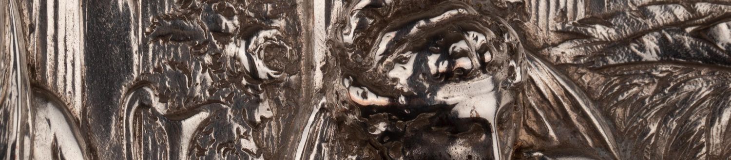 独角鹿西洋古董维多利亚时期英国Elkington工坊圆形镀银盾牌