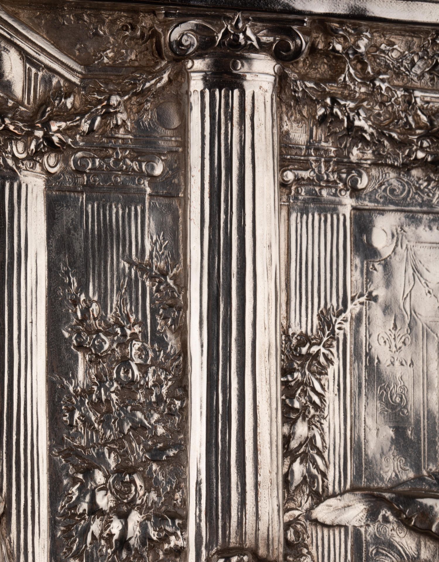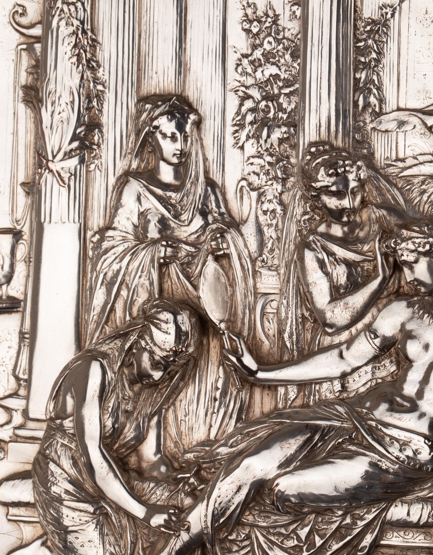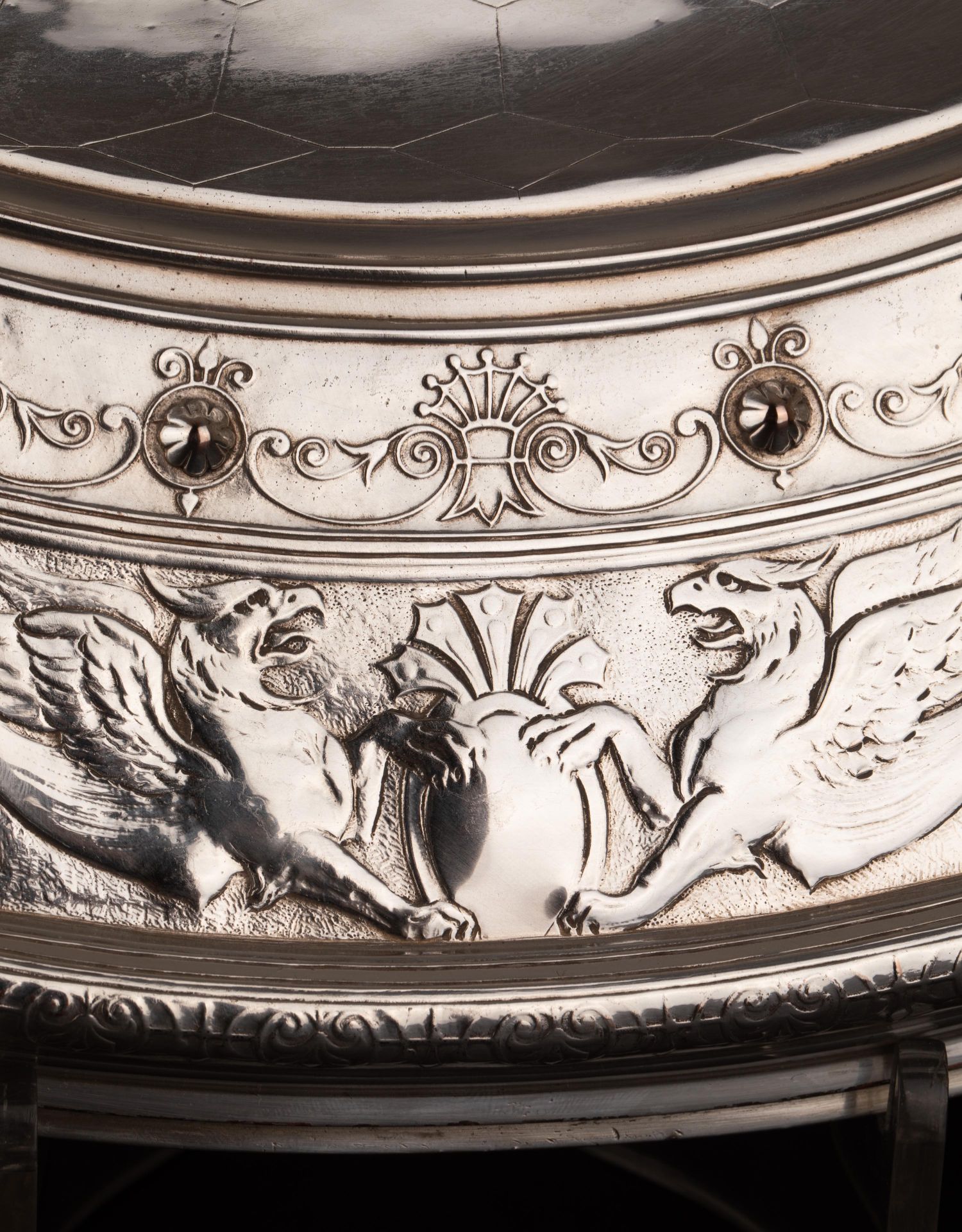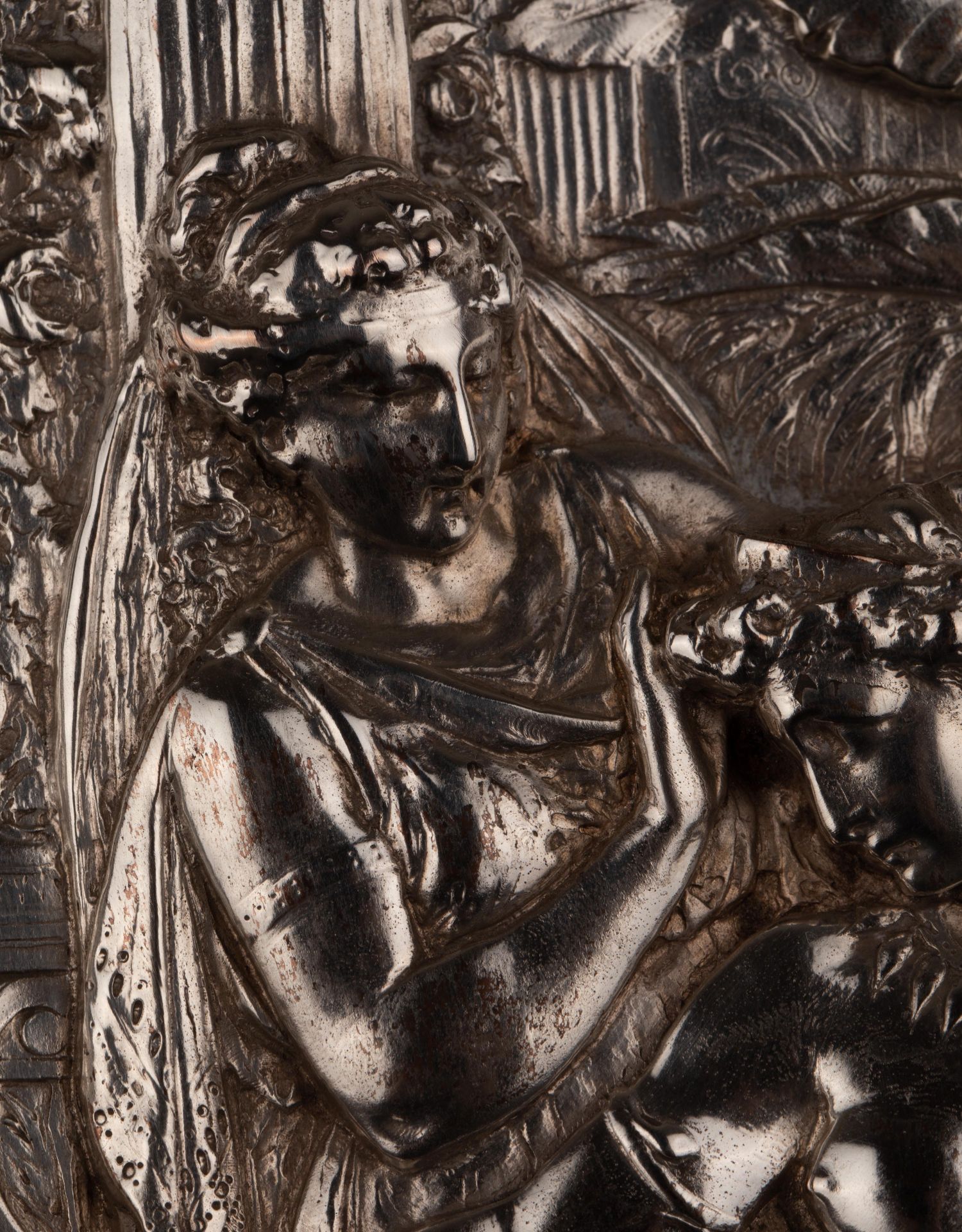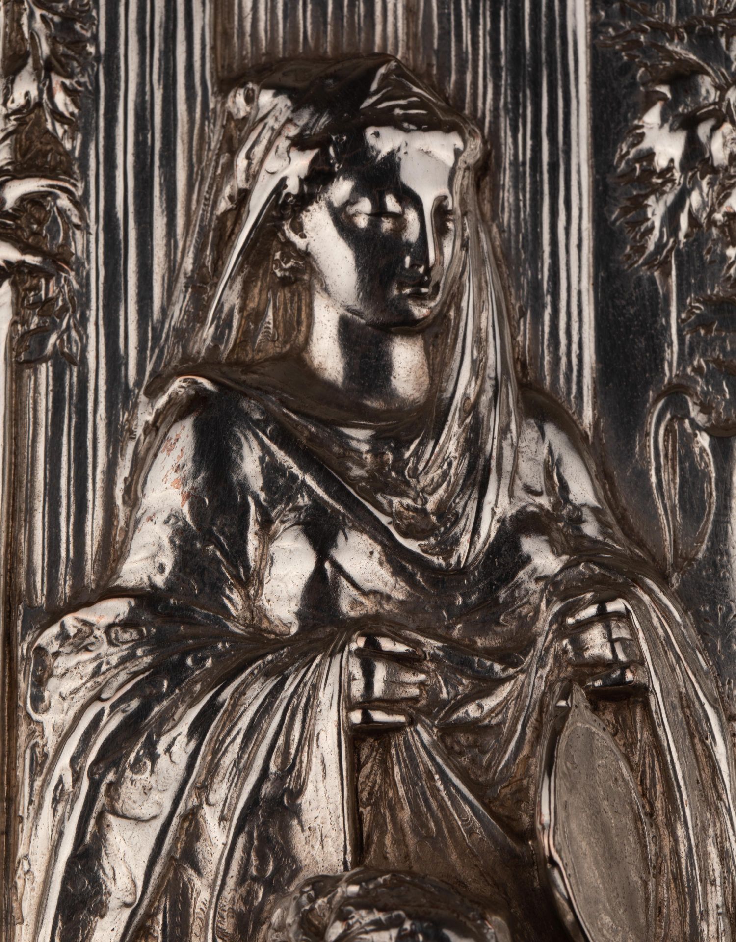 独角鹿西洋古董维多利亚时期英国Elkington工坊圆形镀银盾牌