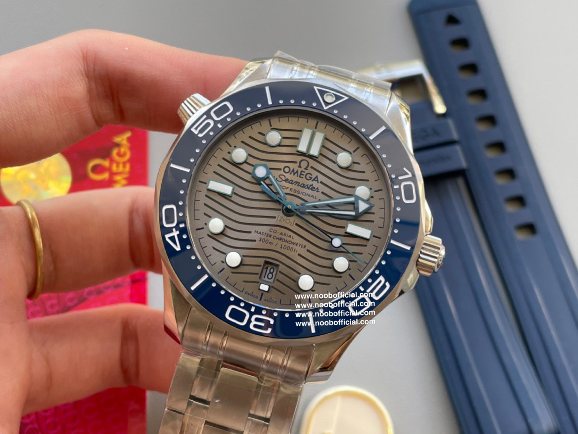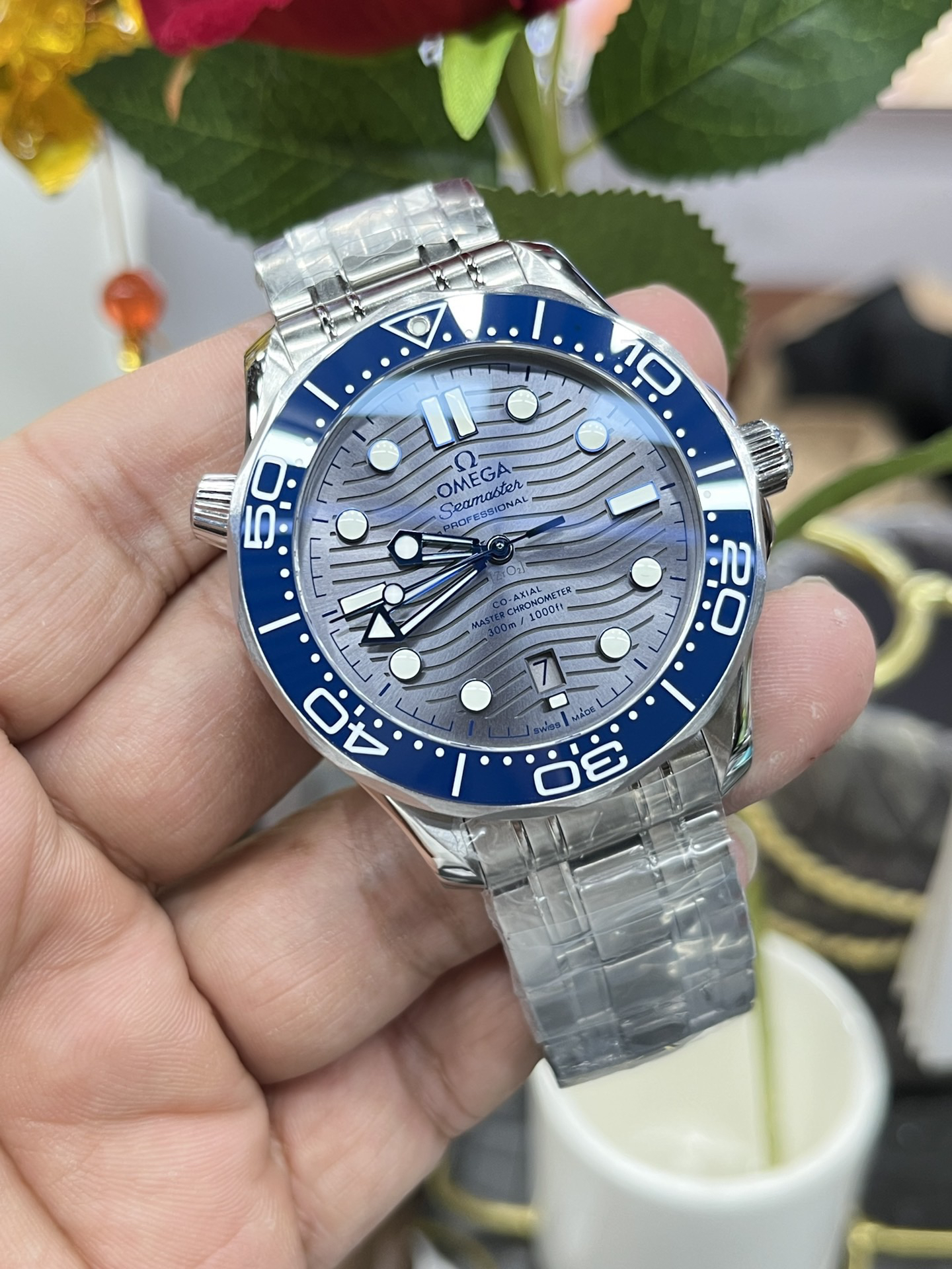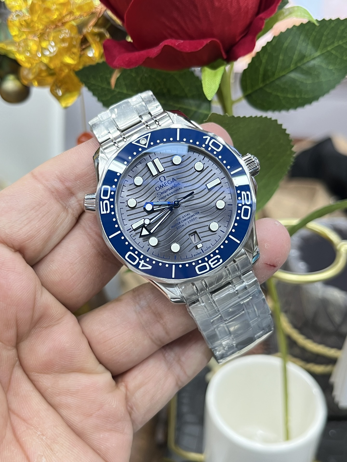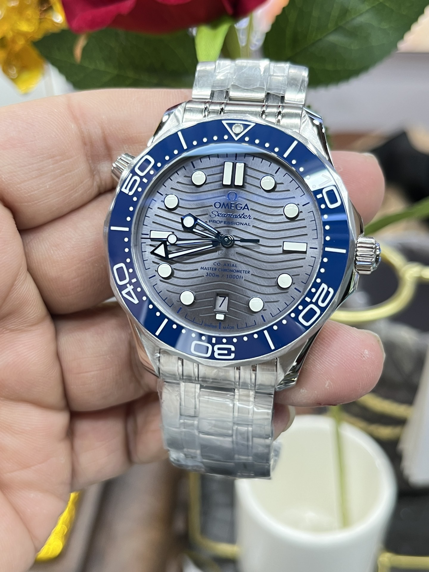 这一前沿风尚的欧米茄海马300米系列腕表,42mm表壳采用进口316L精钢打造而成,表圈采用韩国高密度陶瓷,饰以白色珐琅潜水刻度。