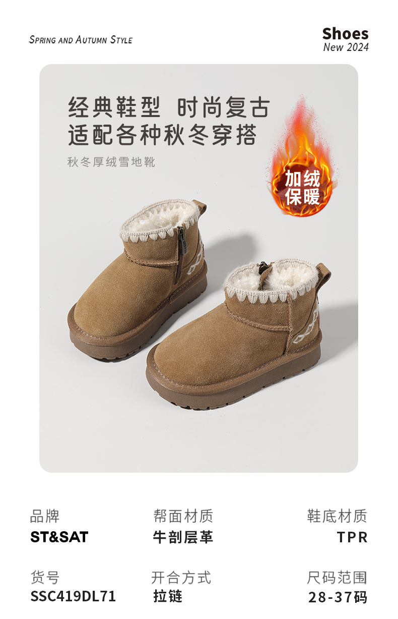 【童鞋】星期六简约百搭防滑加绒加厚雪地靴SSC419DL71