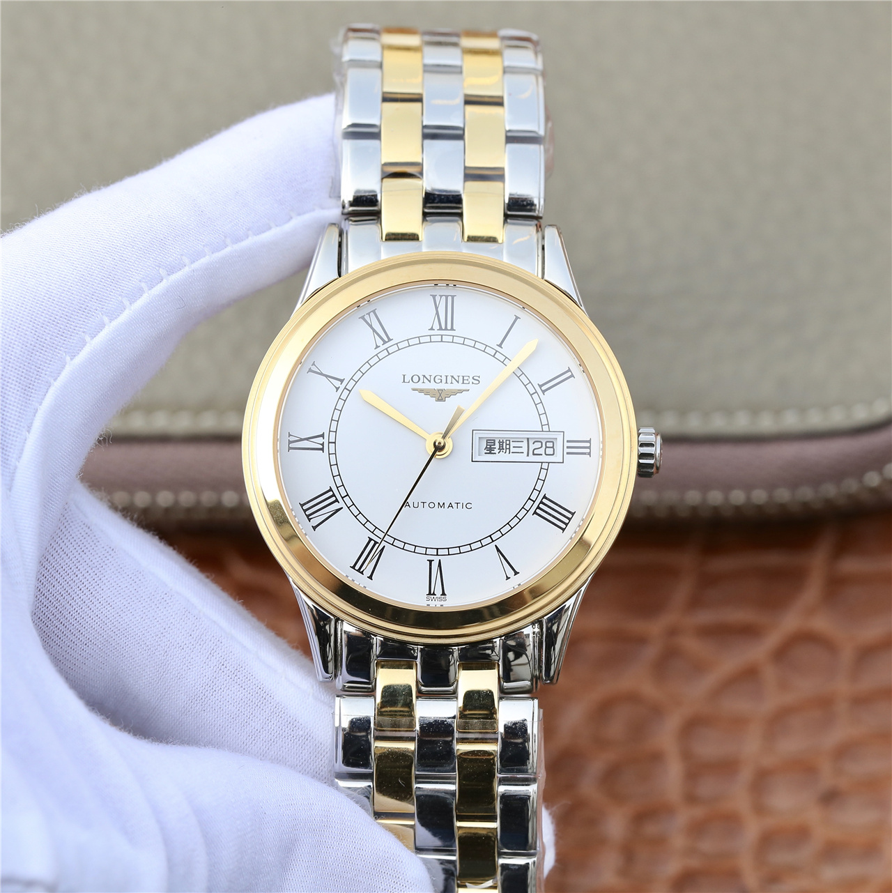 浪琴军旗系列双历L4.899.4.12.6尺寸38.5mm.中英文星期日历双显示.也可选择德文英文显示,正品一样的ETA2836-2机芯