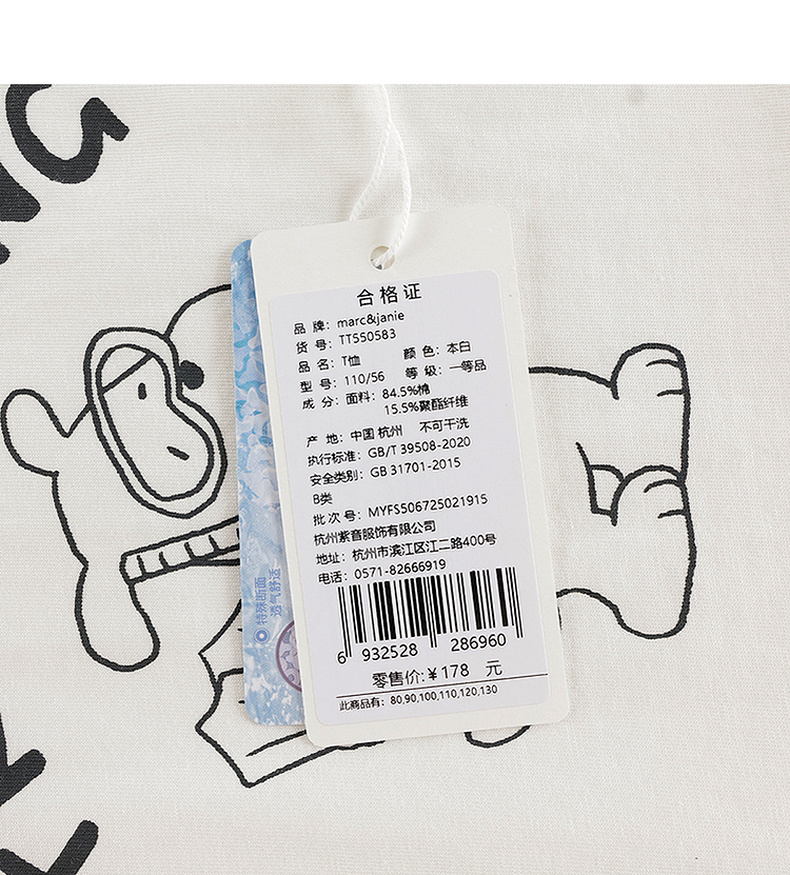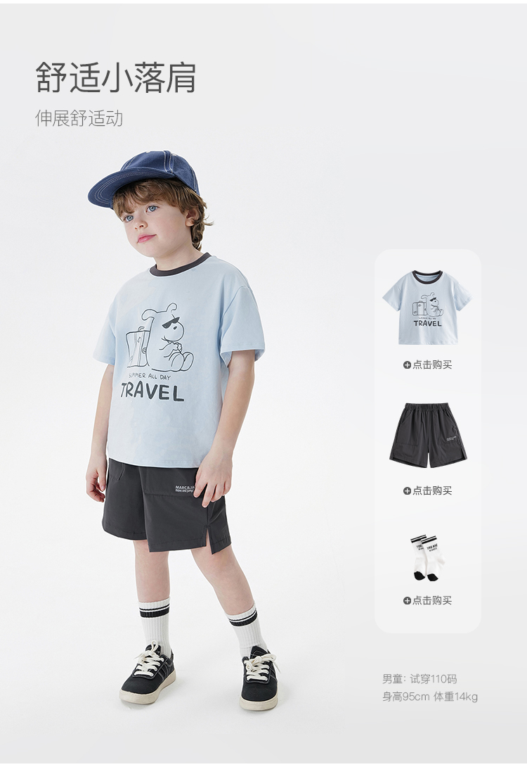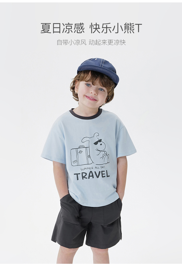 【凉感亲肤】马克珍妮男女童快乐小熊短袖T恤 宝宝夏装新款550583