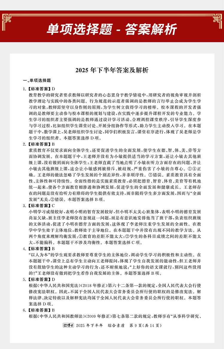 2026上半年小学教师资格考试历年真题试卷综合素质小学201十套真题答案解析真题真练