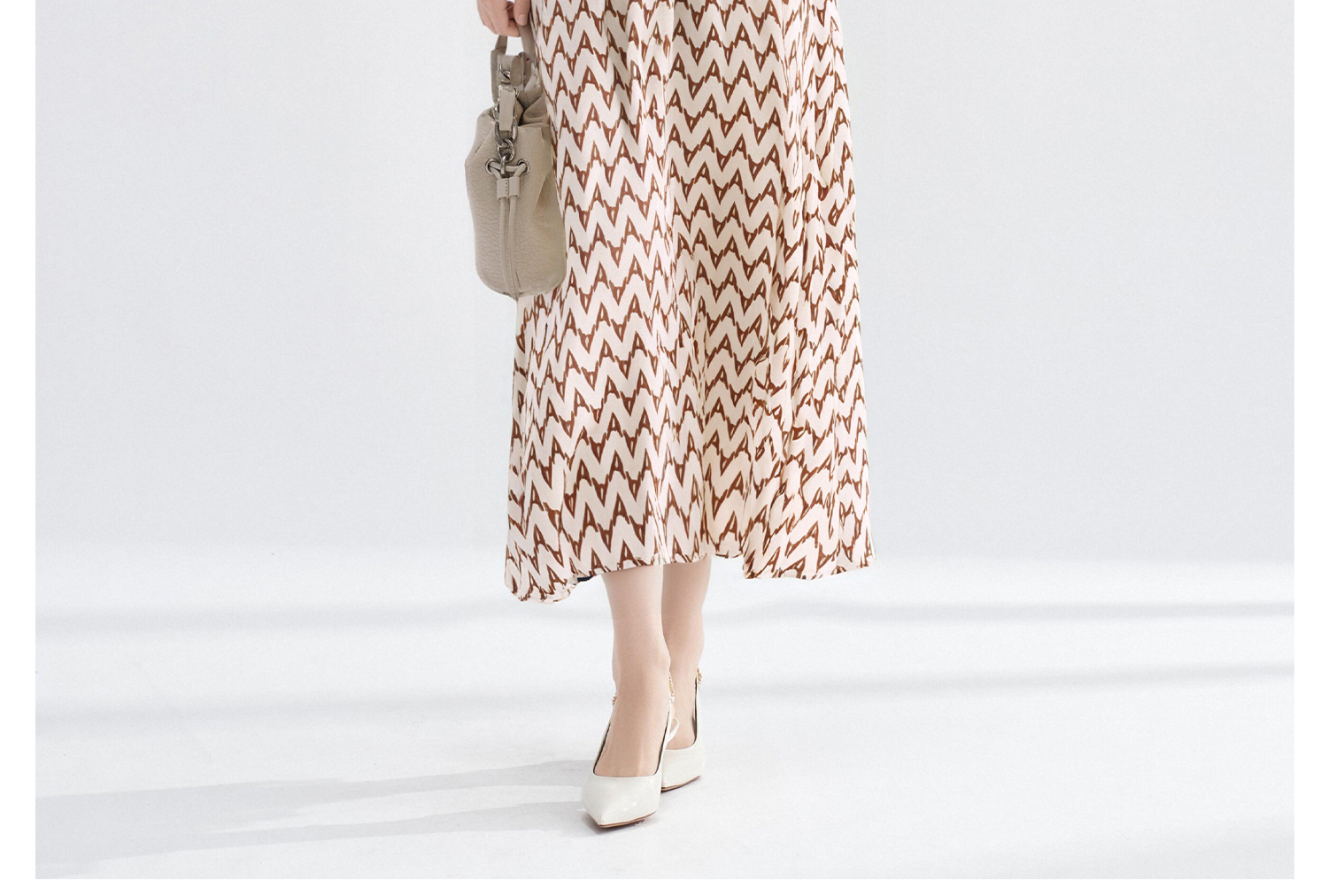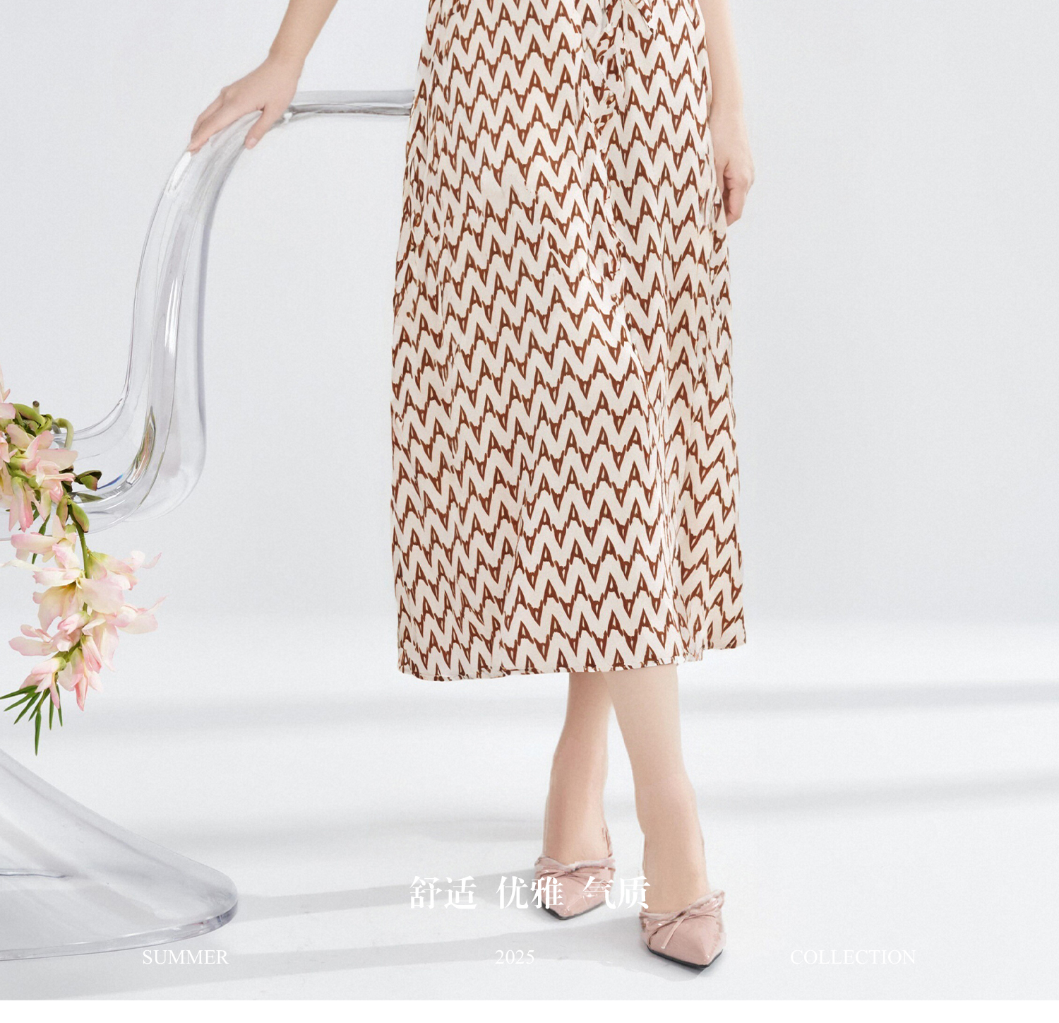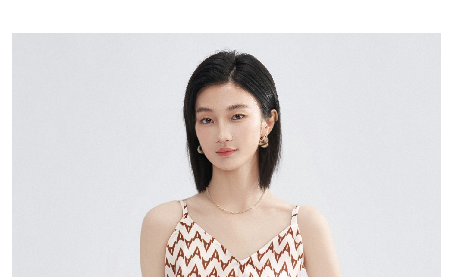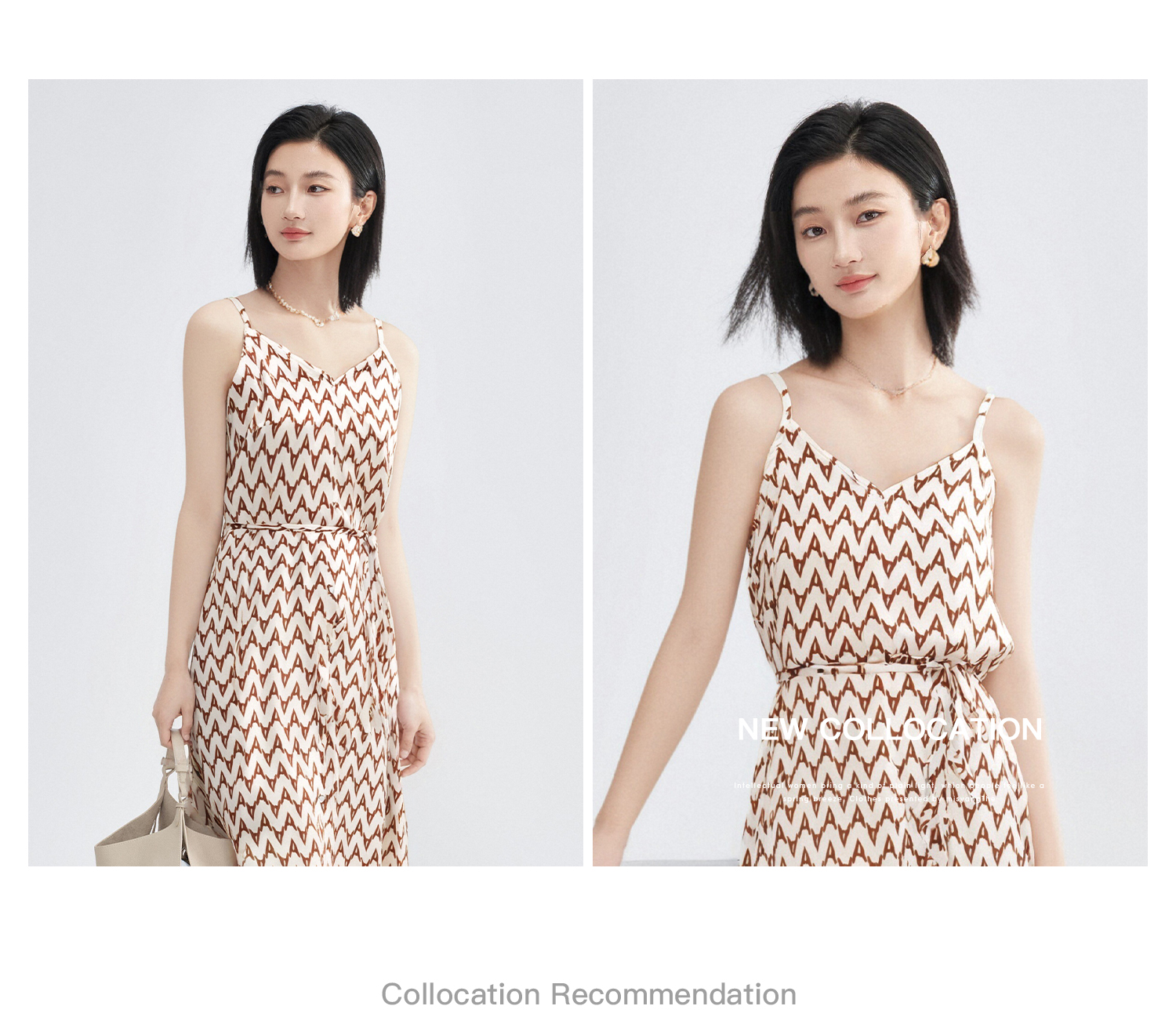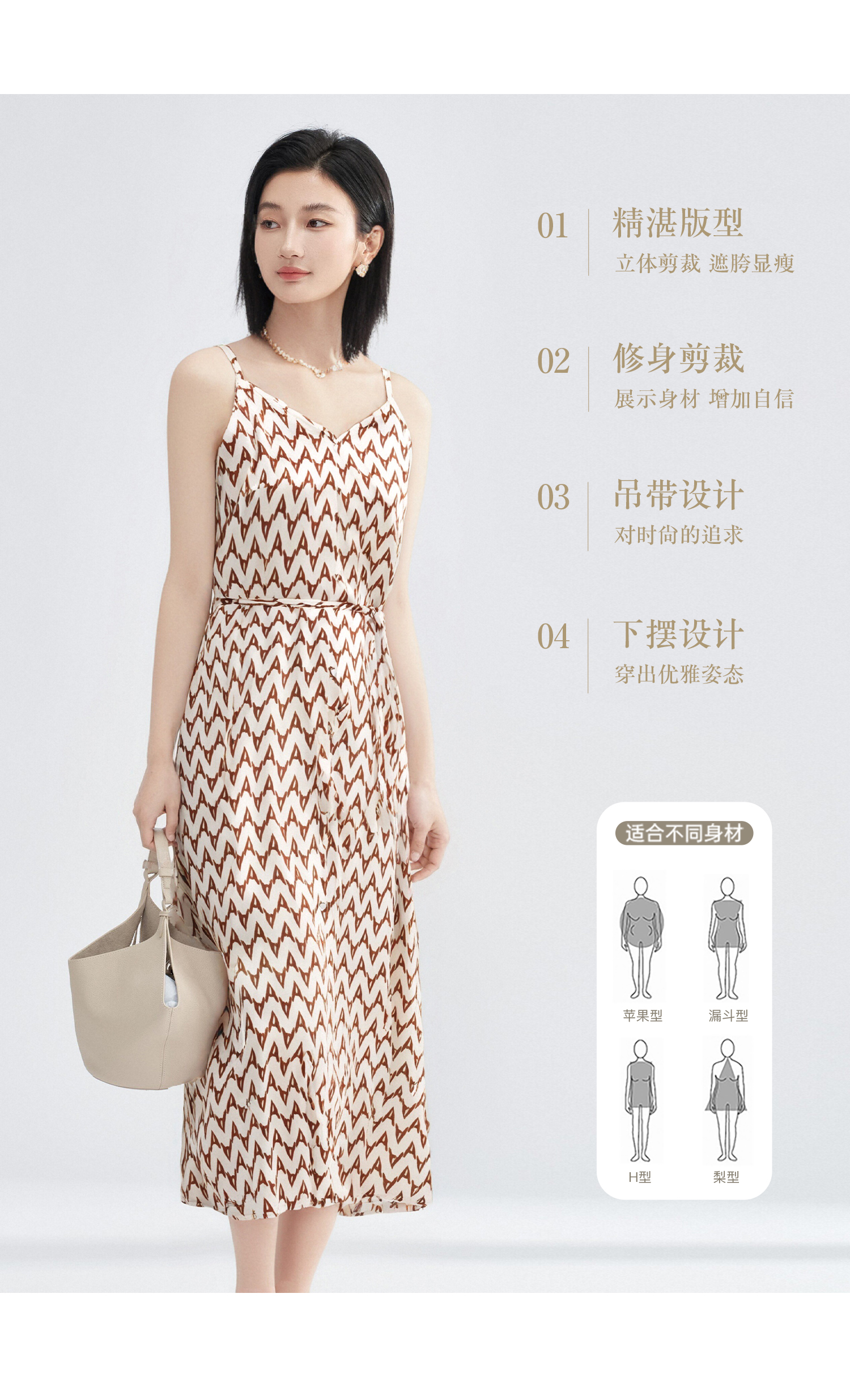 米思阳2026春季复古风优雅几何印花吊带连衣裙宽松收腰中长款裙子女3026