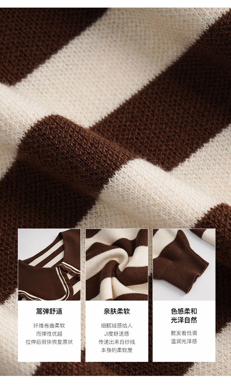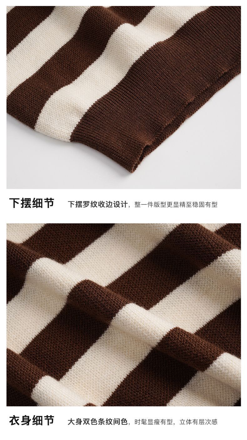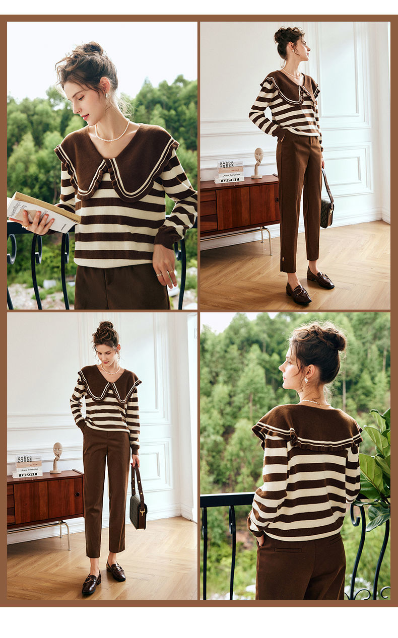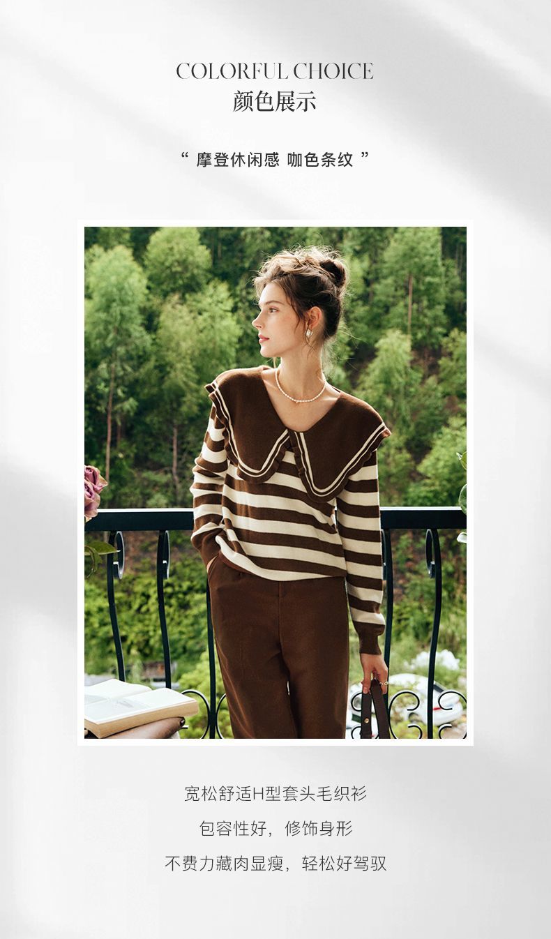 OLrain欧芮儿法式咖色条纹毛衣女秋季2022年新款学院风大翻领上衣