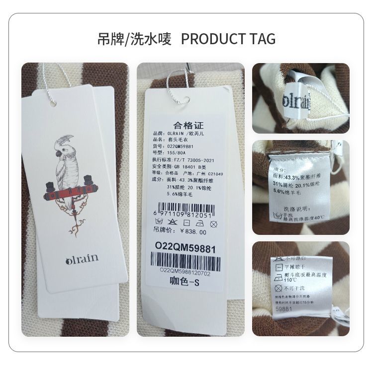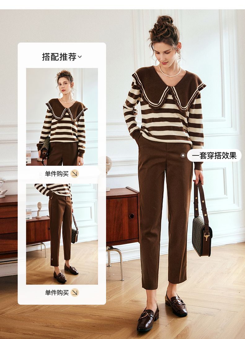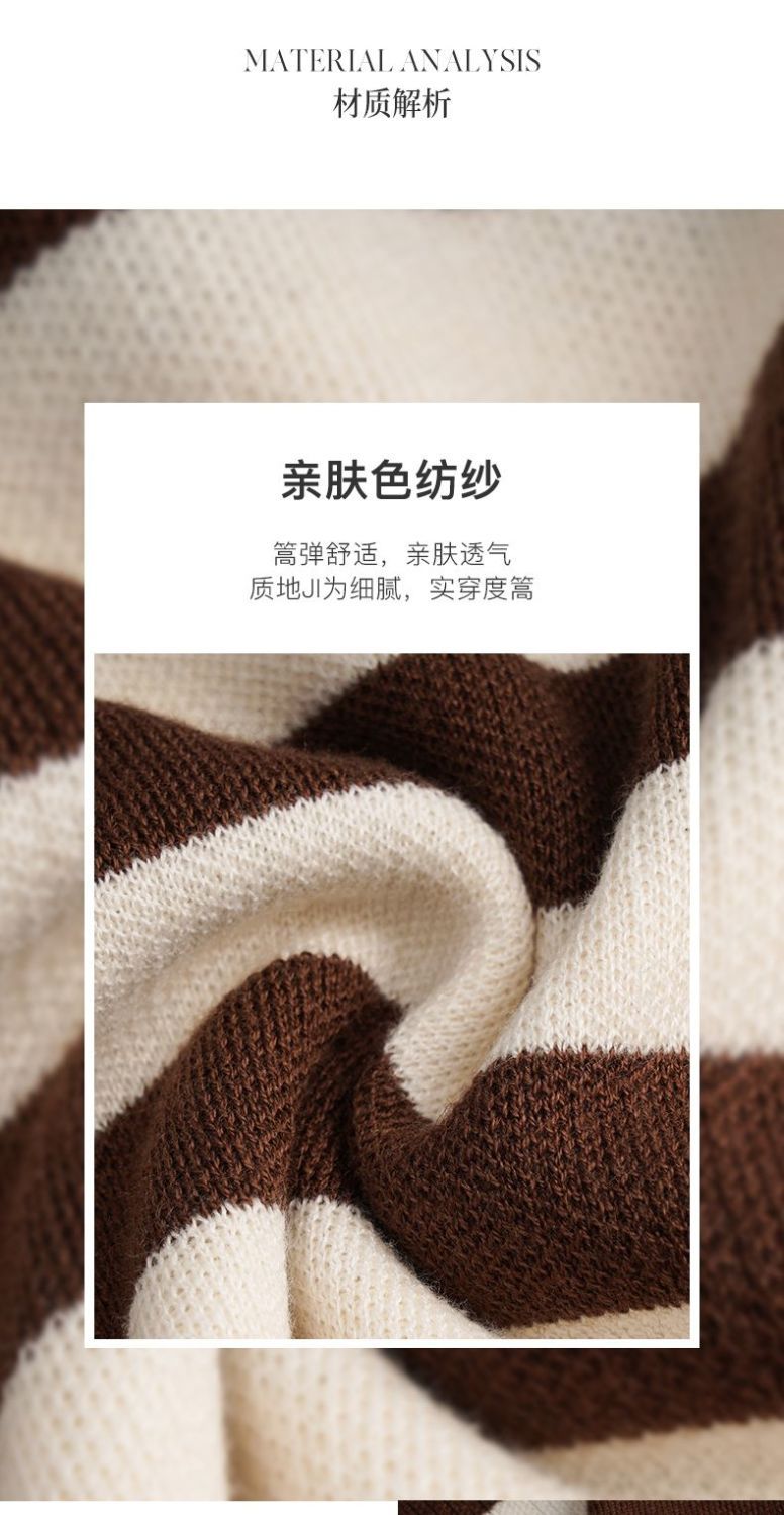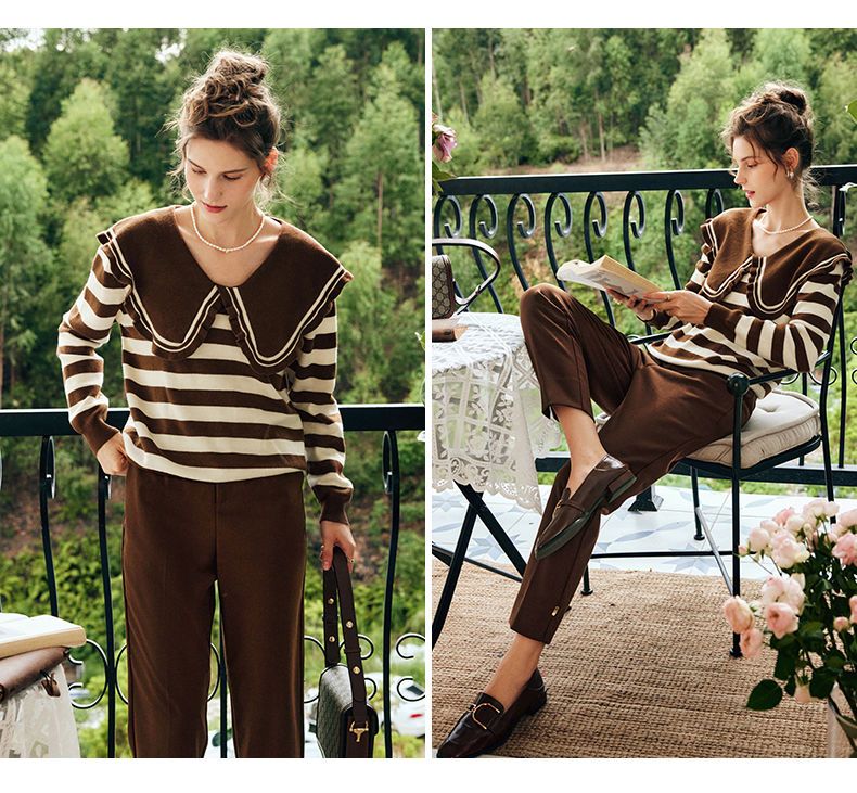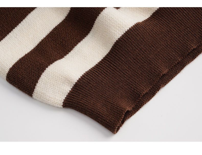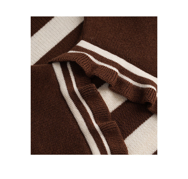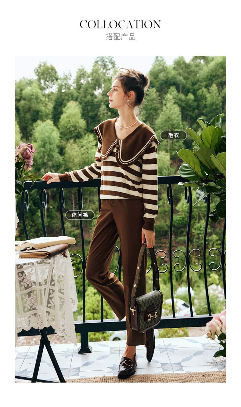 OLrain欧芮儿法式咖色条纹毛衣女秋季2022年新款学院风大翻领上衣