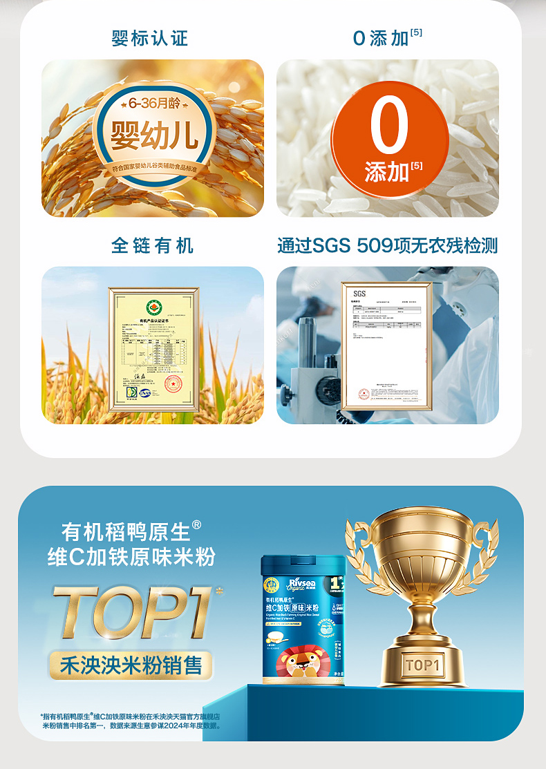 有机稻鸭原生米粉禾泱泱有机稻鸭原生高铁米粉米糊 婴幼儿辅食 低敏醇净益生菌米粉
