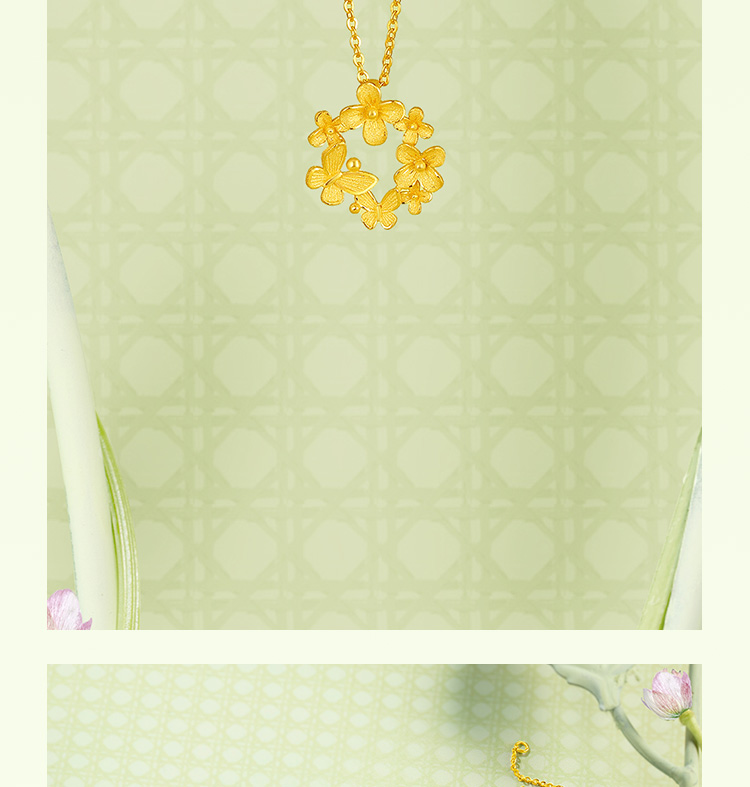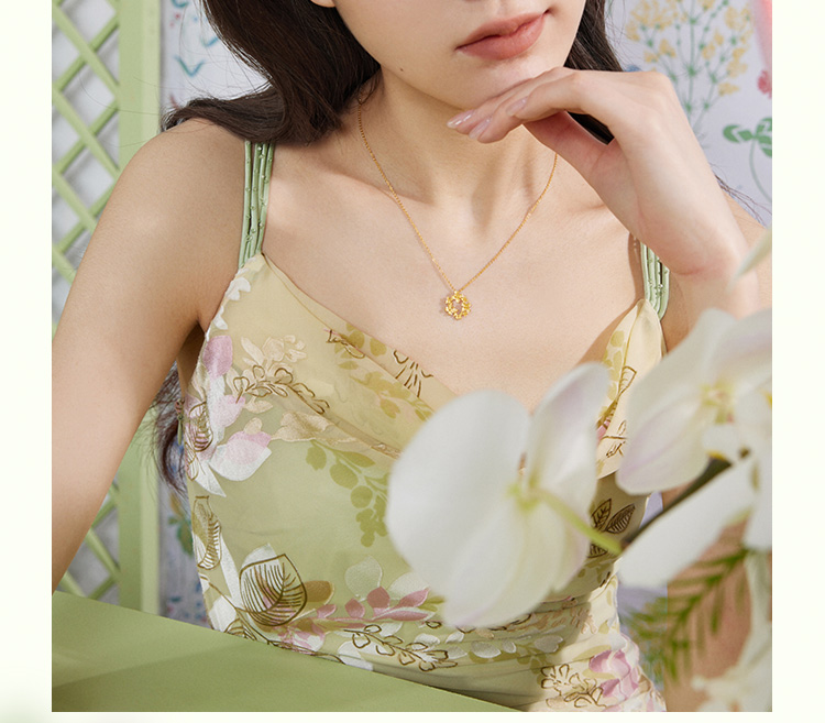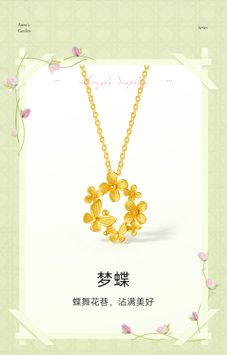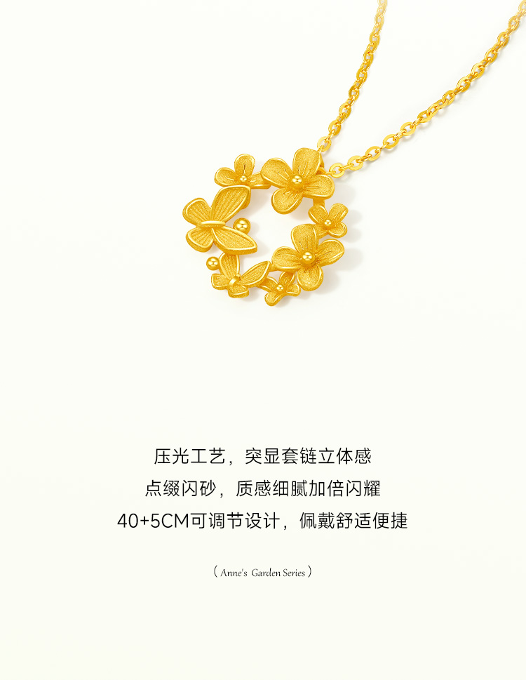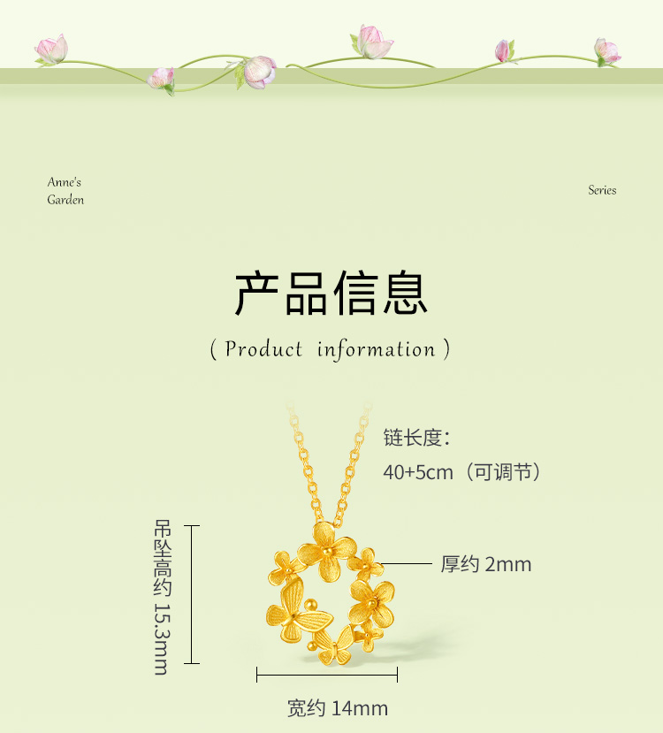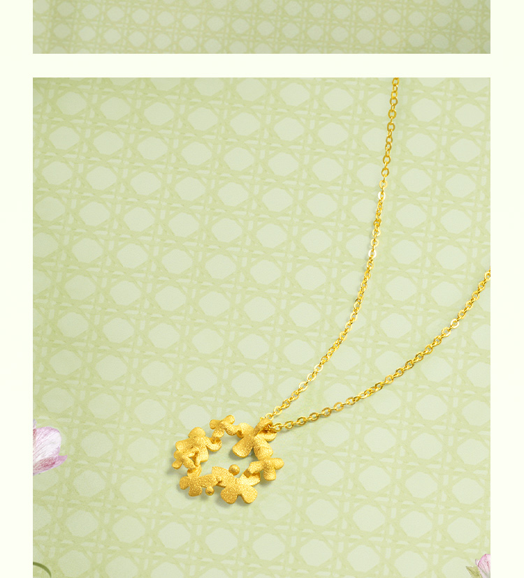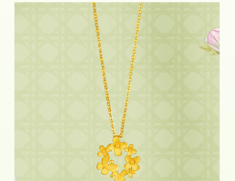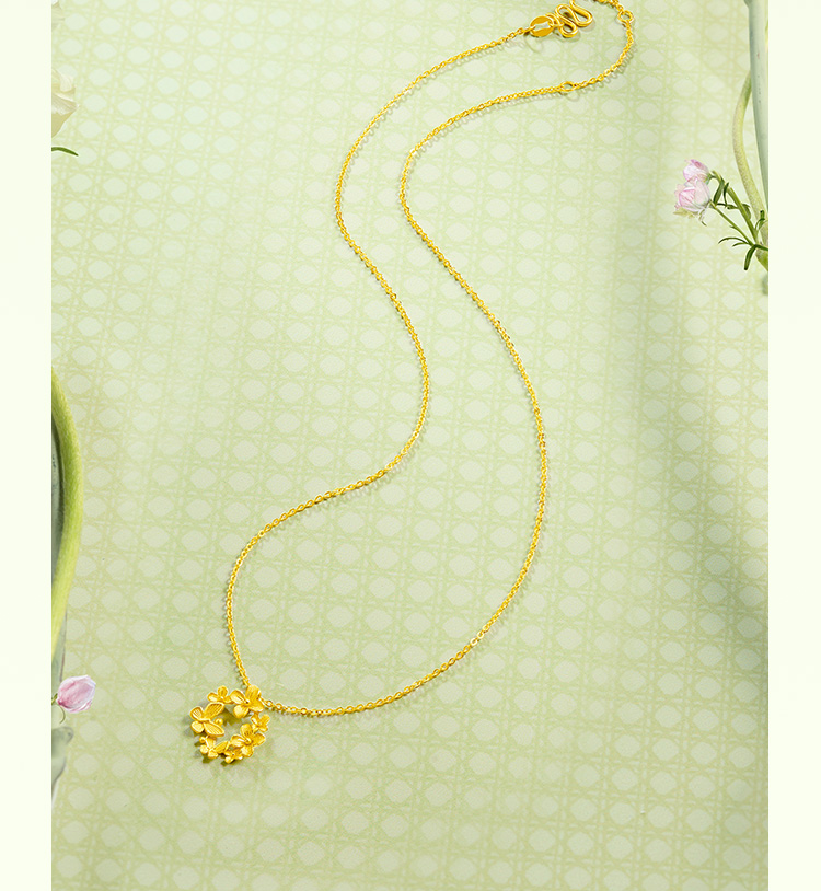 周六福黄金项链女计价足金樱花灿链坠安妮的花园系列送女友礼物