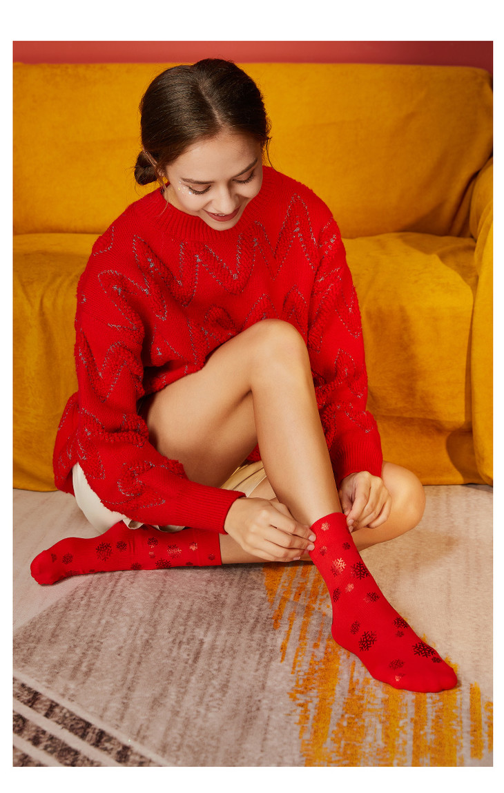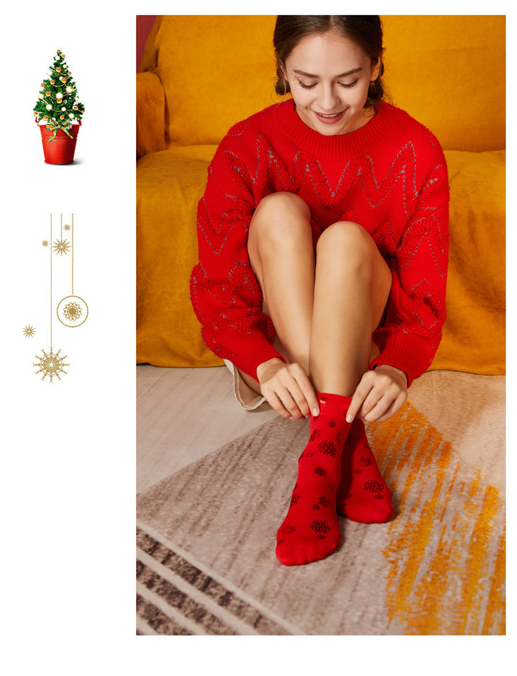 【任选6双99.5】圣诞袜棉质冬日节日女袜圣诞礼物印花圣诞袜