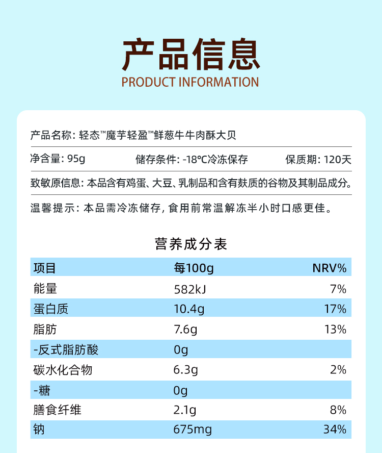 【❄️双12史低价】【89任选9盒】【预售5天】【冷链产品不支持无理由退货】轻态™魔芋轻盈™鲜葱牛牛肉酥大贝95g/盒【有辣味🌶介意慎拍】