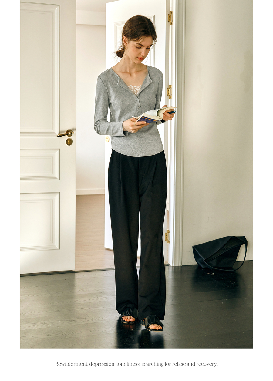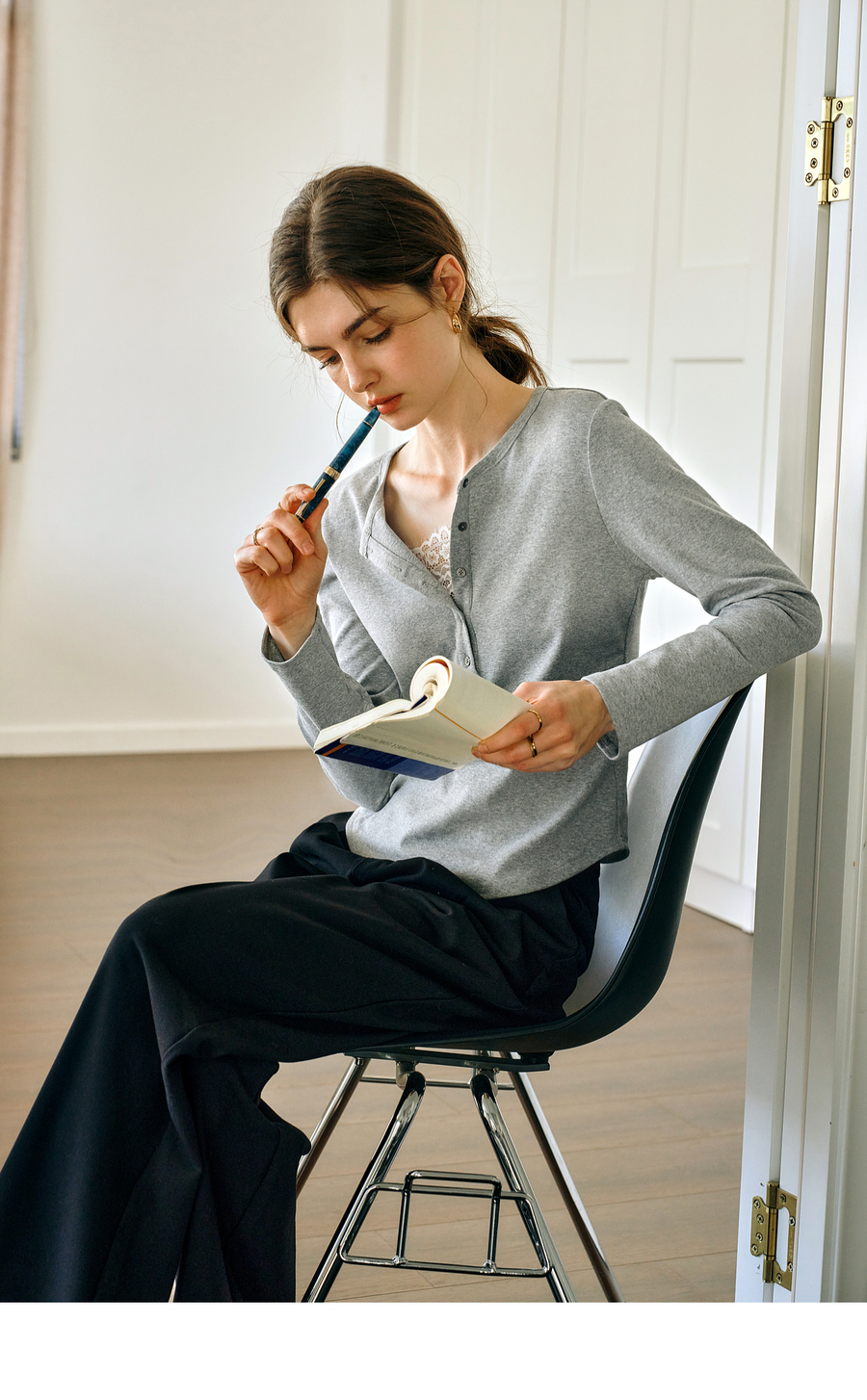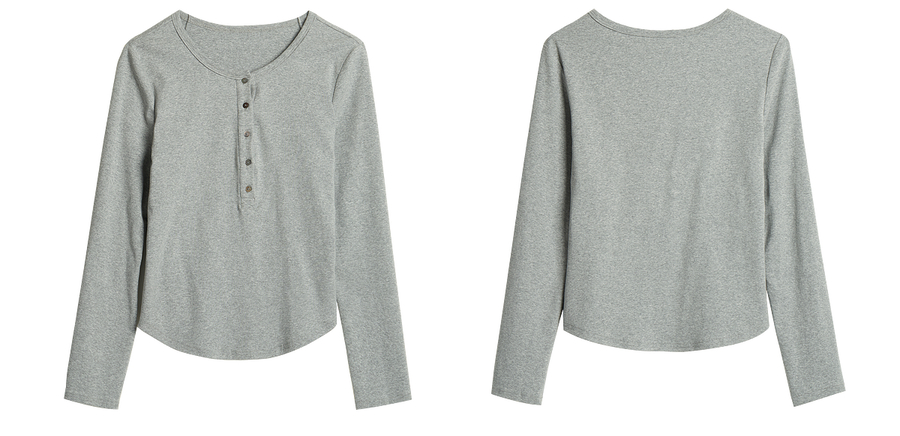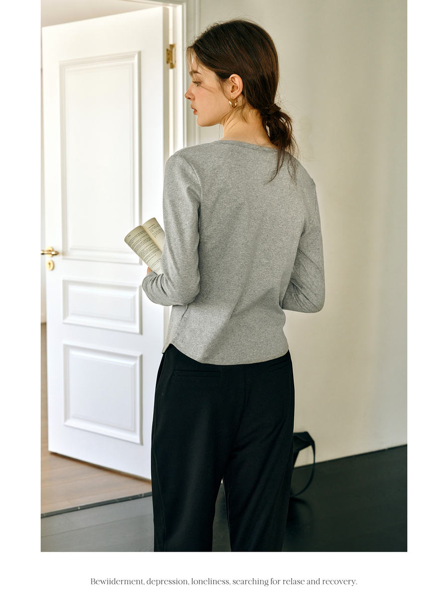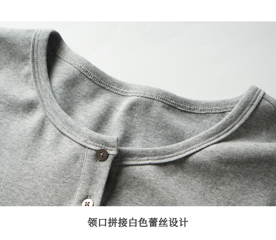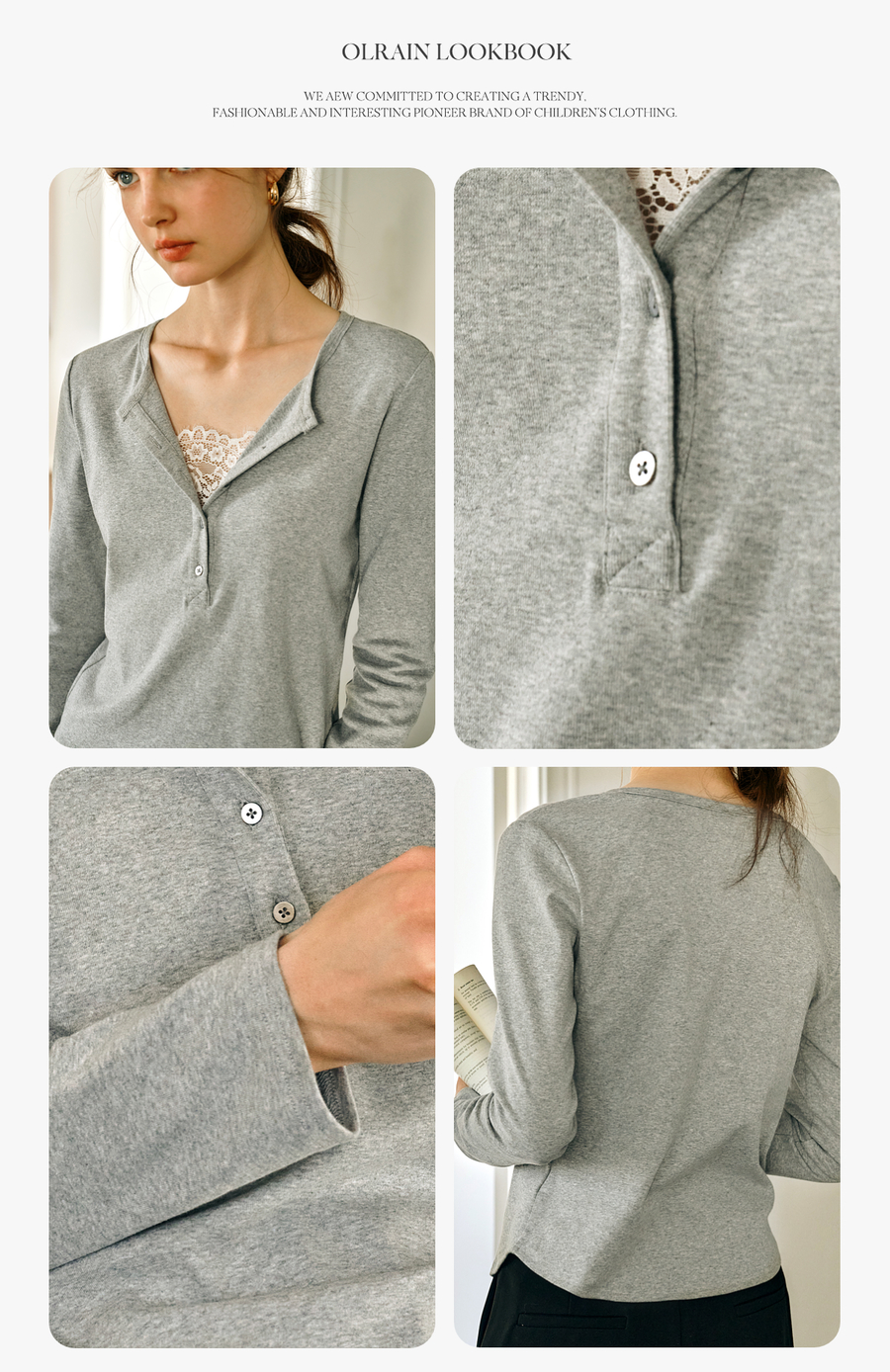 Olrain欧芮儿2025春季新款灰色蕾丝拼接设计简约法式长袖T恤女