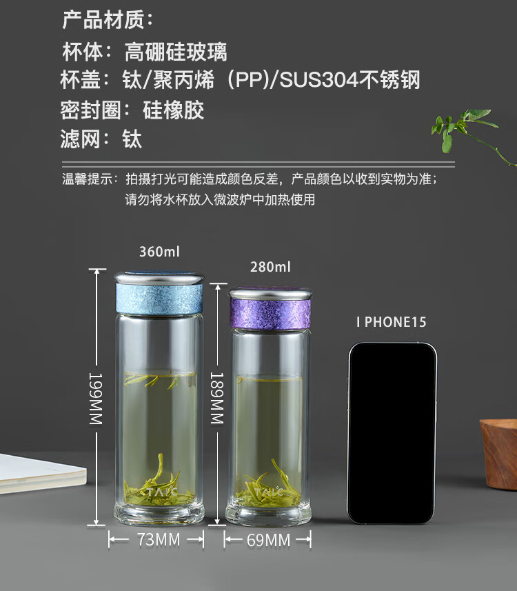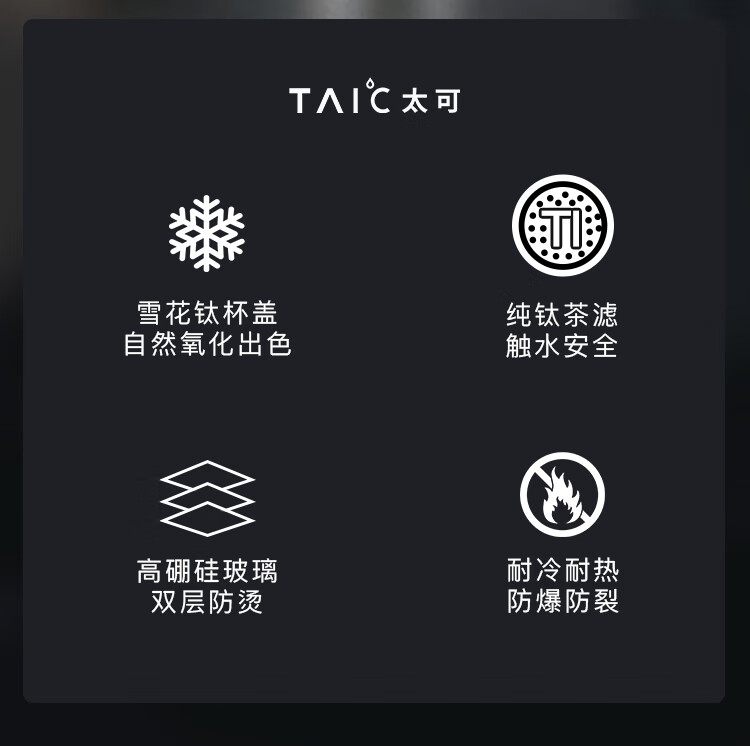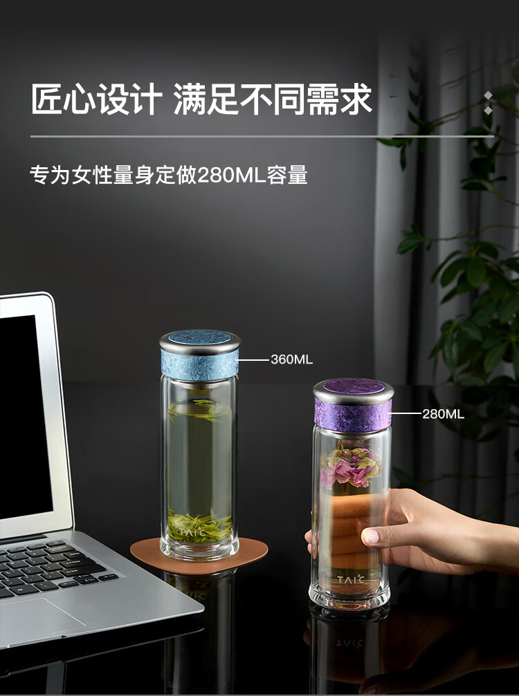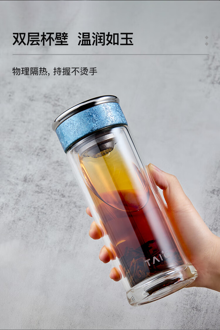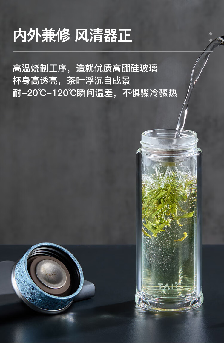 TAIC太可多立克抗菌抑菌保鲜双层隔热高档男女士加厚无铅高硼硅玻璃水