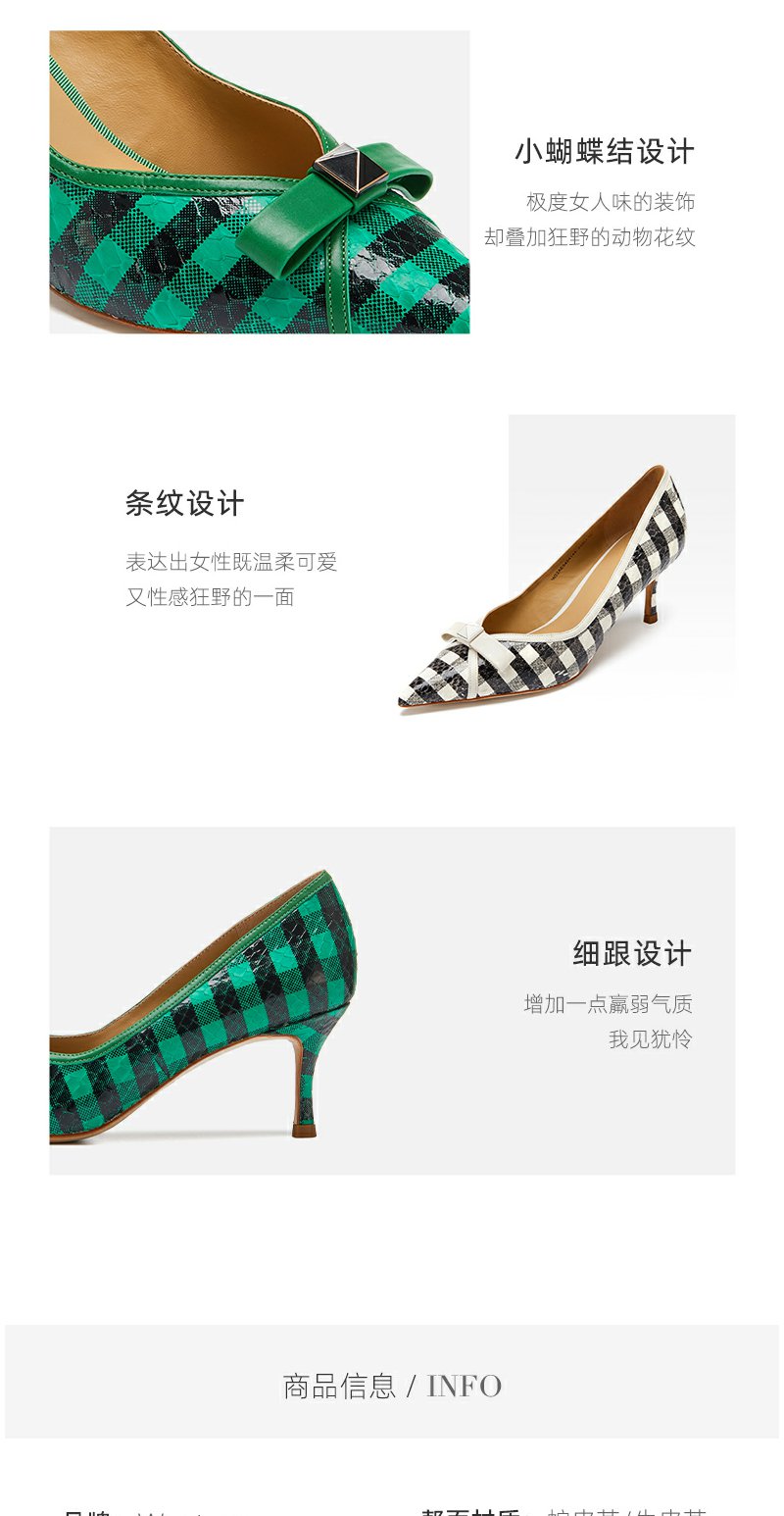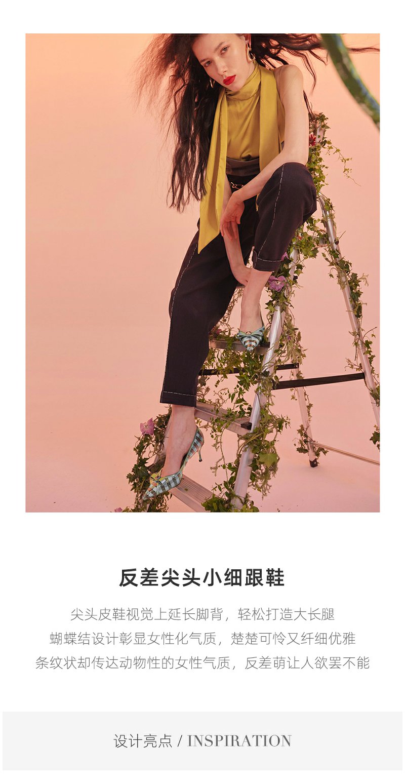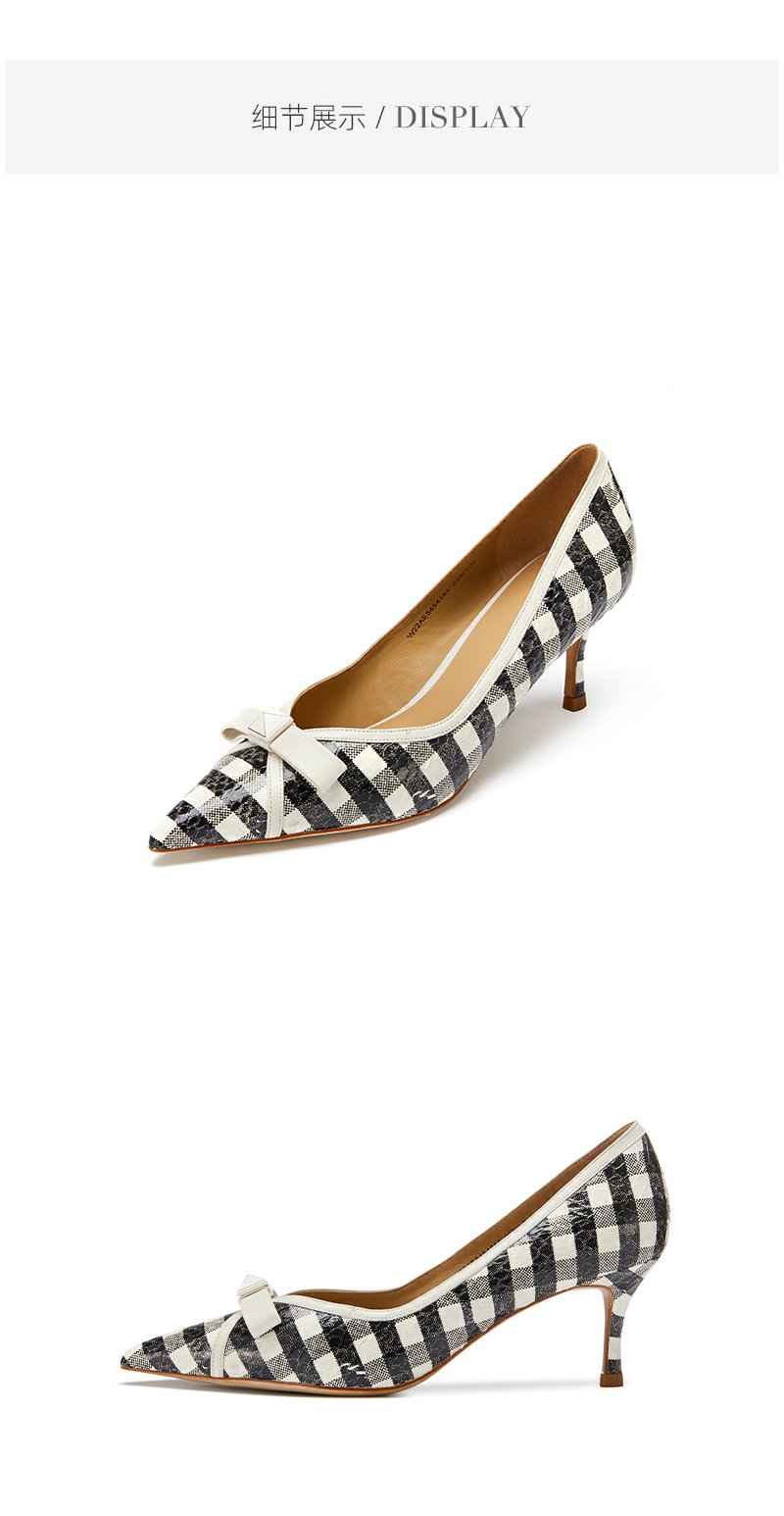 westory条纹蝴蝶结高跟鞋22年春季新款尖头细跟法式单鞋女W22AE54541