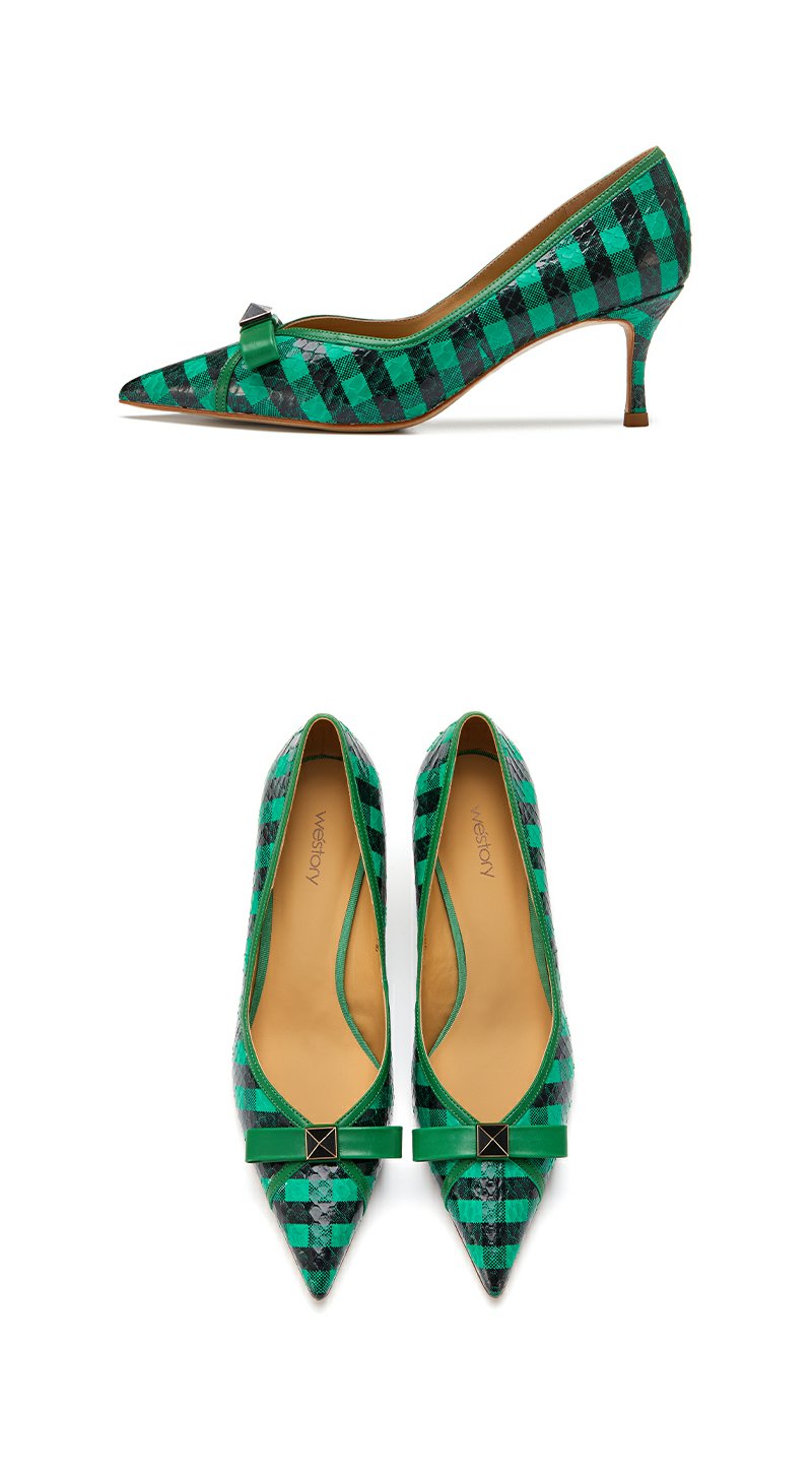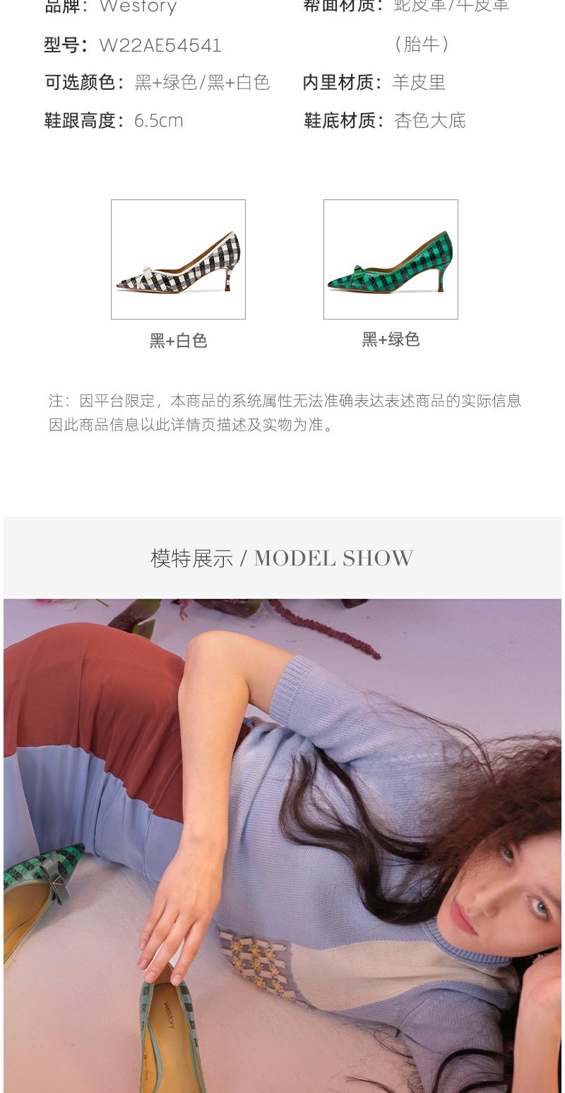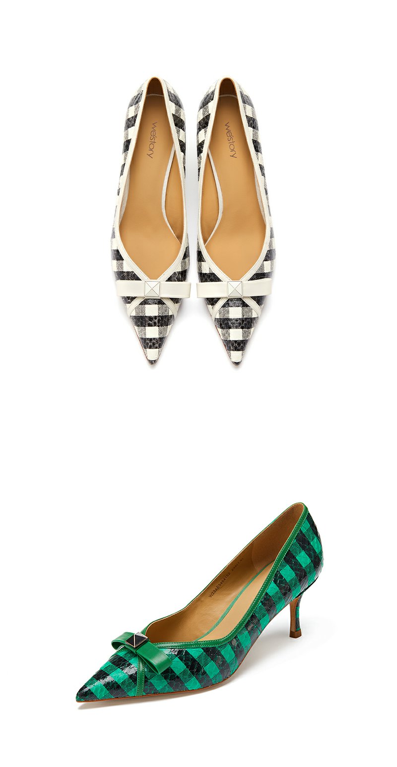 westory条纹蝴蝶结高跟鞋22年春季新款尖头细跟法式单鞋女W22AE54541