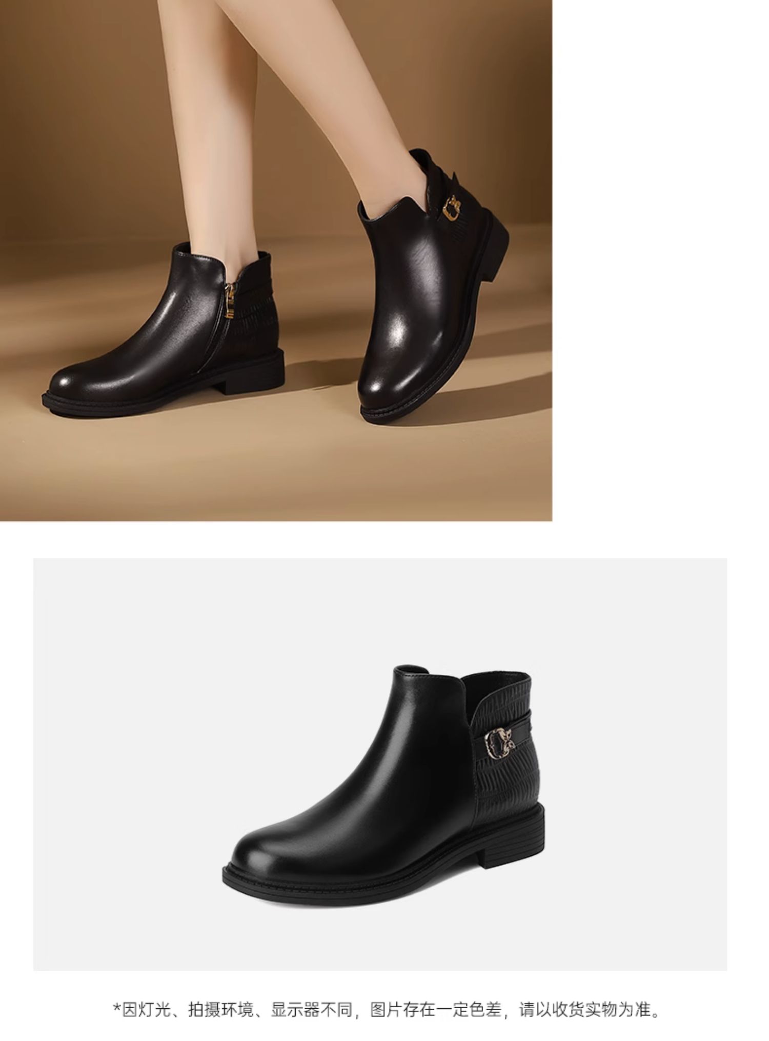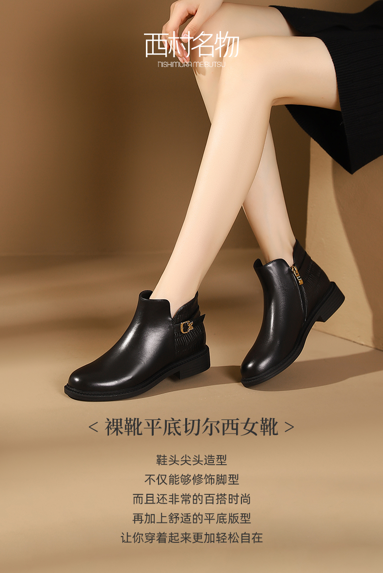西村名物2023秋冬季新款裸靴平底切尔西女靴增高平稳短靴T23DS45971