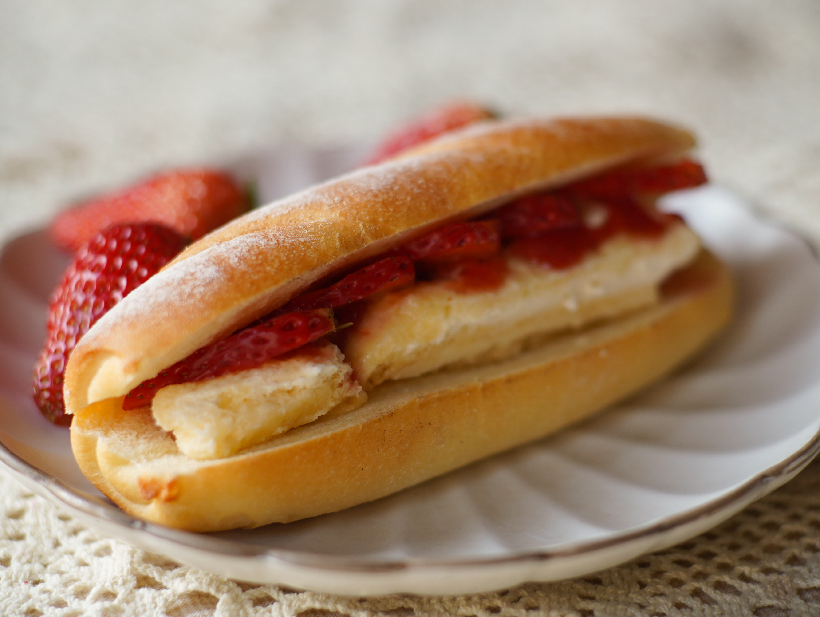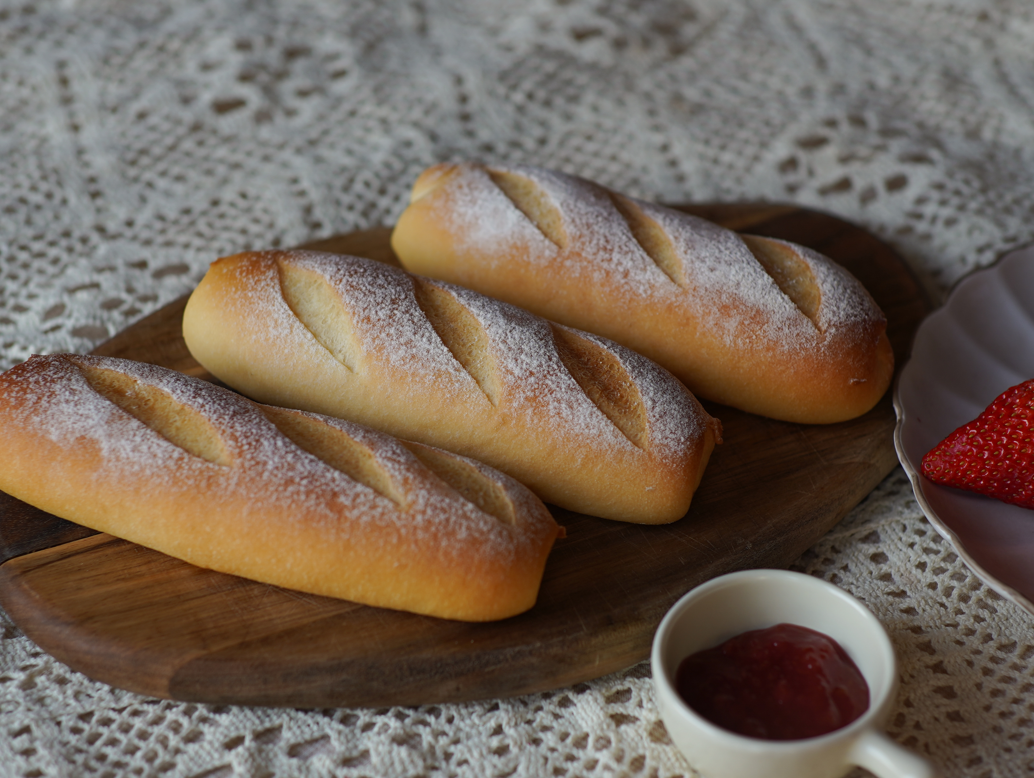 非常适合从中间切开后加入黄油、果酱,煎蛋、guacamole做成咸口的米棍三明治。是与小麦面包非常不同的体验。
