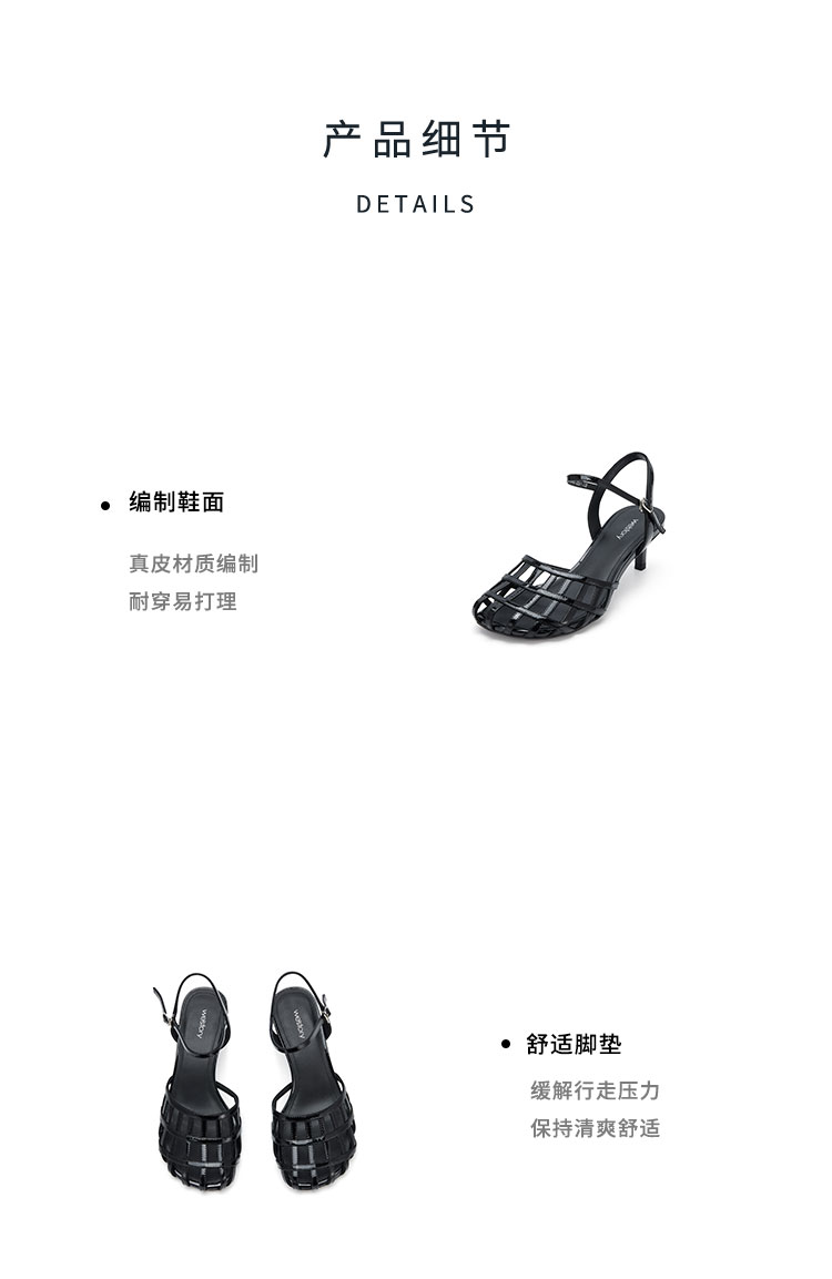 westory夏季新款细中跟包头镂空优雅舒适凉鞋W24BG61931