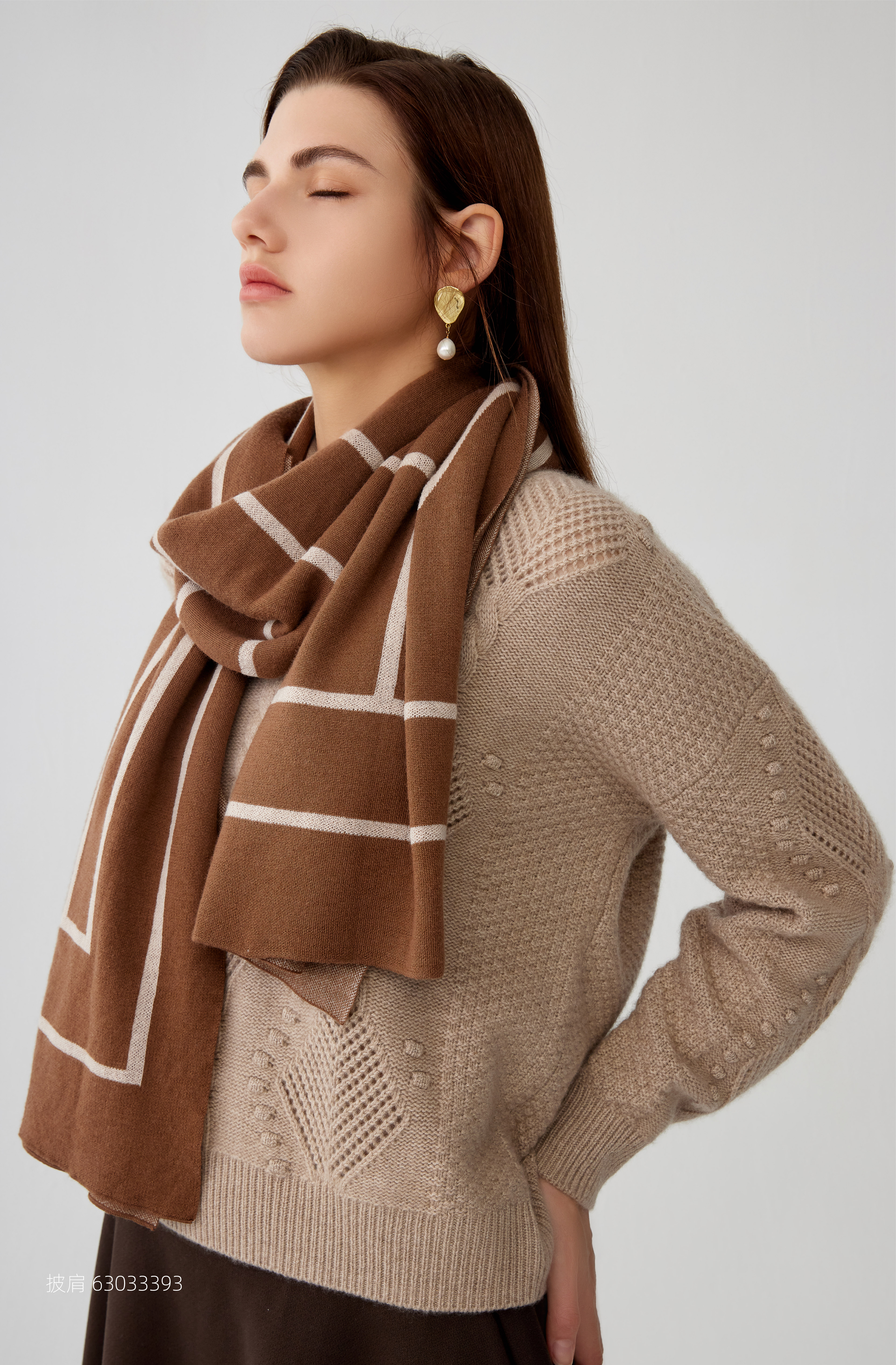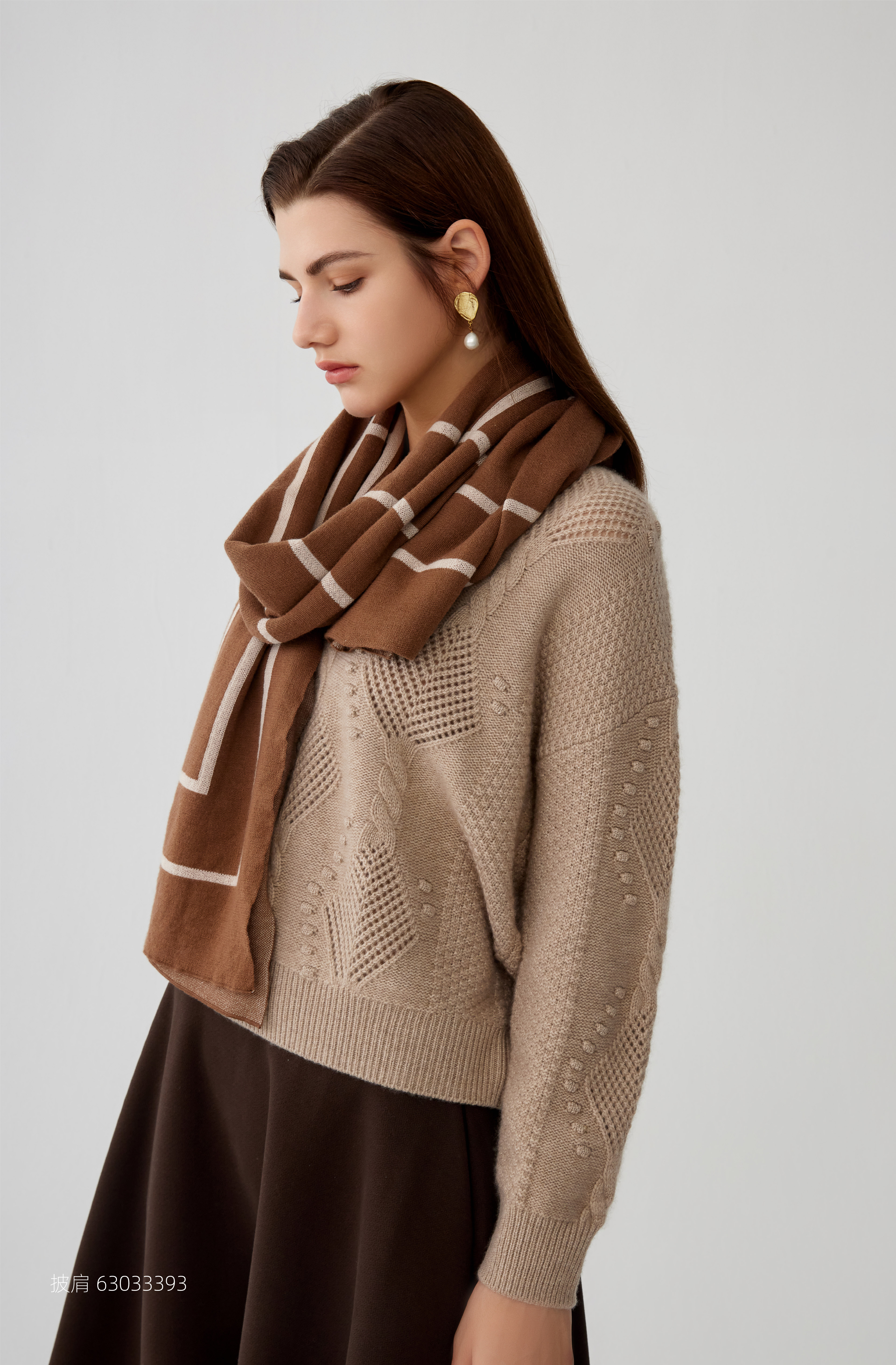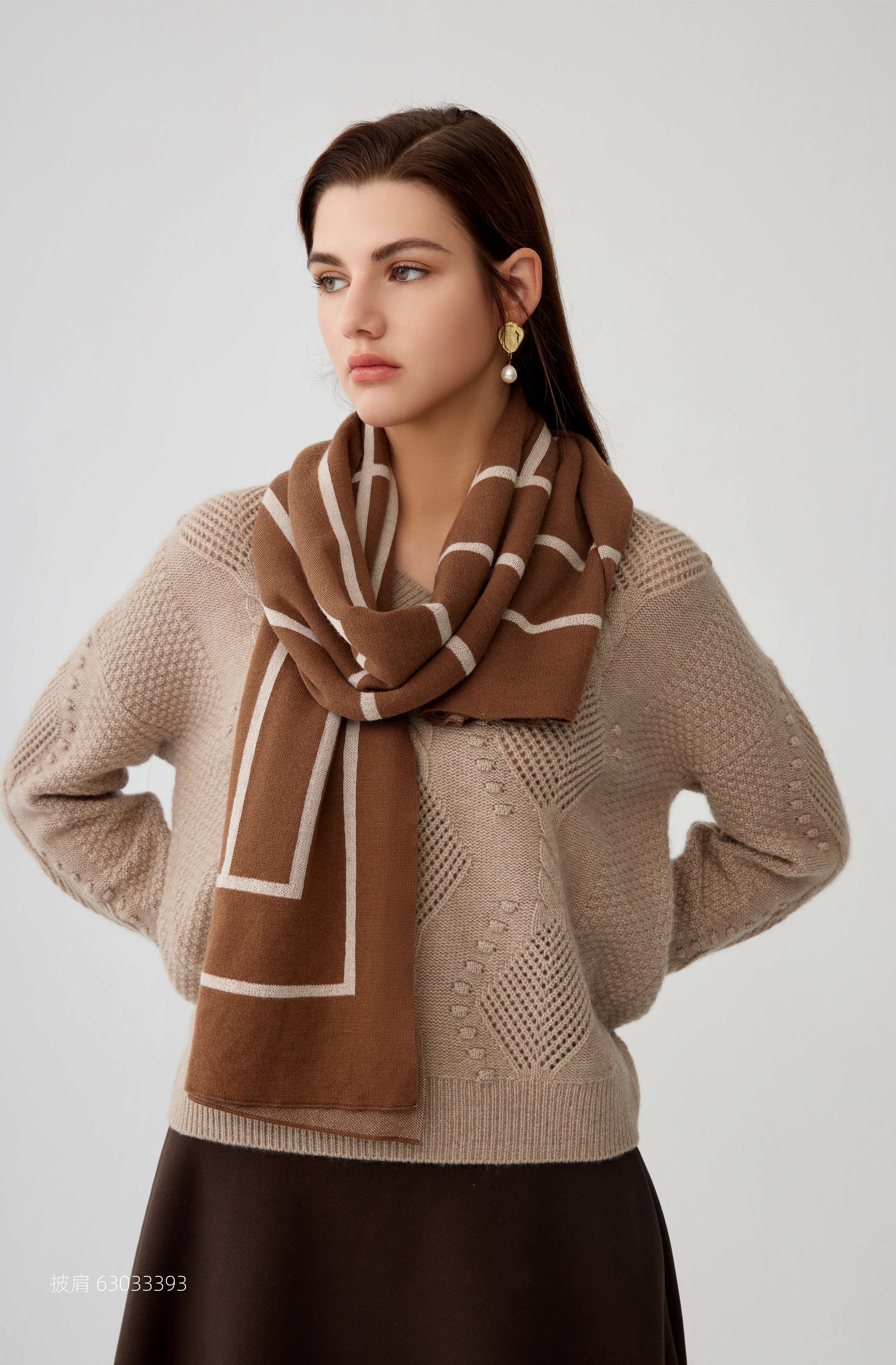 【纯羊毛披肩】23年秋冬女士新品100%绵羊毛围巾时尚百搭长方形保暖围巾