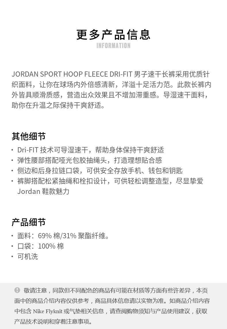 JORDAN耐克男裤子训练运动休闲宽松直筒长裤FV8605-010