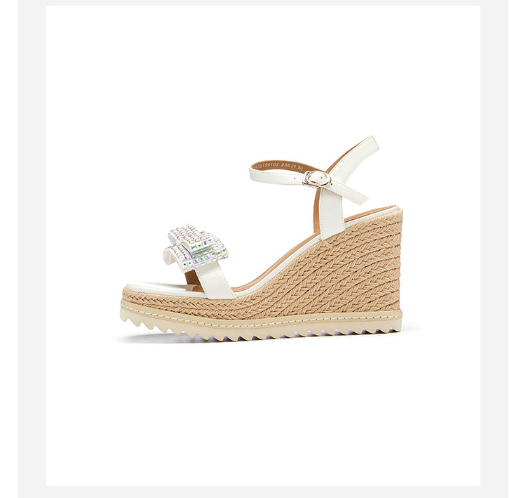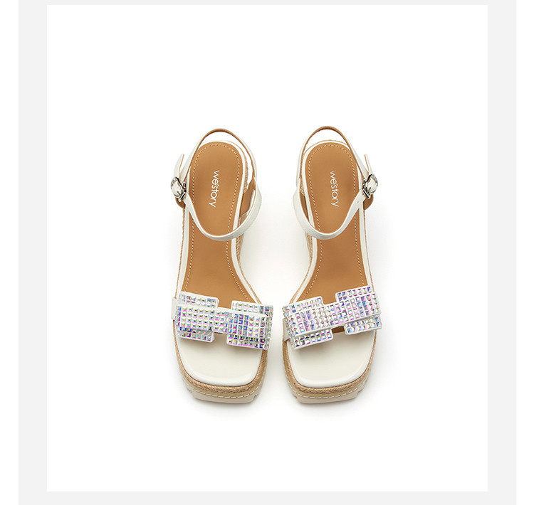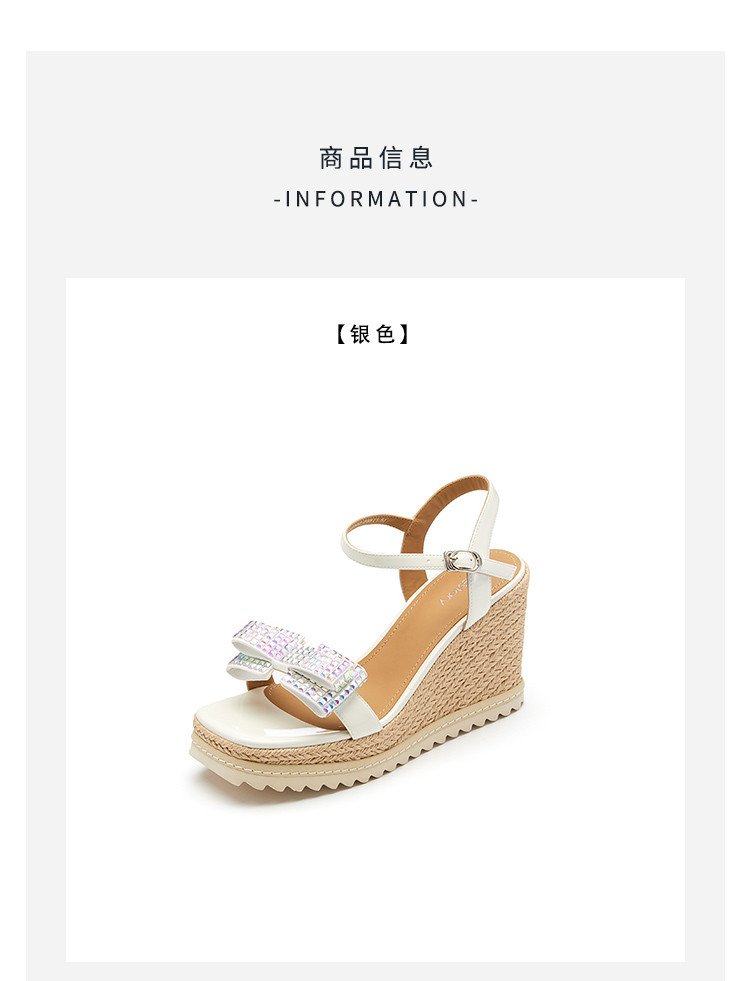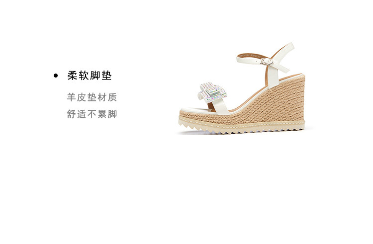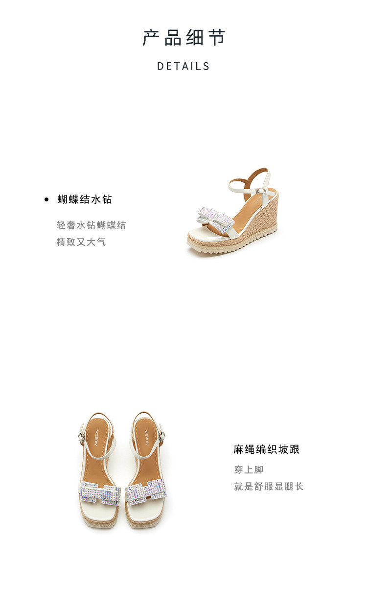 westory夏季粗坡跟增高鞋小众设计防水台超轻蝴蝶结饰扣时尚凉鞋61591