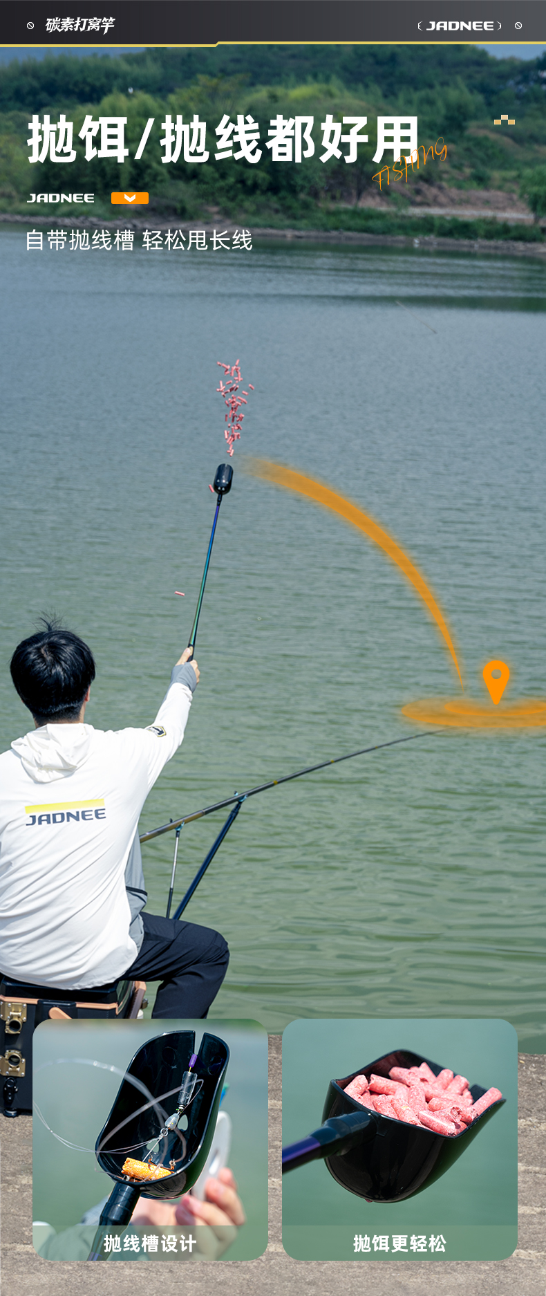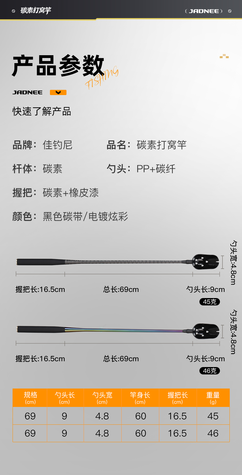 佳钓尼碳素新品打窝勺全竿身碳素一体化设计自重轻巧抛投精准