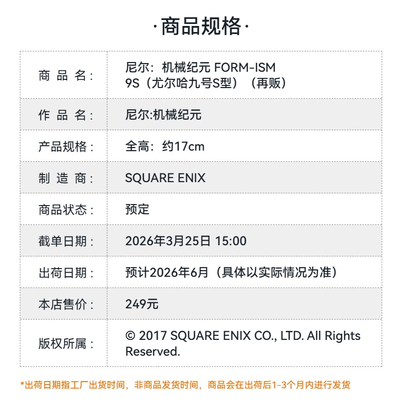 【GSC预售定金】尼尔:机械纪元 FORM-ISM 9S(尤尔哈九号S型)