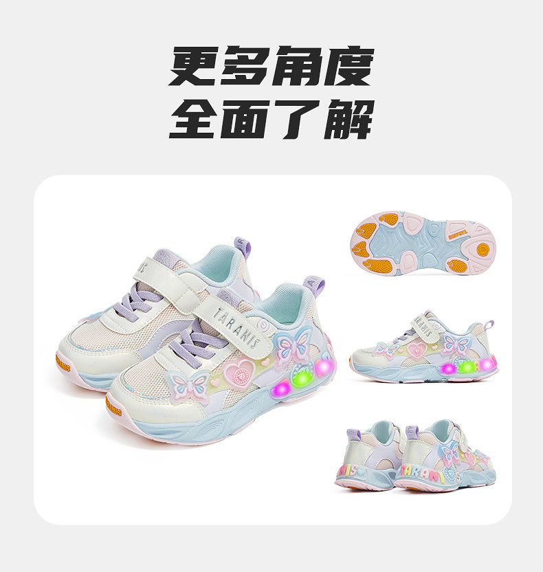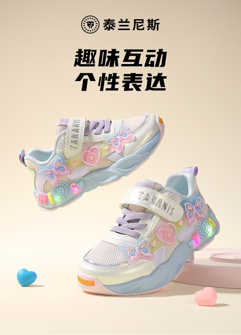 泰兰尼斯儿童甜心闪灯运动鞋春季新款女童跑步鞋幼儿园鞋发光鞋子T01X6A8626