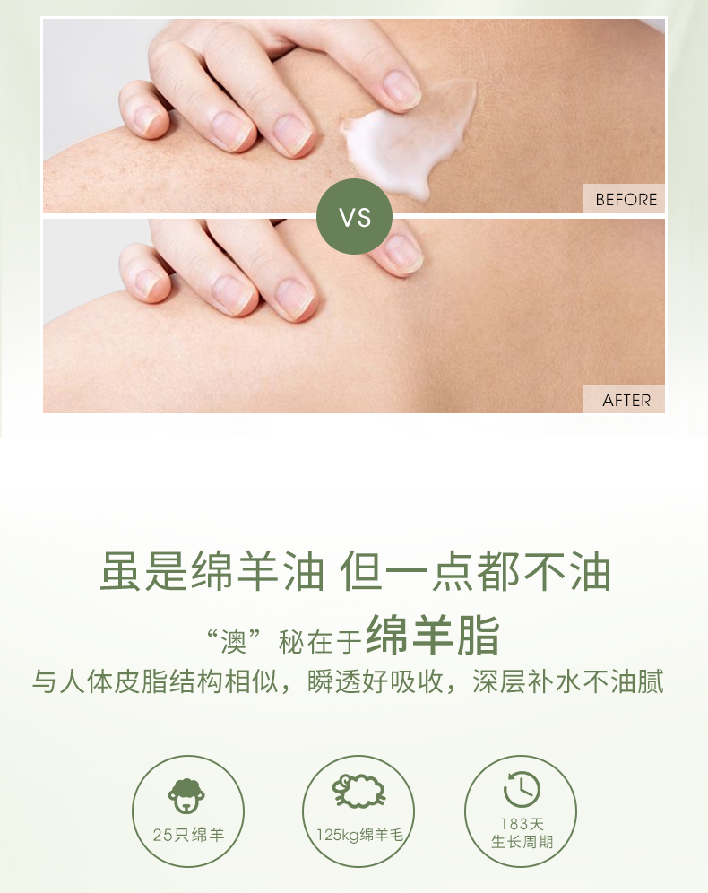 澳芝曼绵羊油滋润维e霜绵羊脂油身体乳全身持久留香润肤露补水保湿秋冬500g