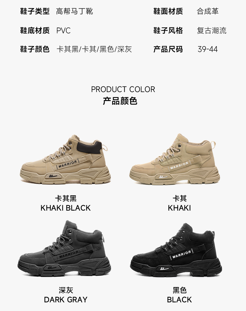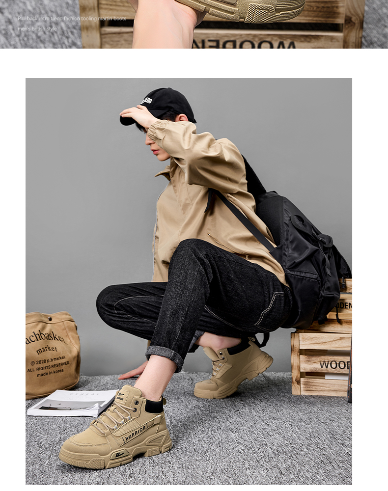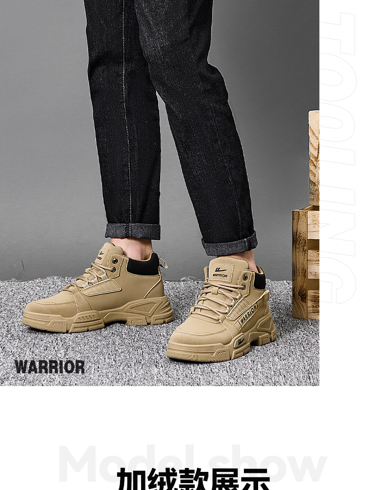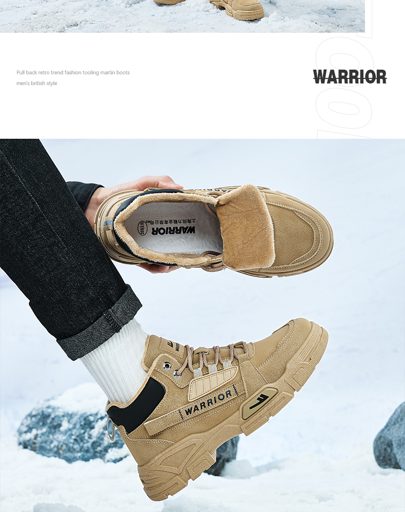 回力男鞋马丁靴2024冬季加绒新款高帮工装鞋骑行靴子男款登山鞋