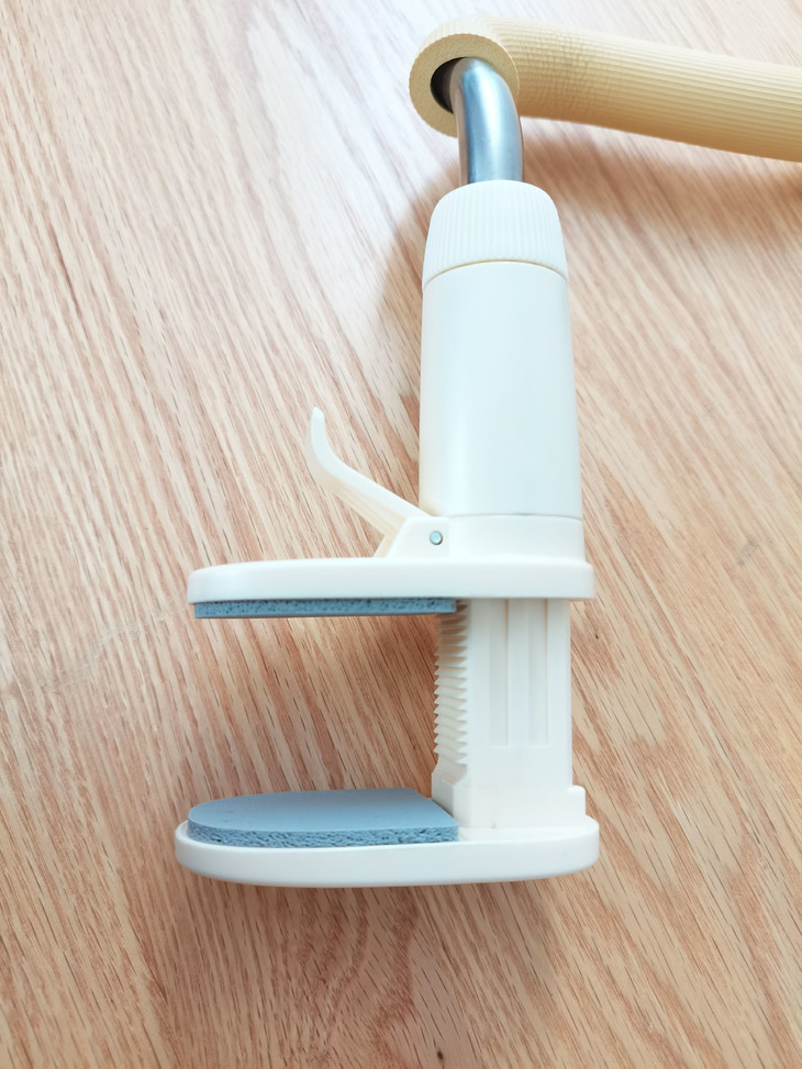 √底座调节:底座处可夹0-4cm厚的桌子,调节好高度后,按下固定按钮便能紧扣桌面。就算是厚实的大木桌都能夹得稳固!