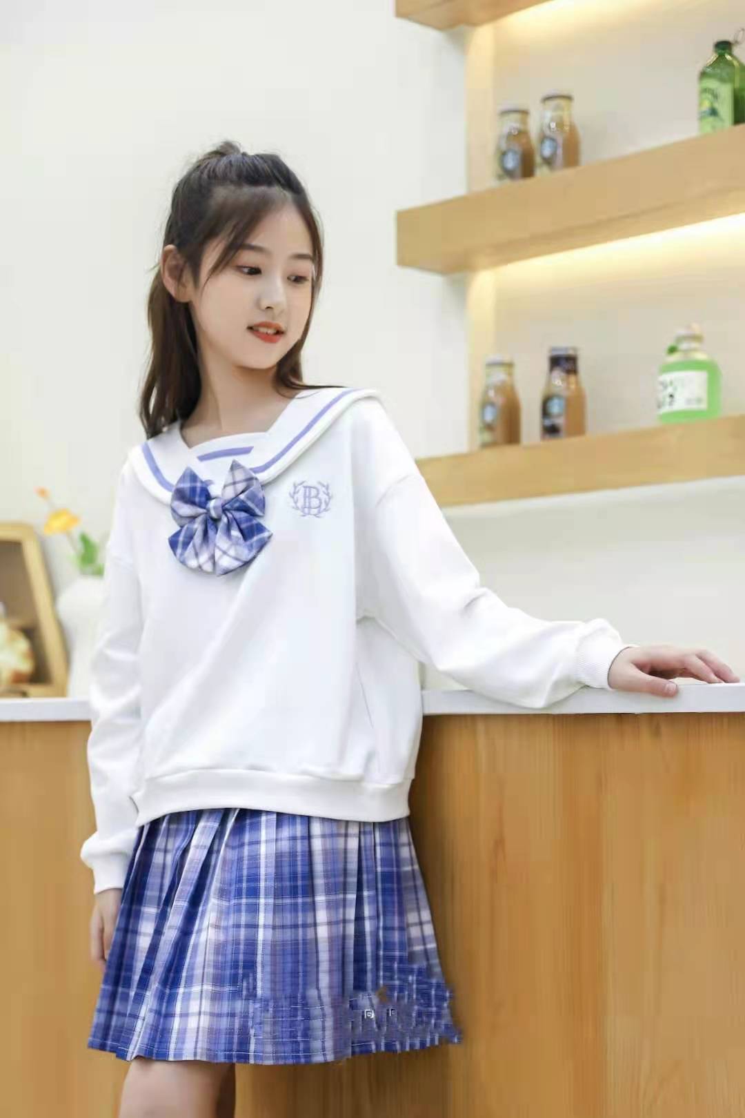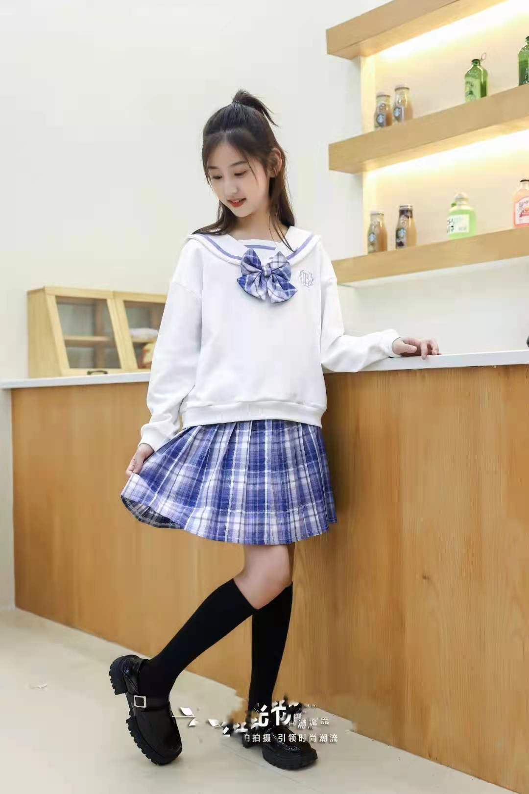 学院风套裙,上身面料柔软亲肤感好,下身百褶裙,时尚大气,彰显女孩气质