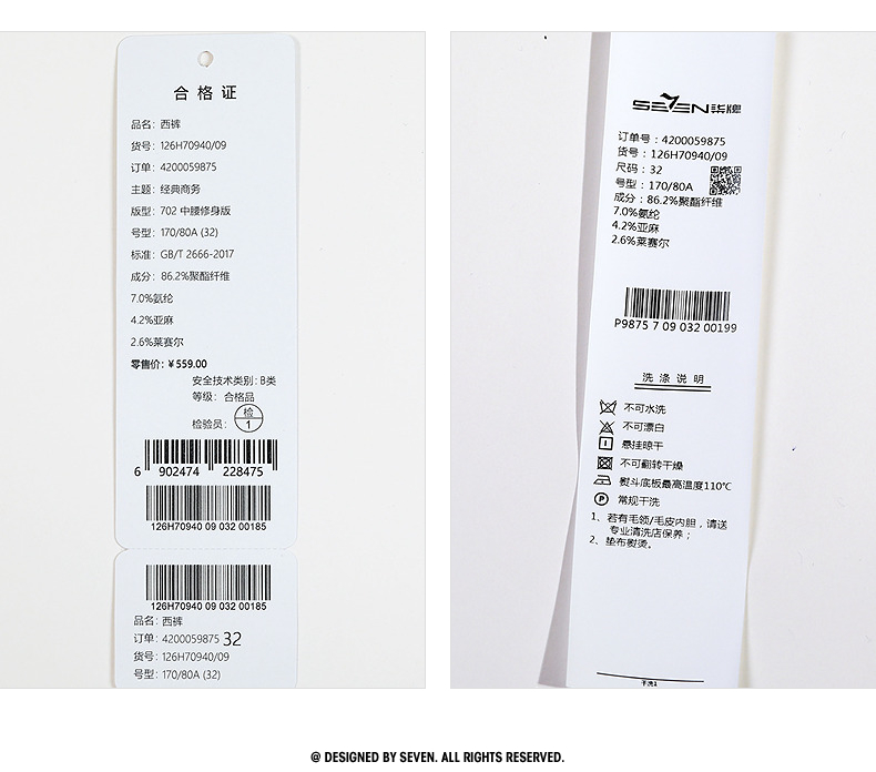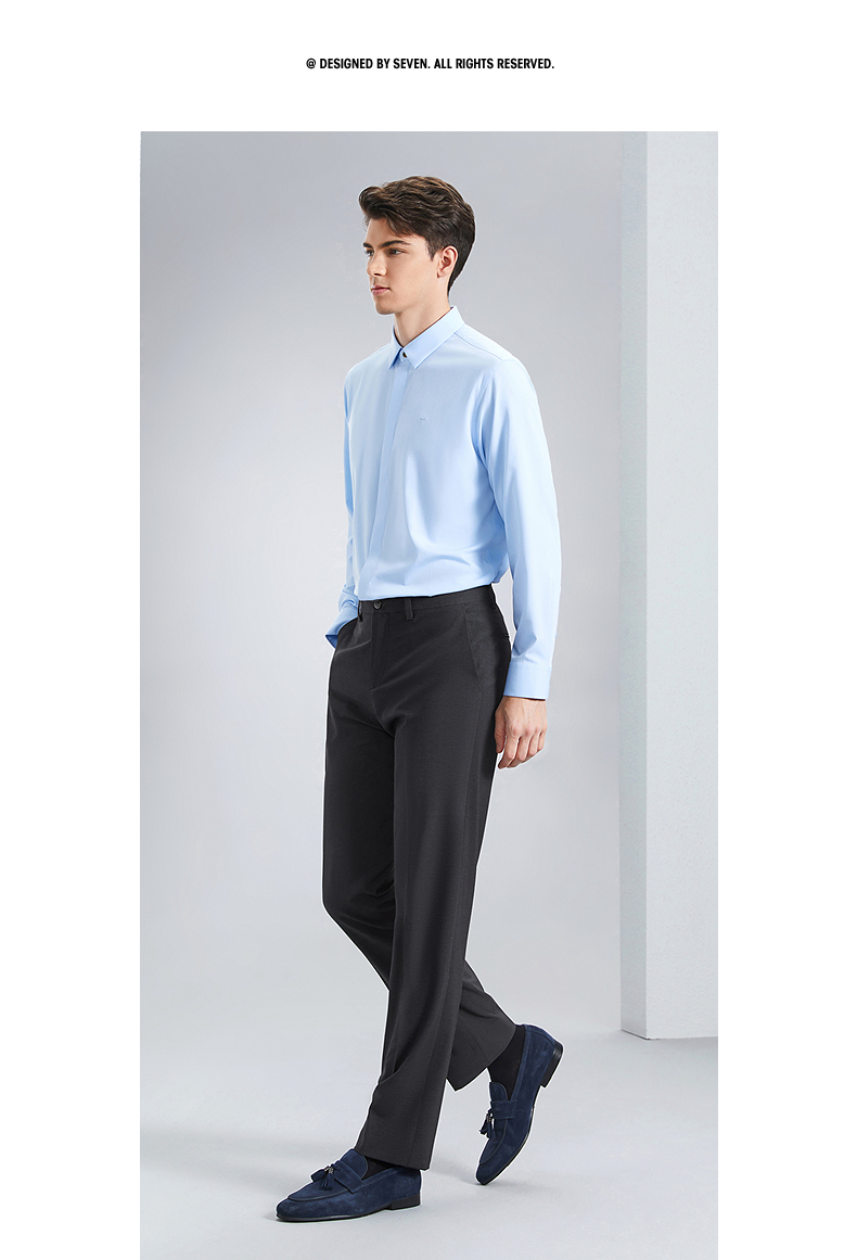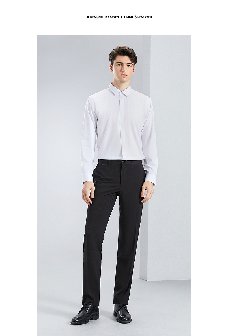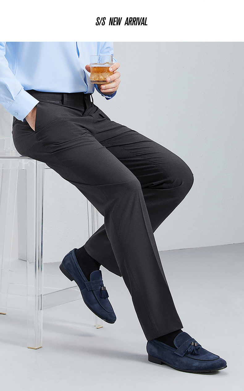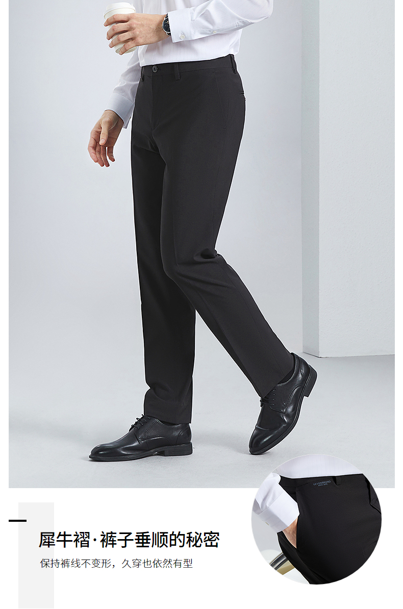【犀牛褶】柒牌男装西裤2024春季新款商务休闲含麻男士直通长裤子 126H70940