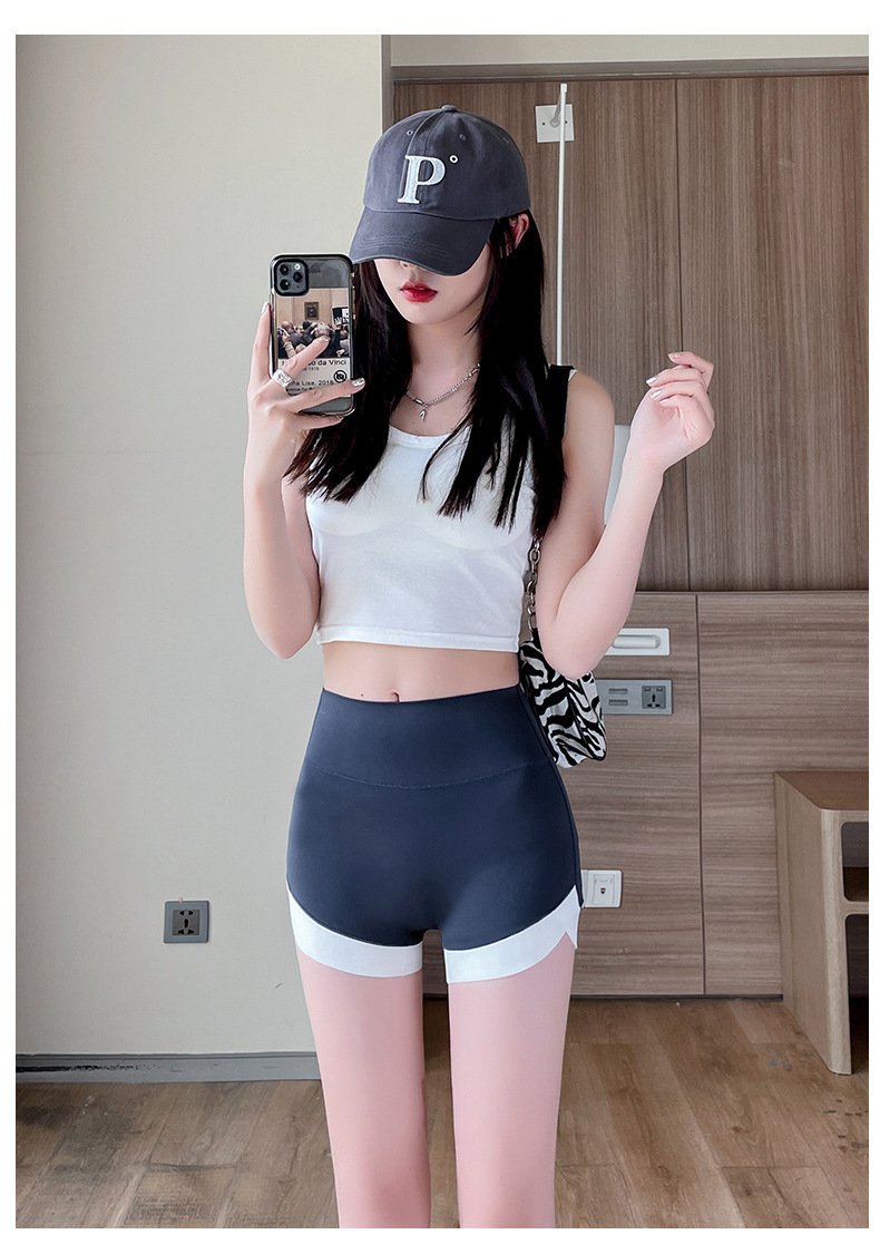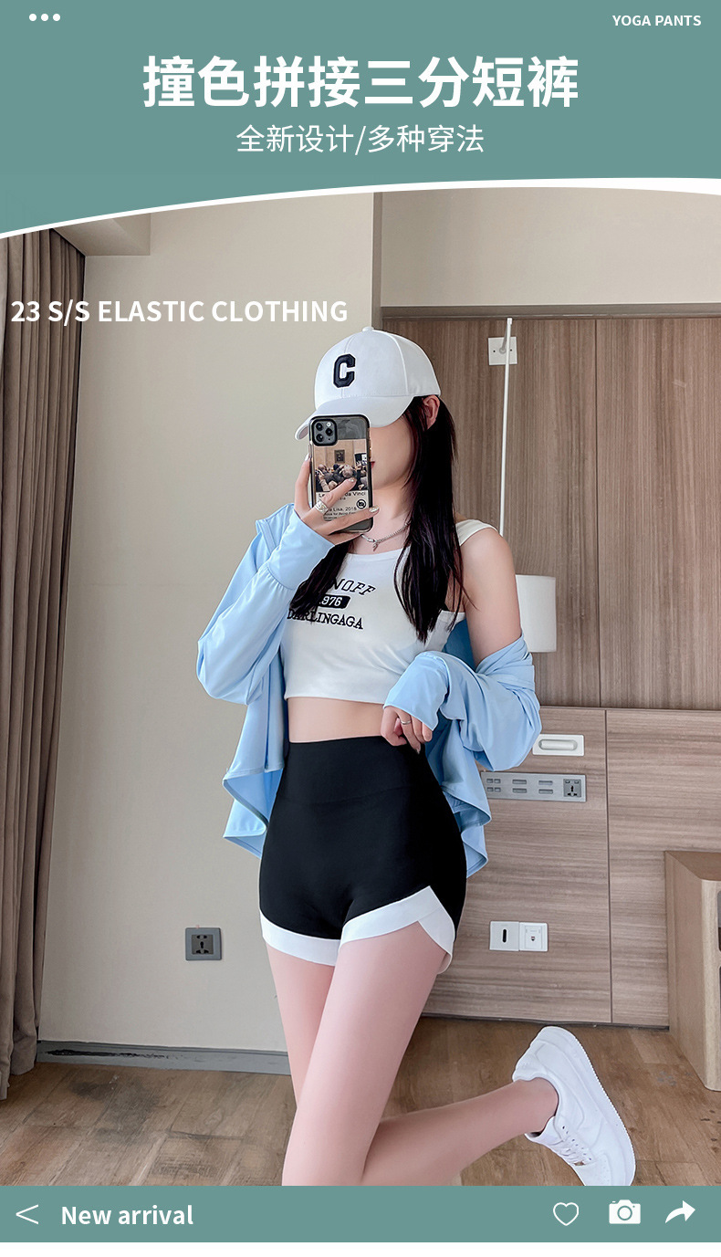 59元三条【三合一安全裤】三分撞色鲨鱼短裤 亲肤透气自带凉感 居家外穿瑜伽 修身舒适顺滑 提臀塑型安全裤三合一