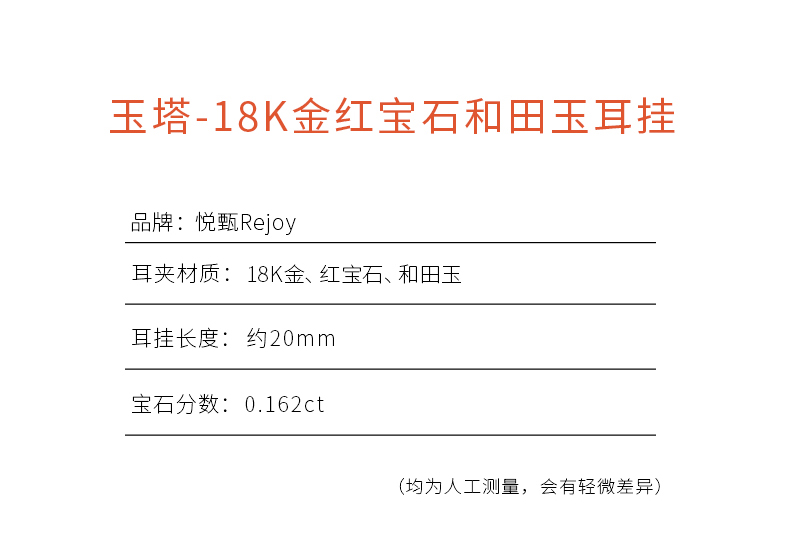 【天猫同款】玉塔 18k金红宝石和田玉耳挂