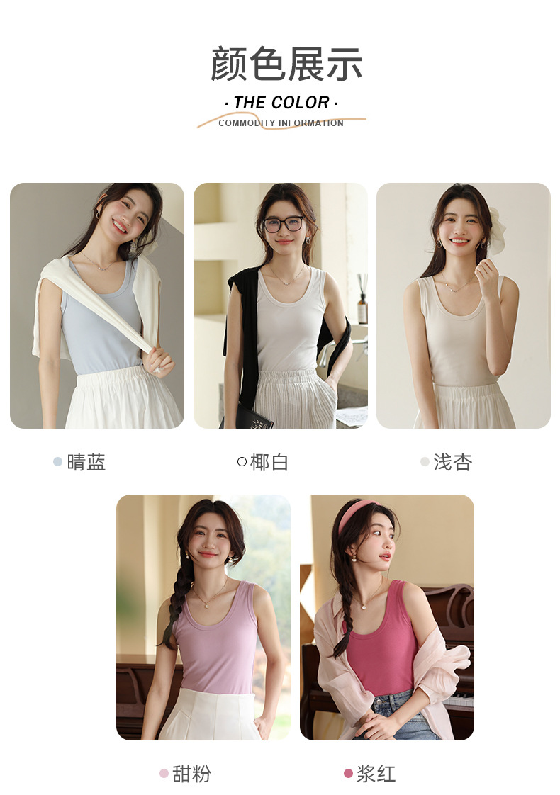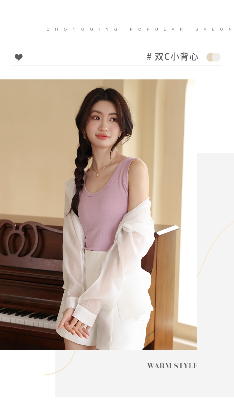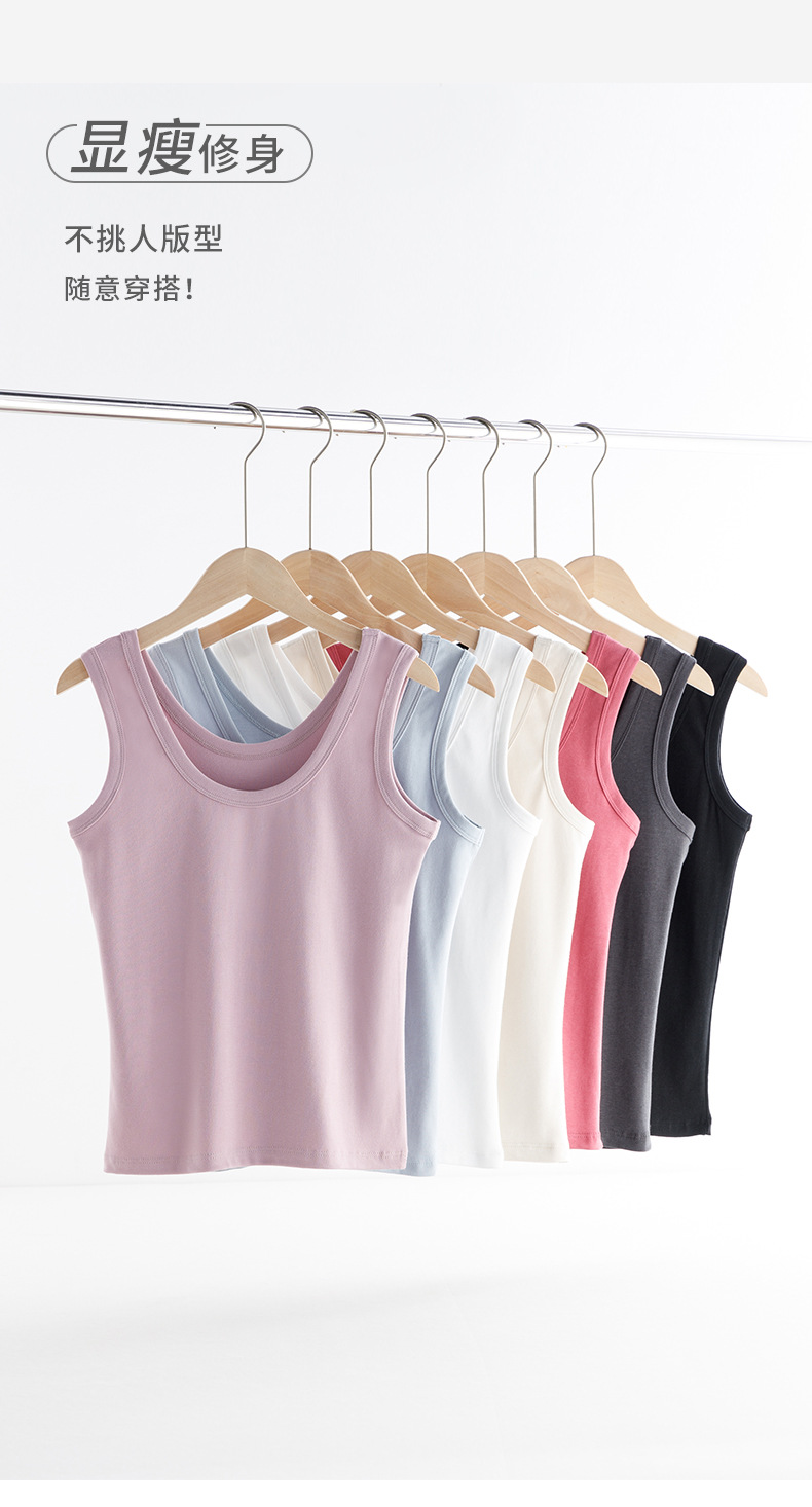 【法式美背,不勒肉防走光】纯色小吊带背心 腋下双C设计 不勒肉防走光 大领口设计露出丝滑锁骨