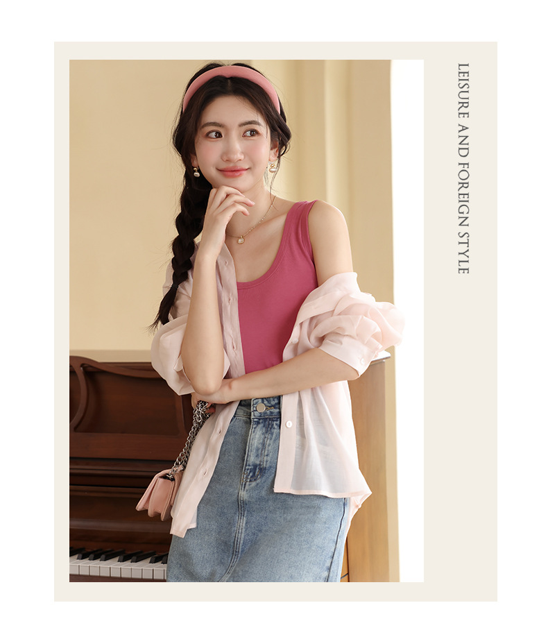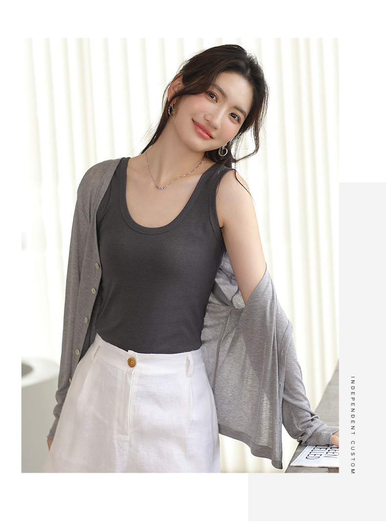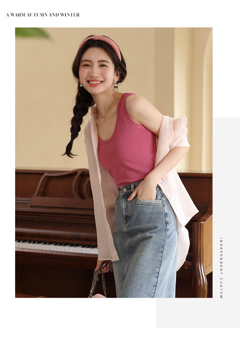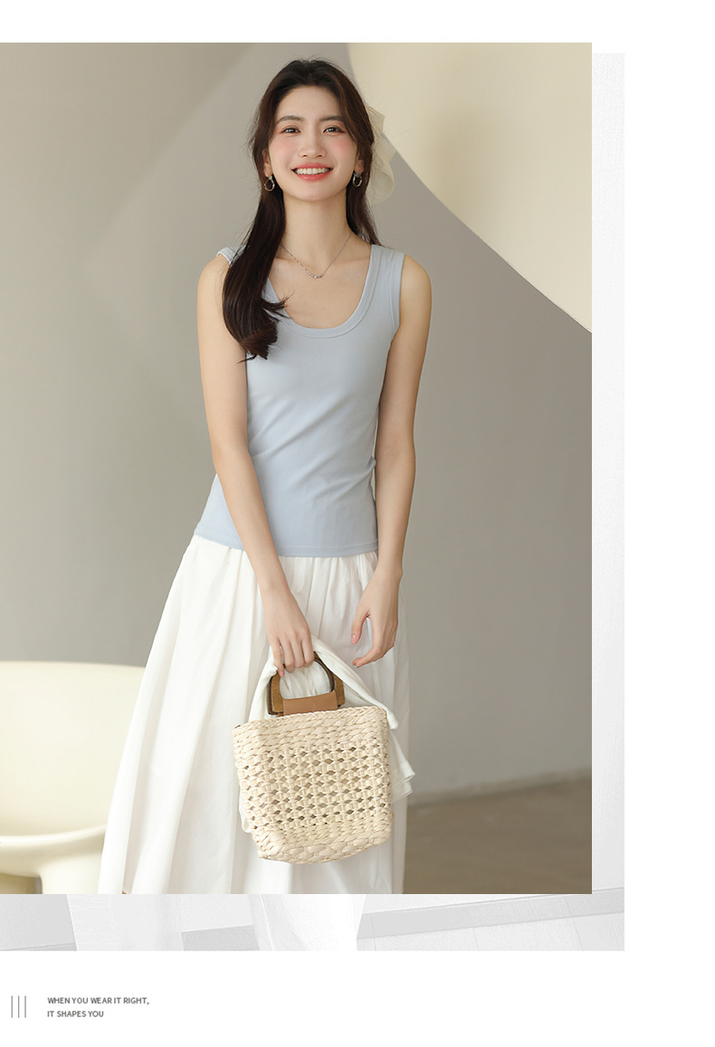 【法式美背,不勒肉防走光】纯色小吊带背心 腋下双C设计 不勒肉防走光 大领口设计露出丝滑锁骨
