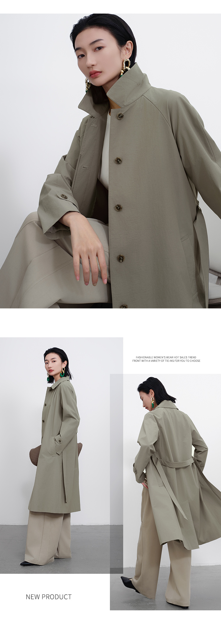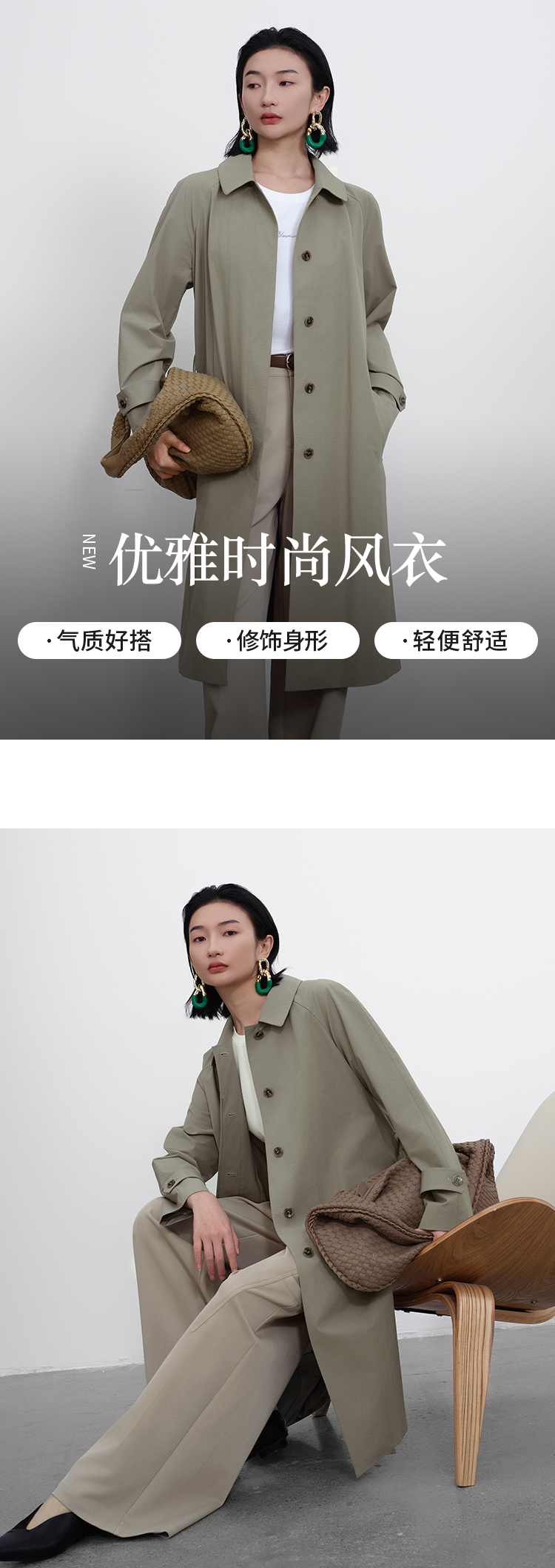 【商场同款】CNG5362 “悠然风衣” 苔藓绿色低调自然 显瘦中长风衣