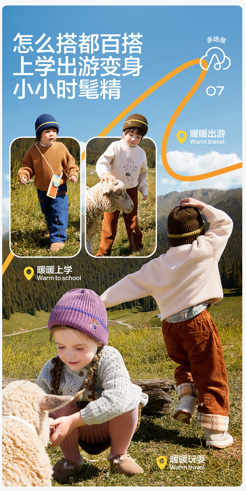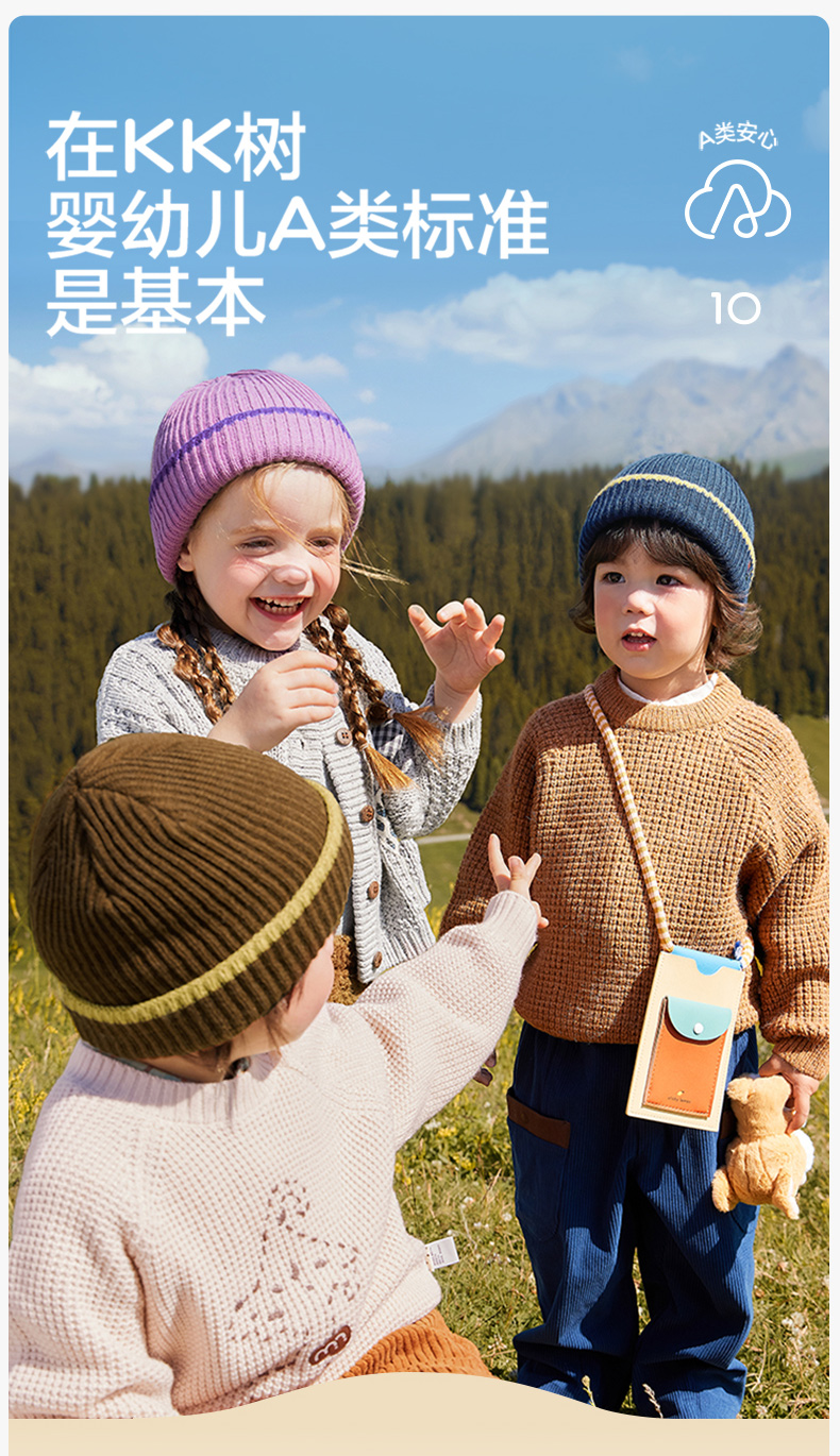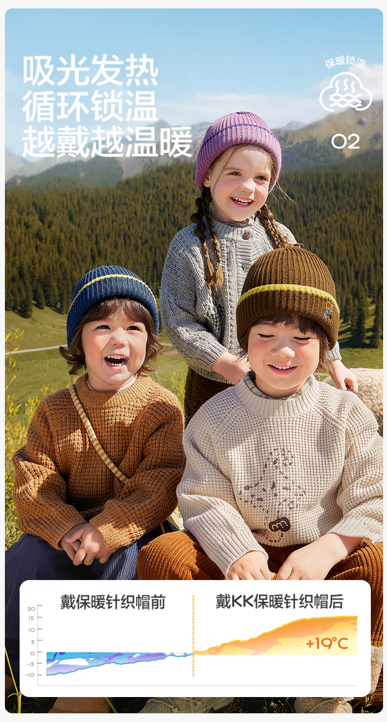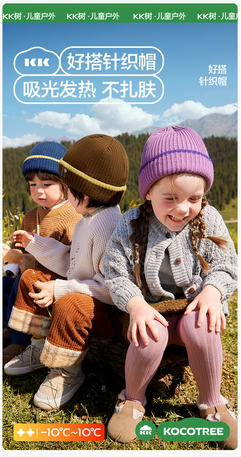 KK树儿童帽子秋冬男童女孩针织帽宝宝毛线帽护耳保暖外出2025新款暖抱抱针织线帽