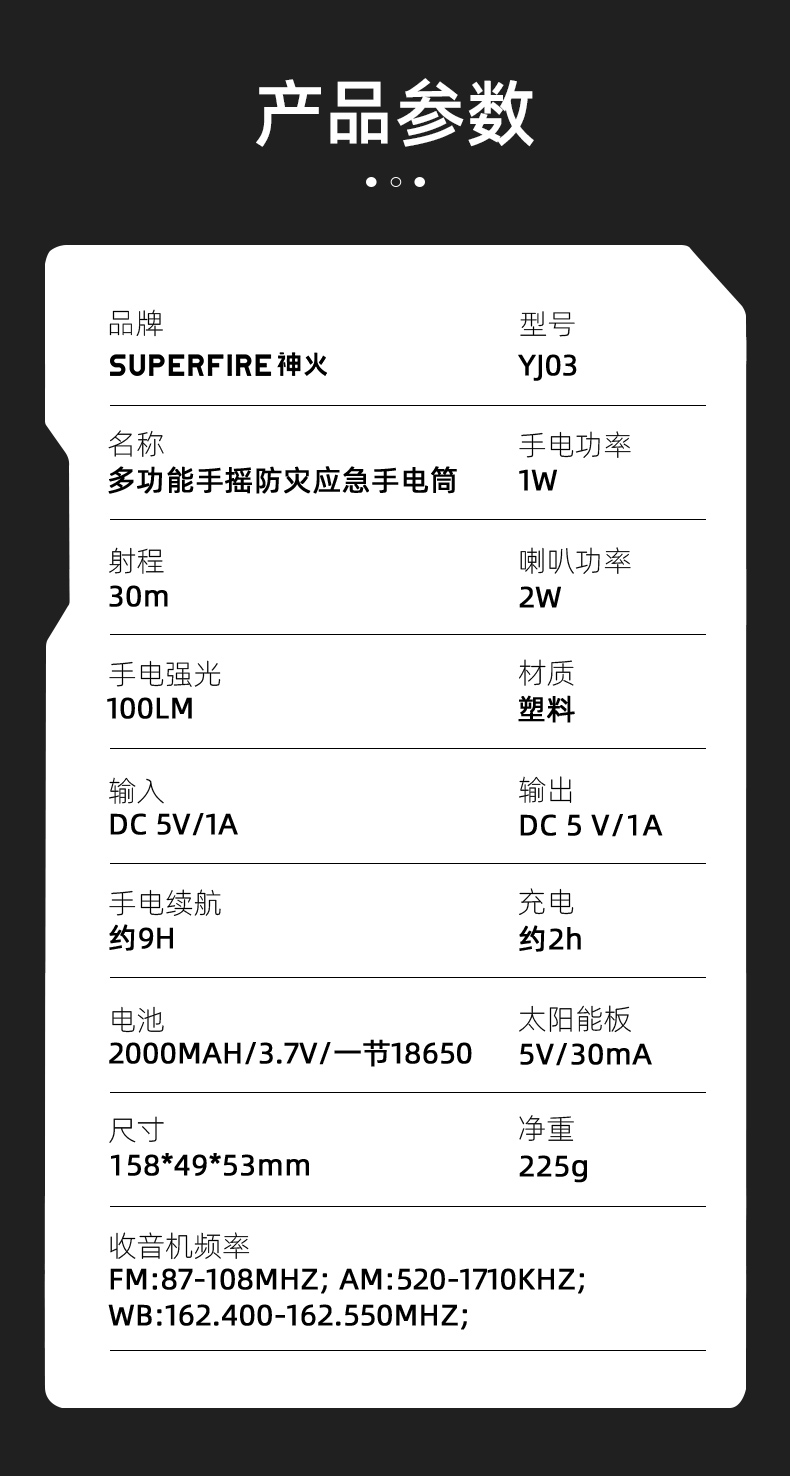 神火YJ03防灾应急手电筒手摇发电带收音机多功能户外必备