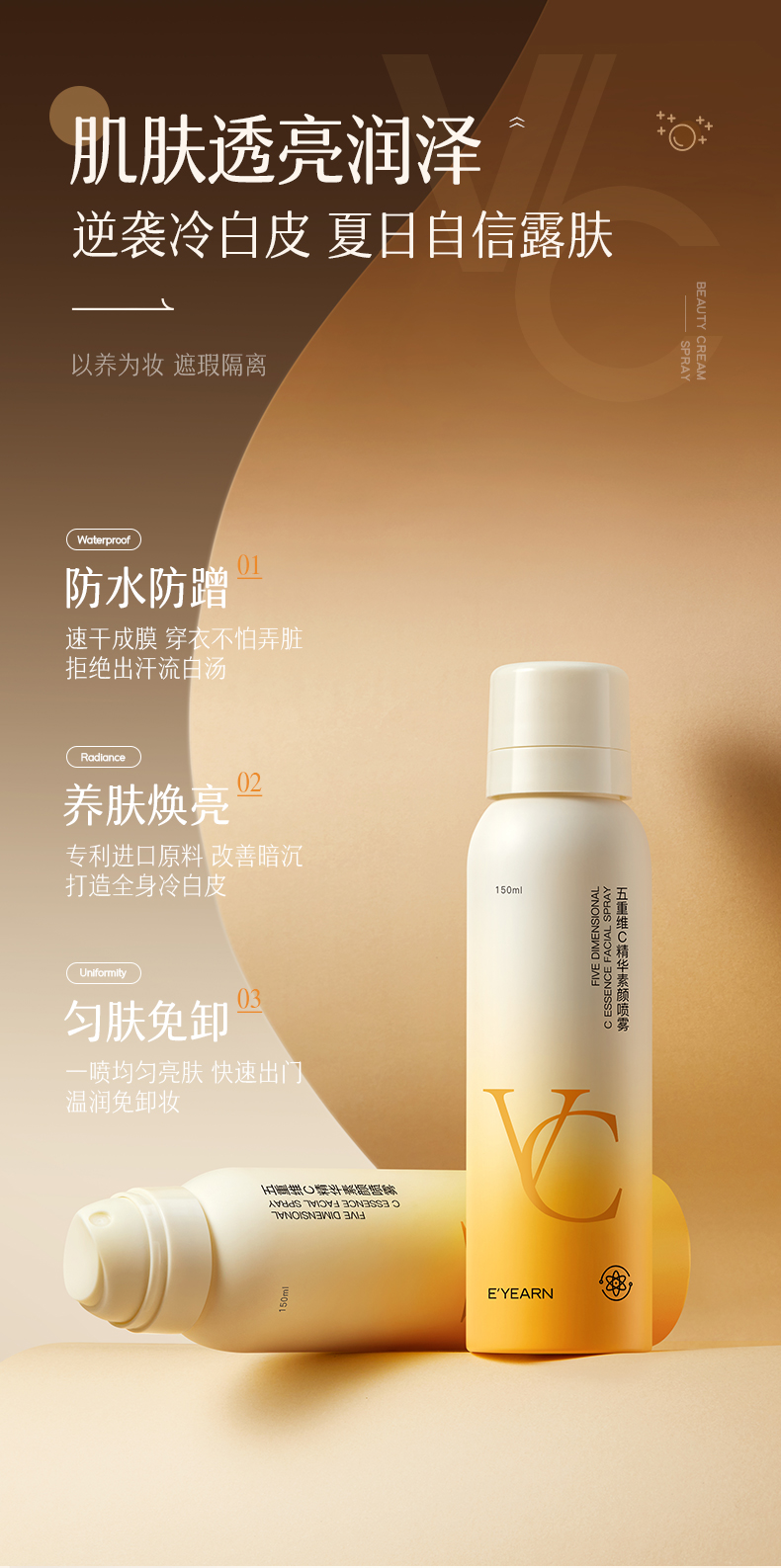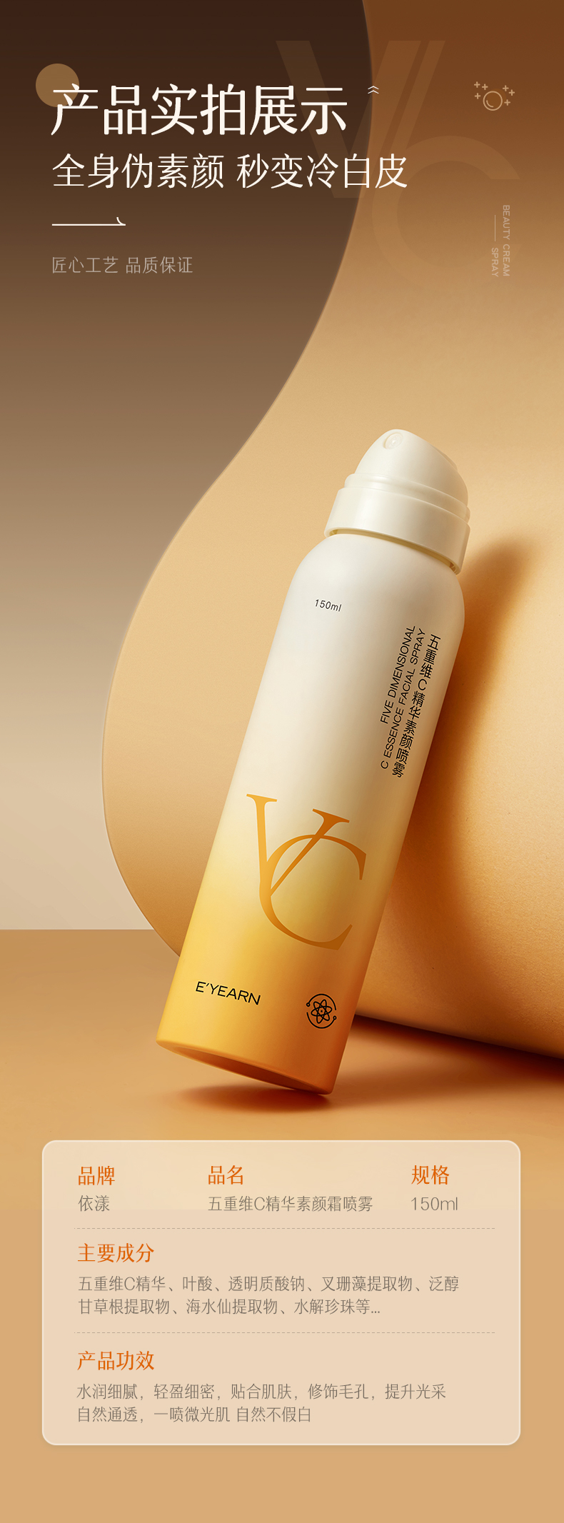 【裸妆新体验,自然真素颜】依漾五重维C素颜霜 逆袭冷白皮 一喷一抹快速出街 150ml/瓶