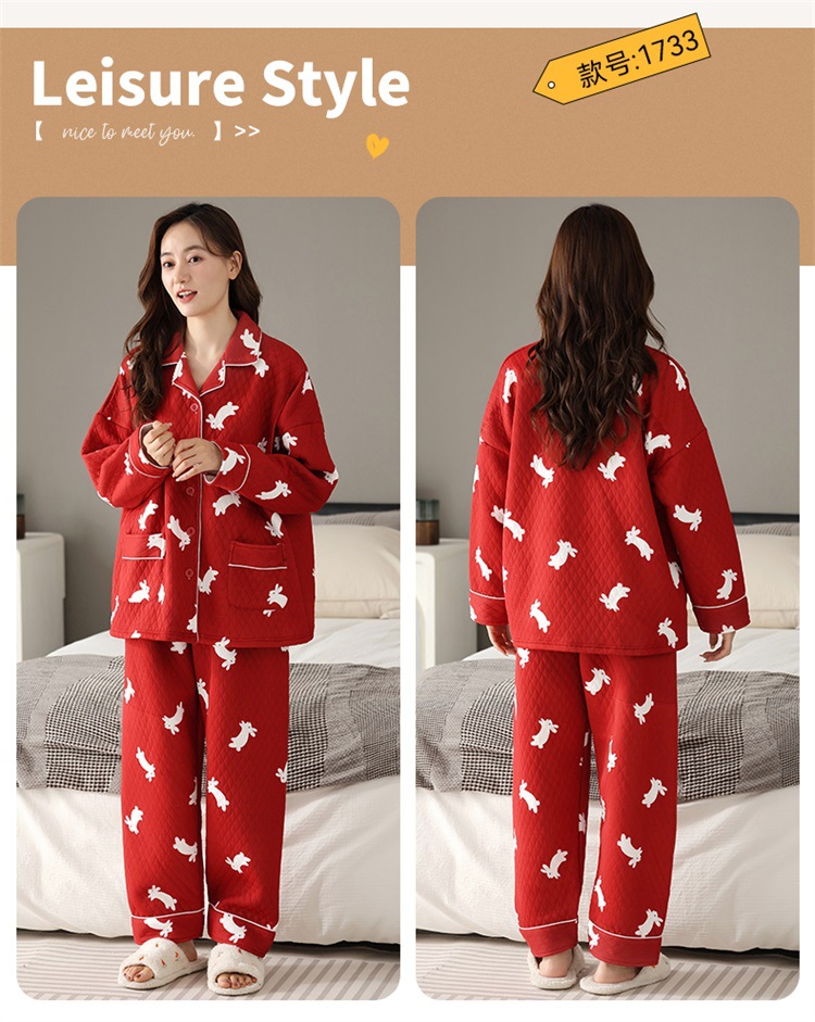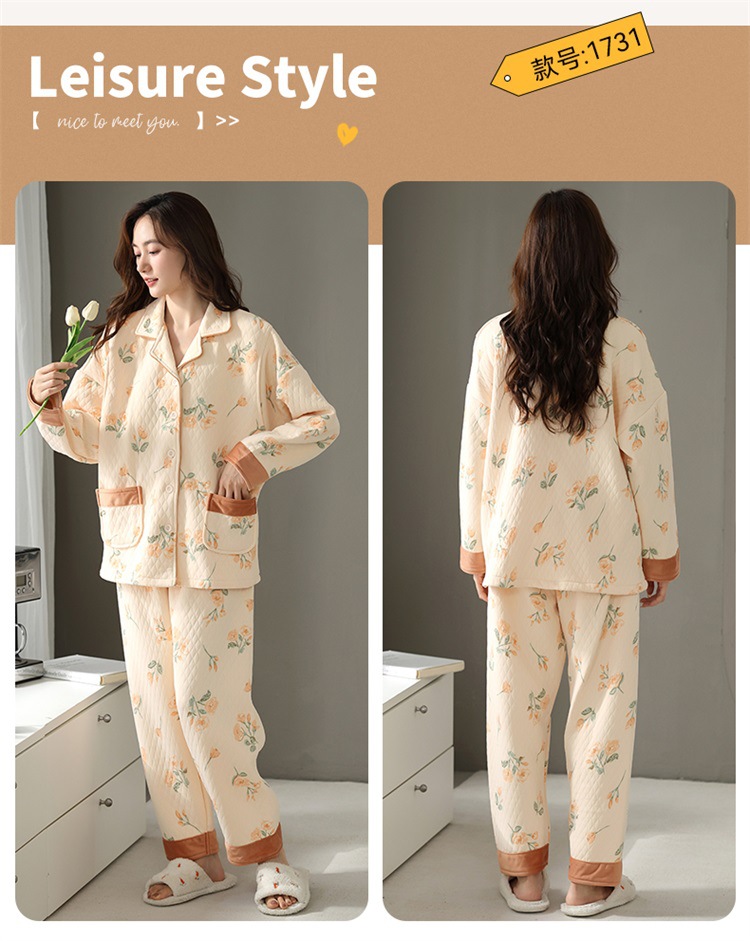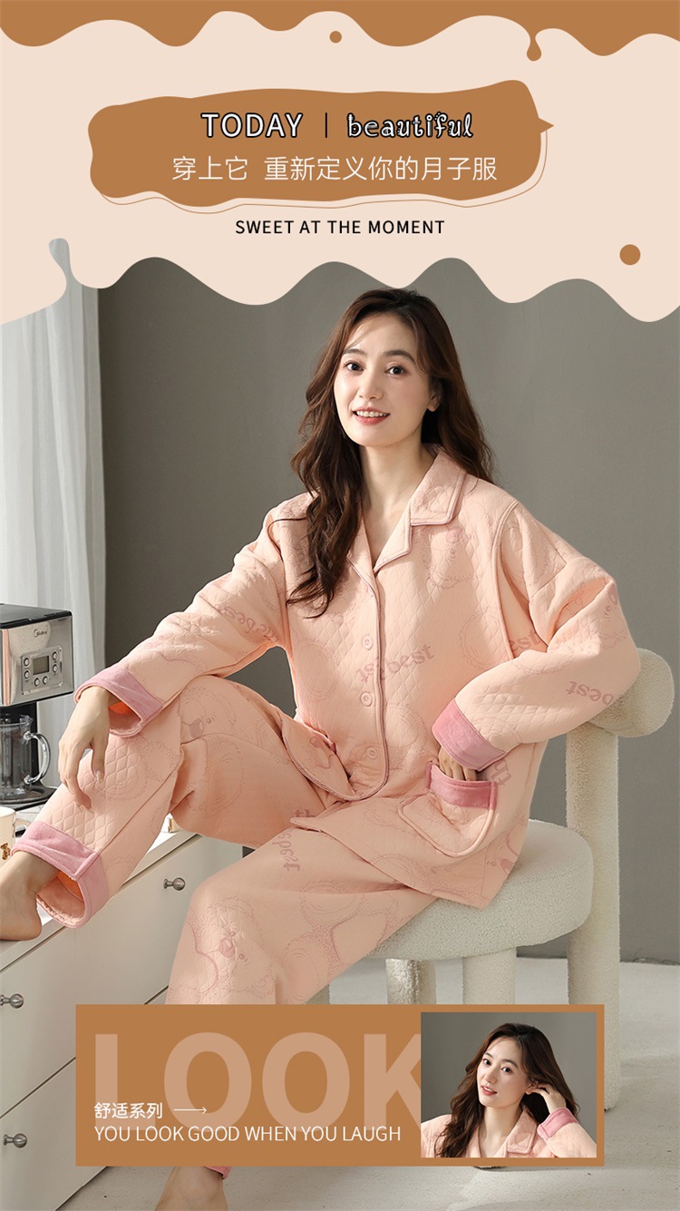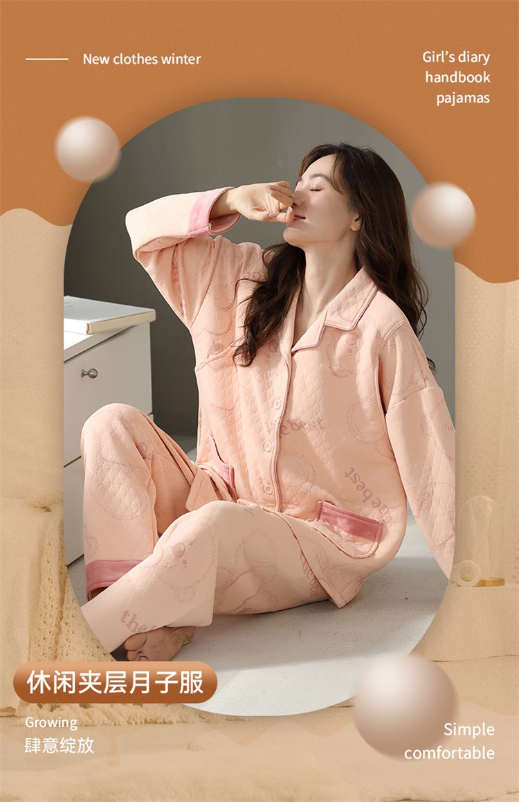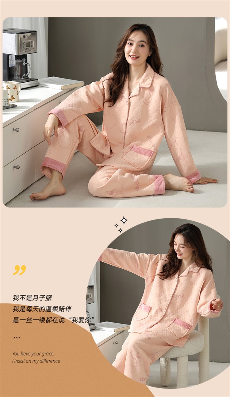 秋冬新款【纯棉夹层产后月子服】孕妇空气棉睡衣 婴儿哺乳家居服