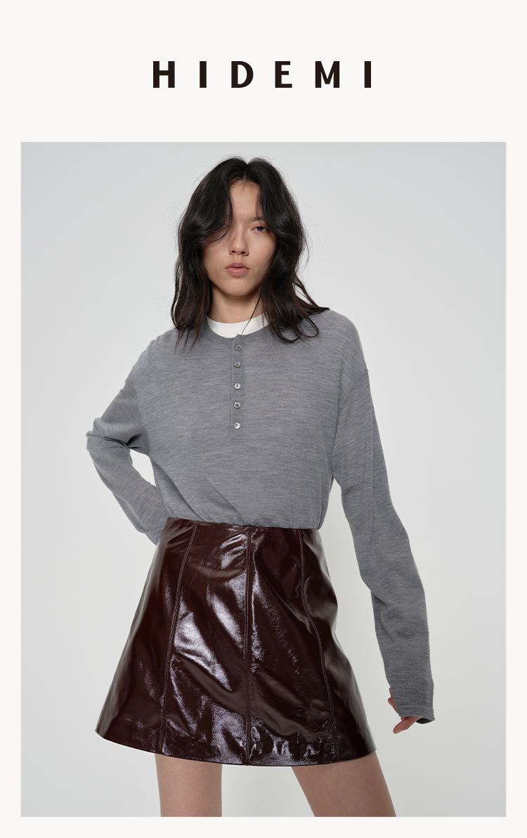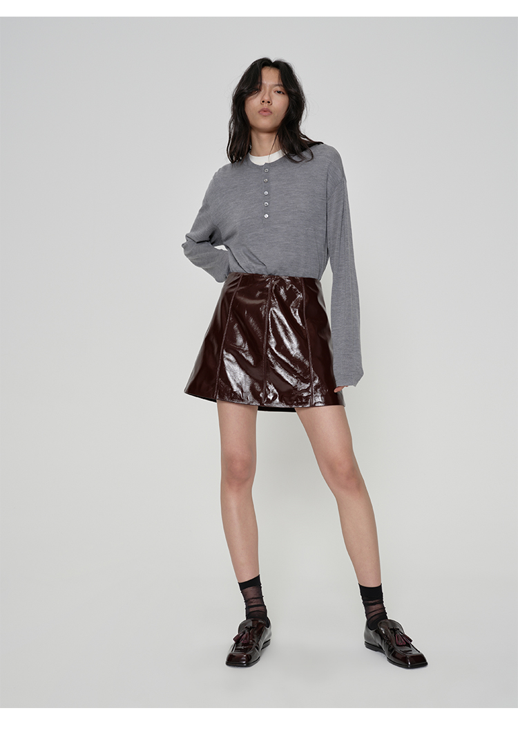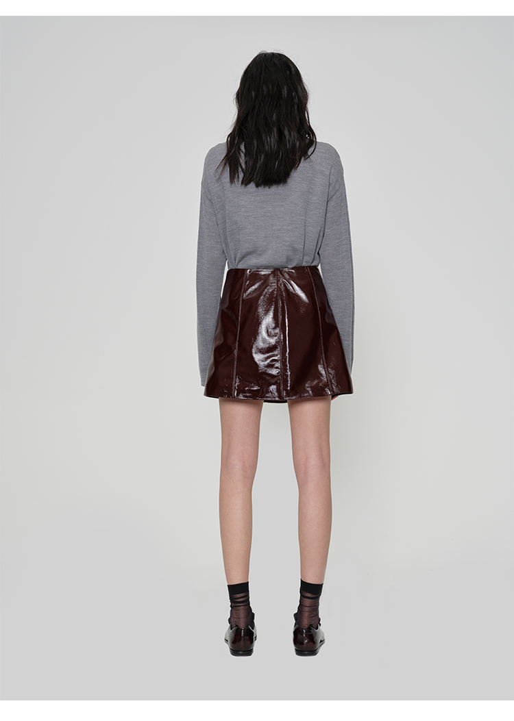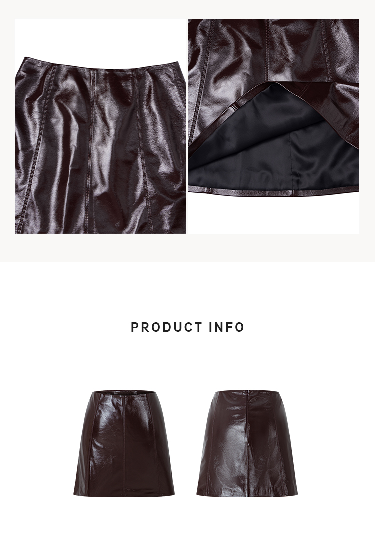 HIDEMI 进口激光涂层裂纹感羊皮极简显瘦a字短裙半裙皮裙
