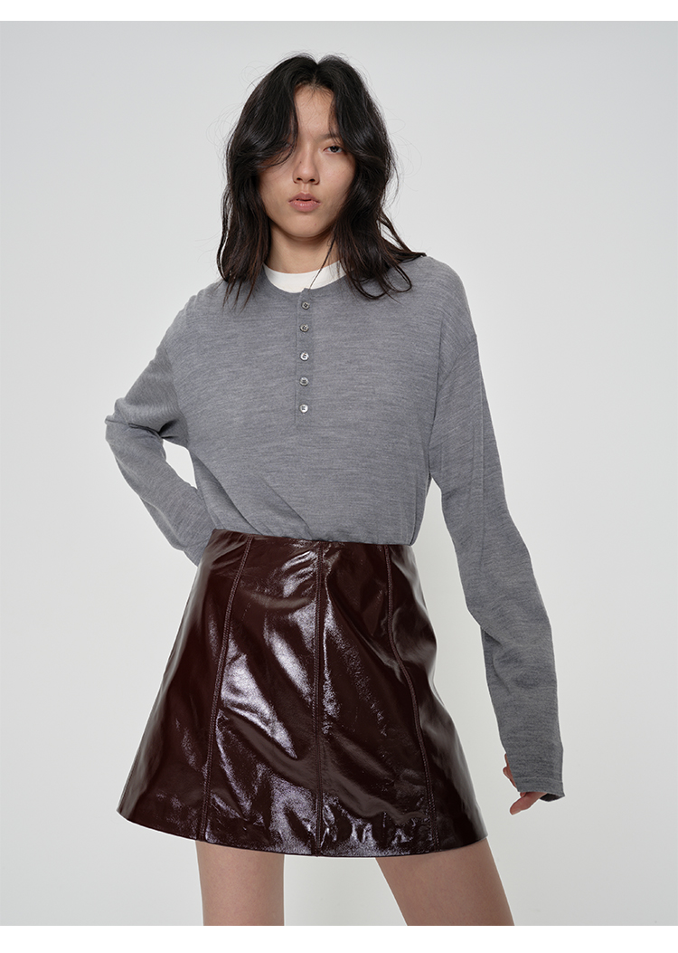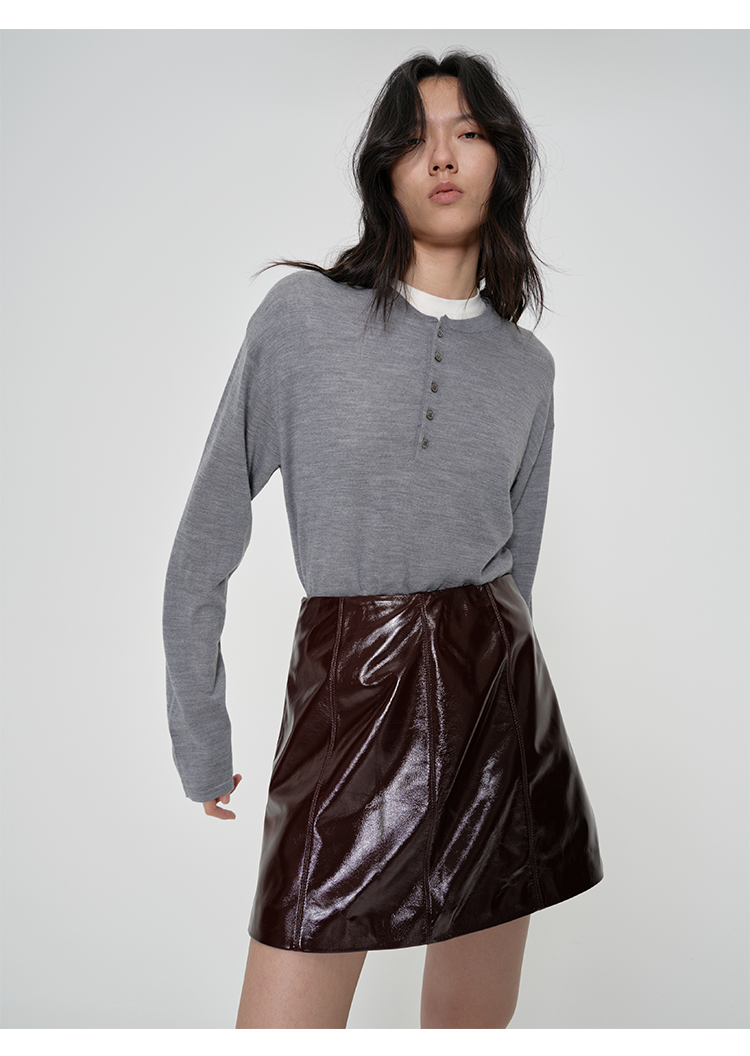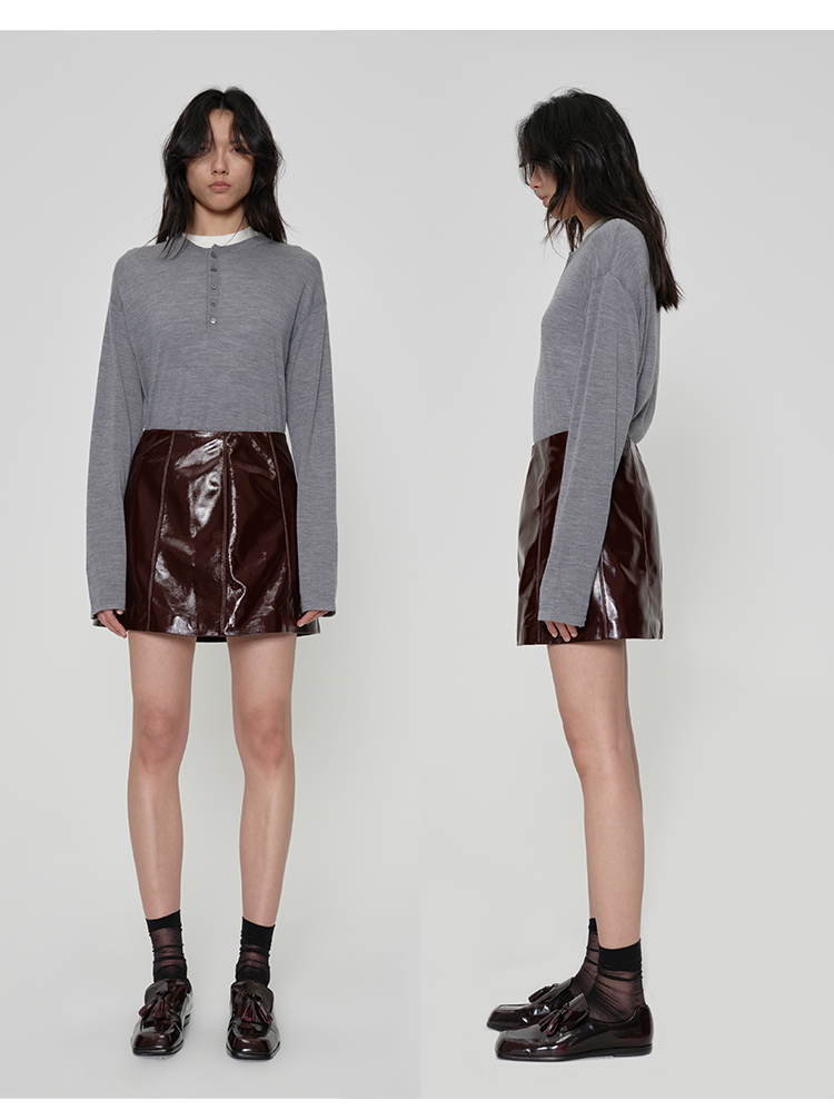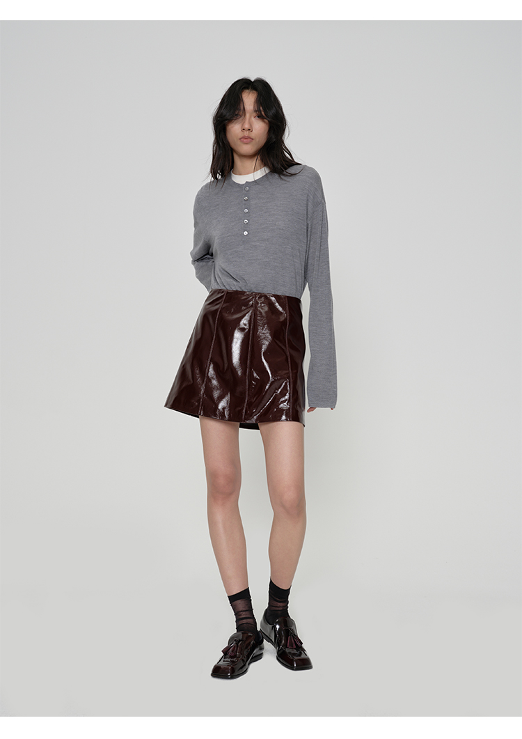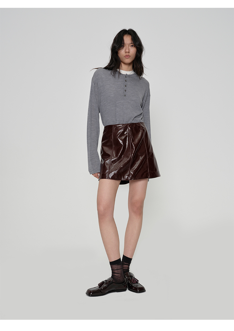 HIDEMI 进口激光涂层裂纹感羊皮极简显瘦a字短裙半裙皮裙
