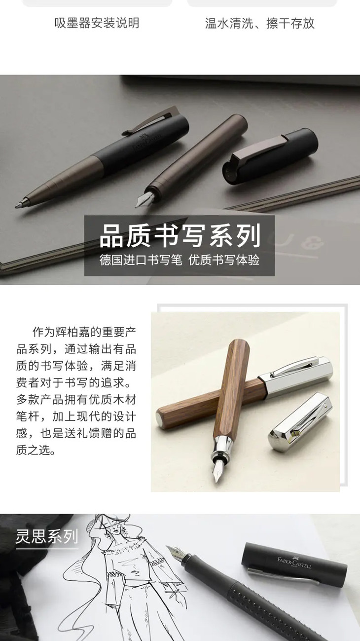 - 德国辉柏嘉,始创于1761年的家族品牌,历经259年岁月洗礼的制笔权威,一直致力于提供高品质书写及绘画艺术创作工具的专业制造商。