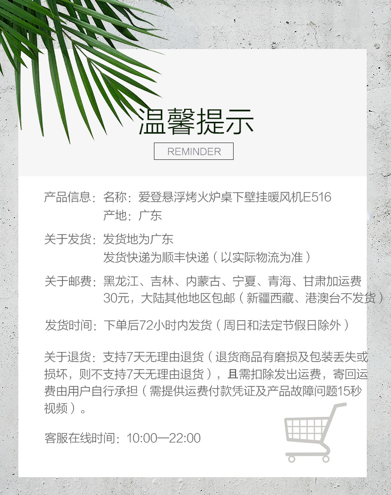 【售后政策】支持7天无理由退货(退货商品有磨损及包装丢失或损坏,则不支持7天无理由退货),7天无理由退货需扣除发出运费,寄回运费由用户自行承担(需提供运费付款凭证及产品故障问题15秒视频)。