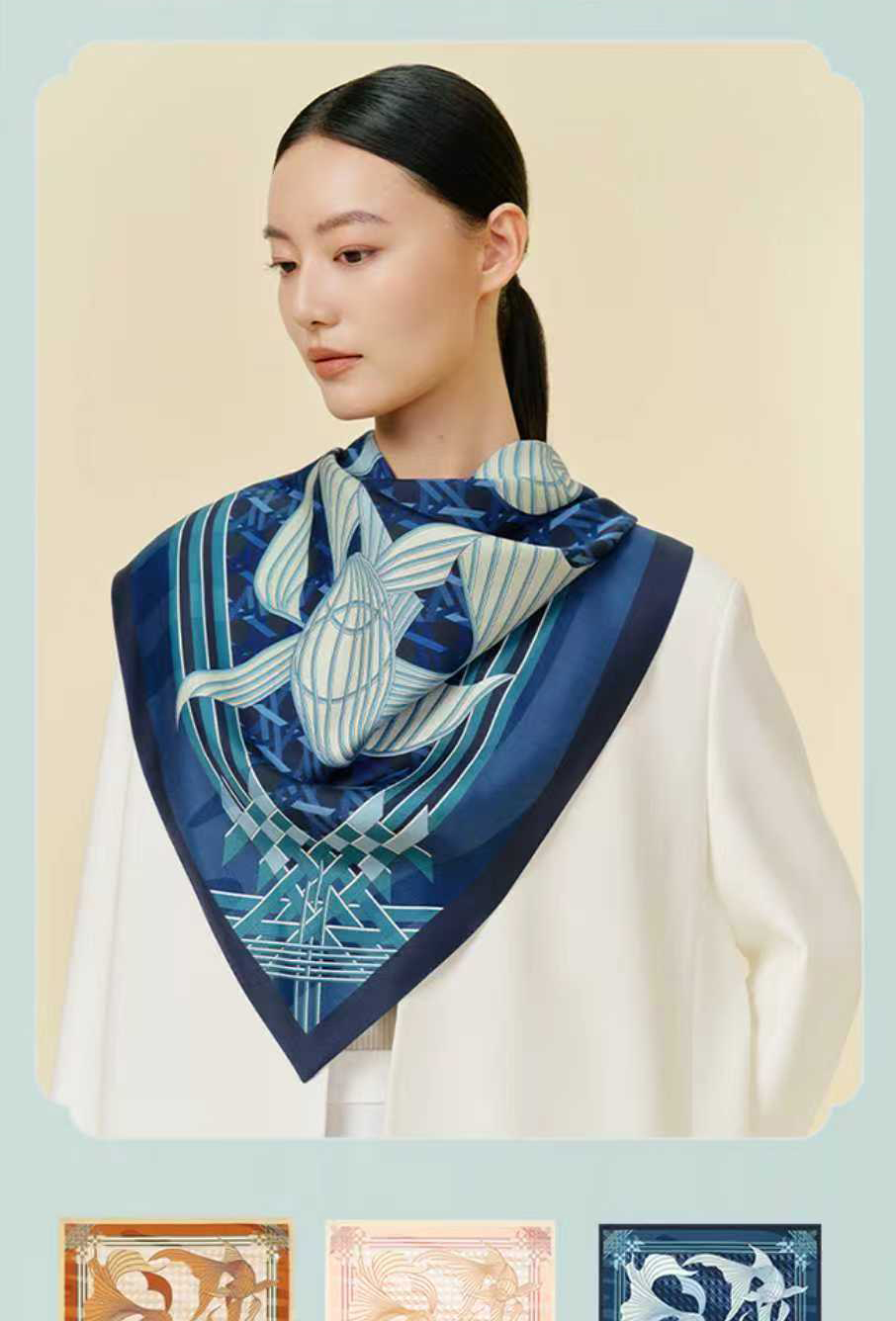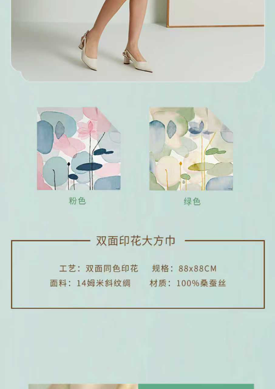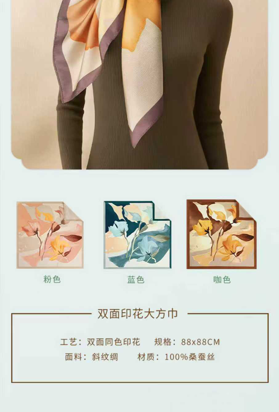万事利“繁花笺”88厘米双面印花真丝大方巾