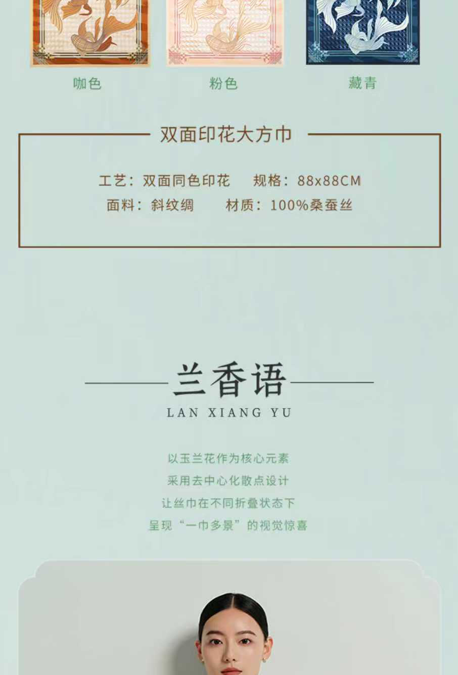 万事利“玉兰赋”63厘米双面印花真丝中方巾
