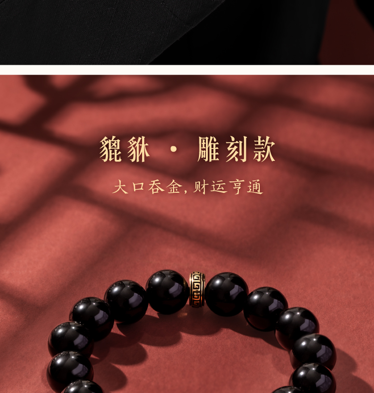 【故宫饰品】貔貅小叶紫檀黑曜石手串文创本命年生日礼物