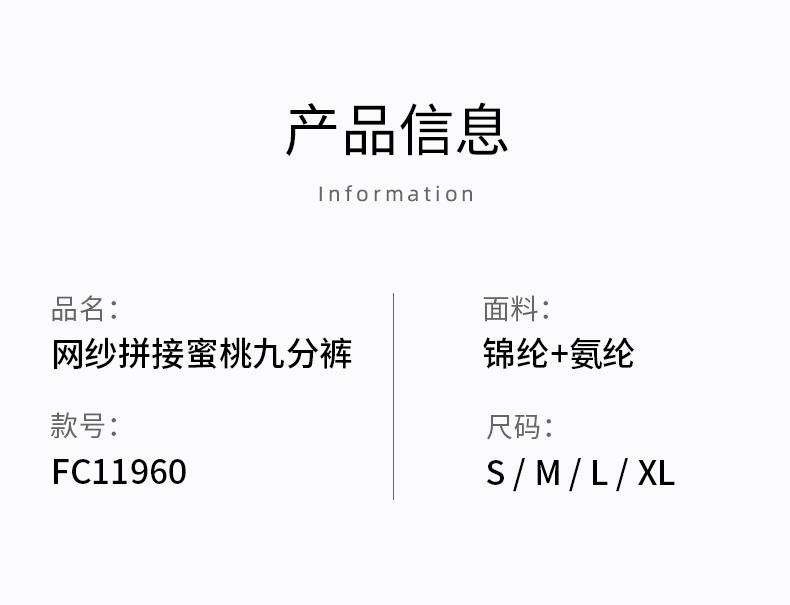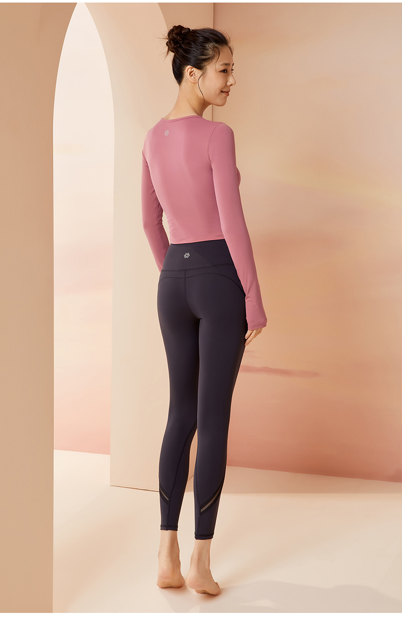 凡圣瑜伽网纱拼接蜜桃健身裤外穿收腹提臀高腰运动紧身裤FC11960